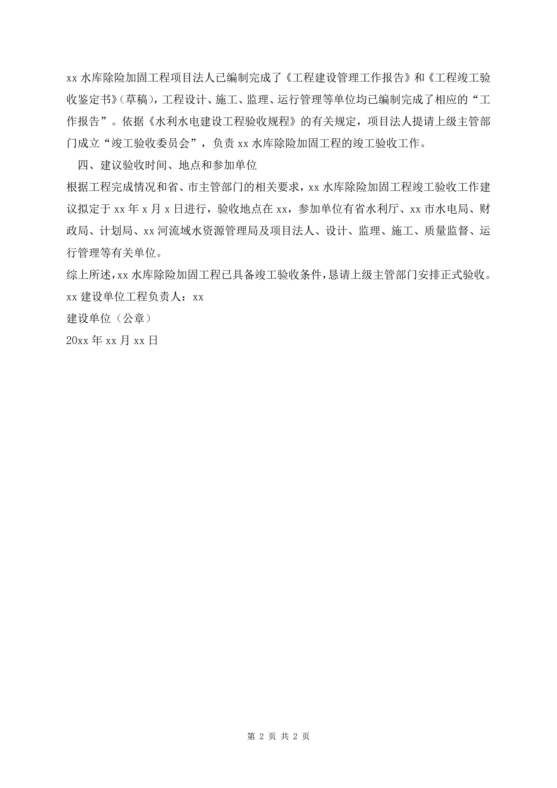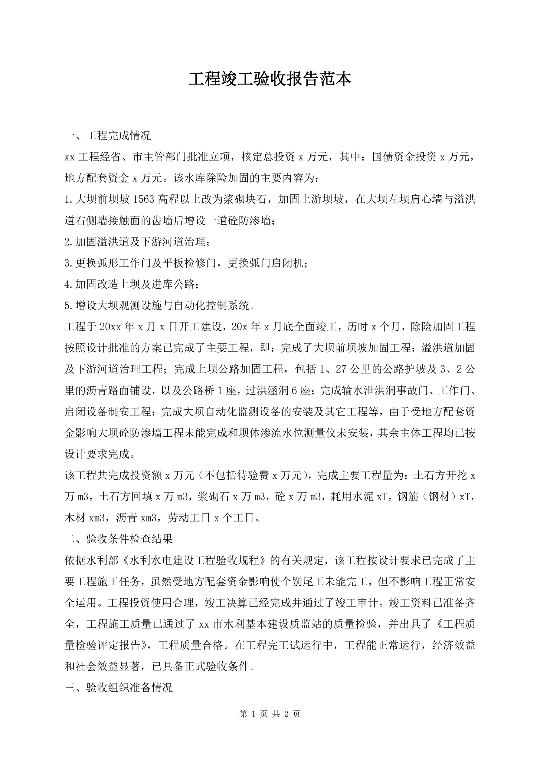 工程竣工验收报告范本