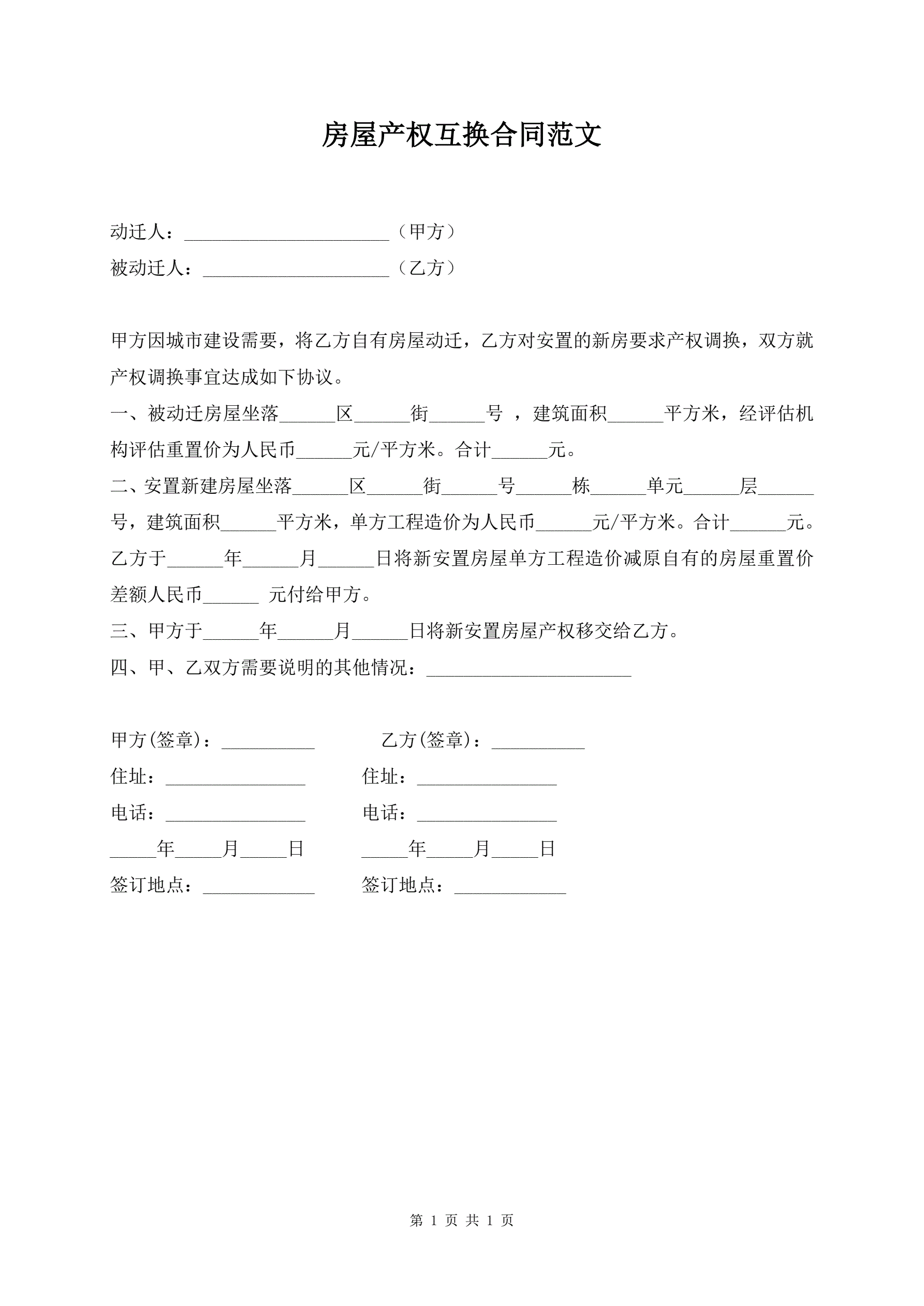 >房屋产权互换合同范文