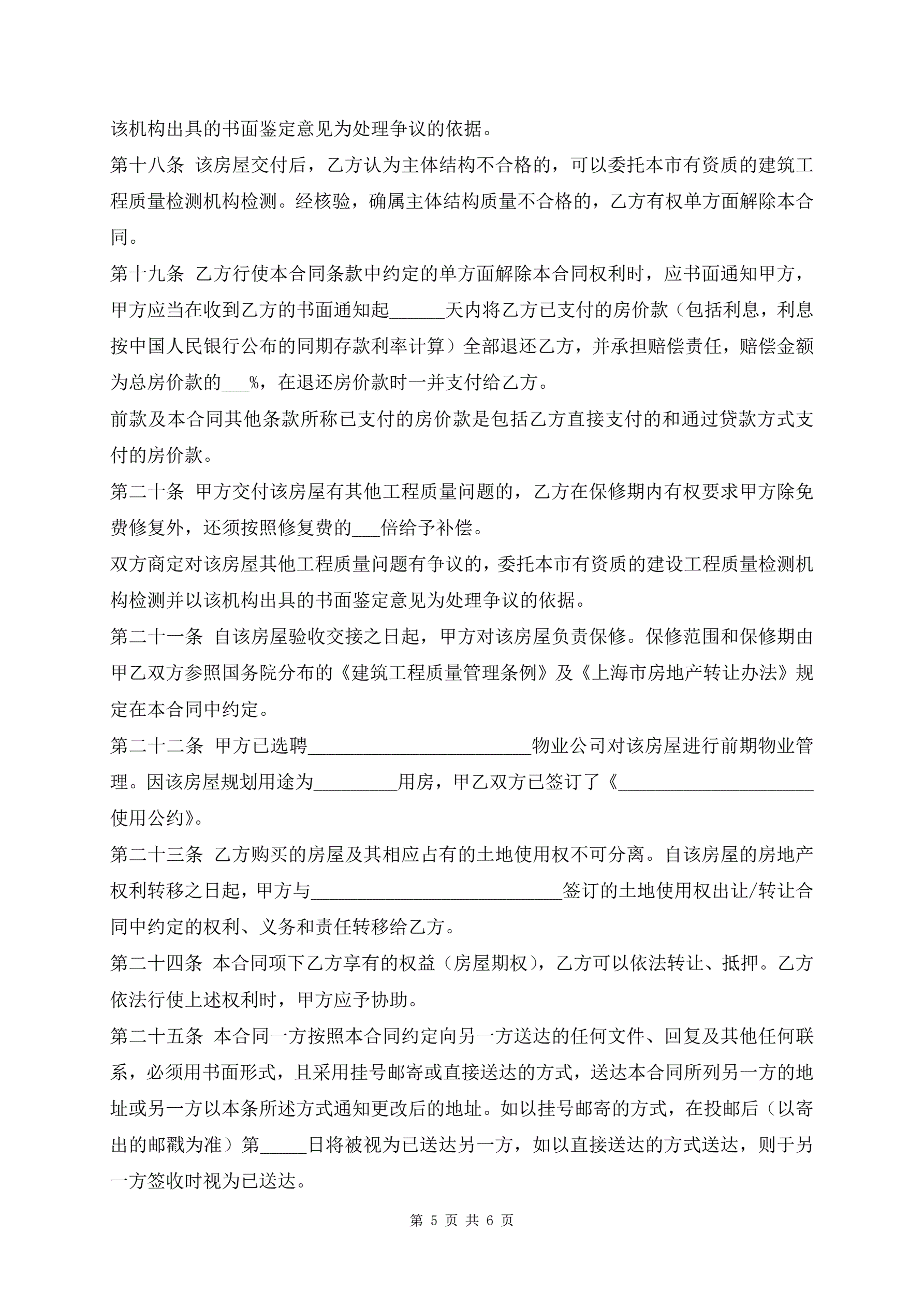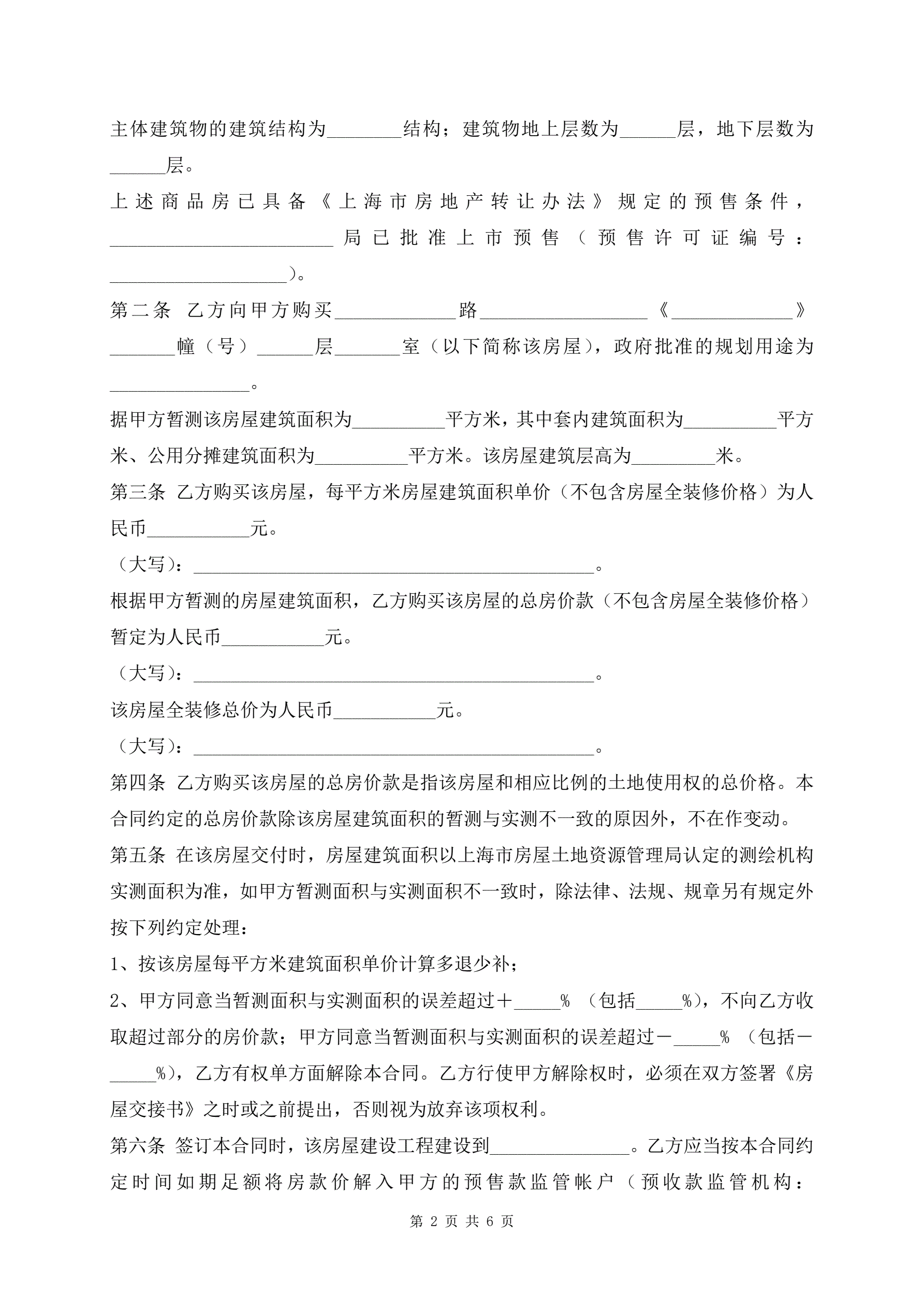 上海市商品房预售合同新版模板