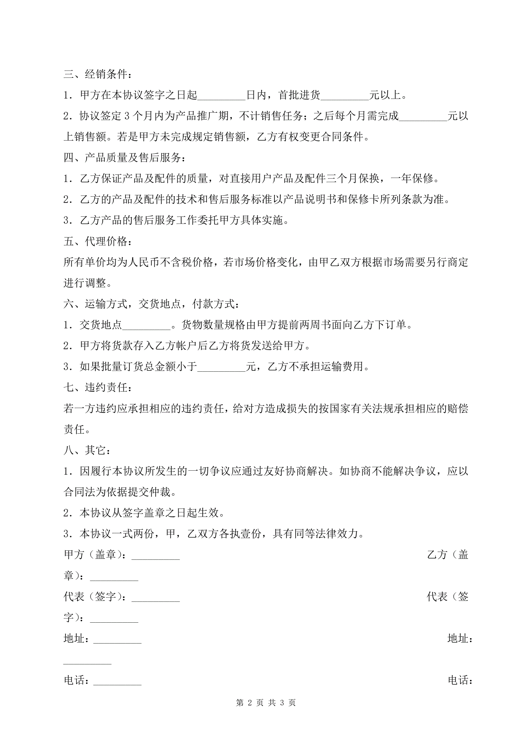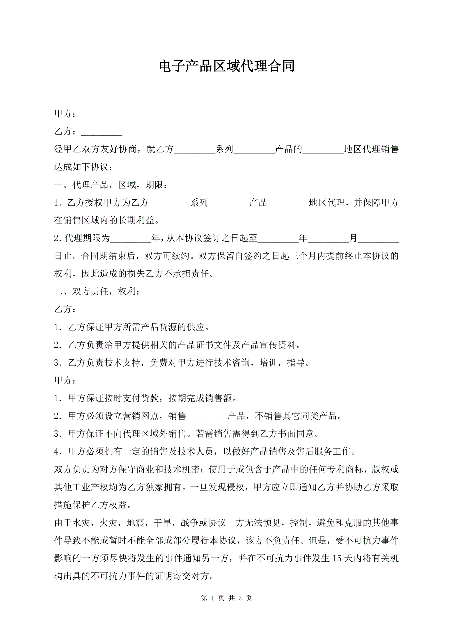 电子产品区域代理合同