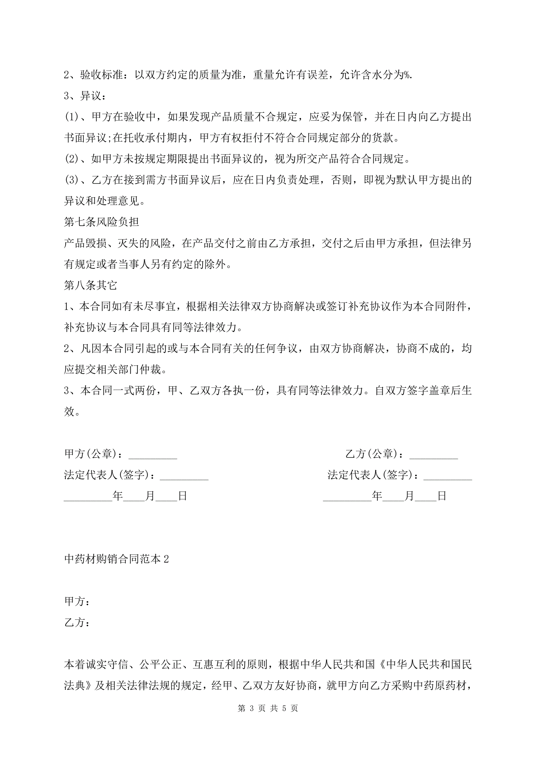 >中药材购销合同范本