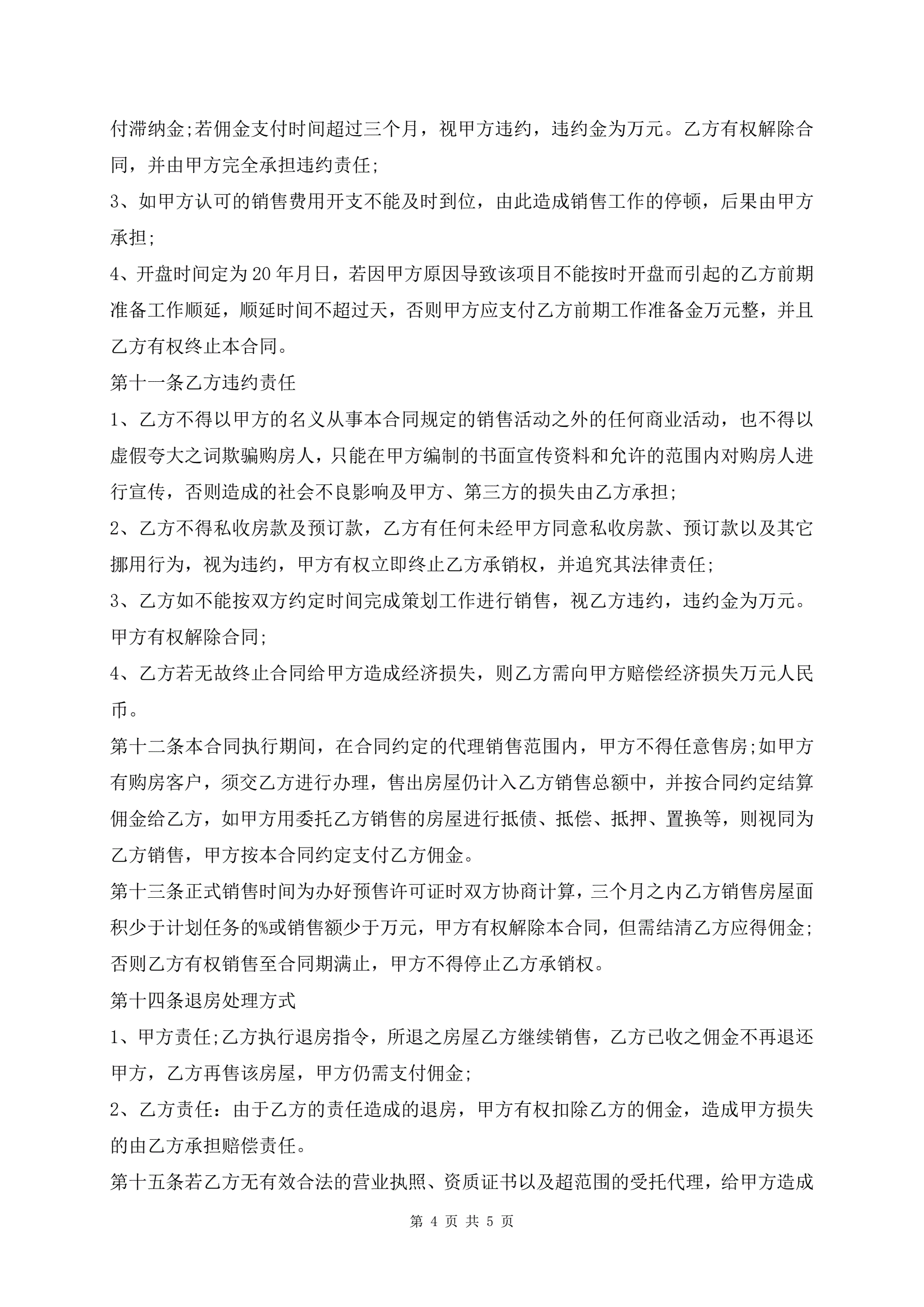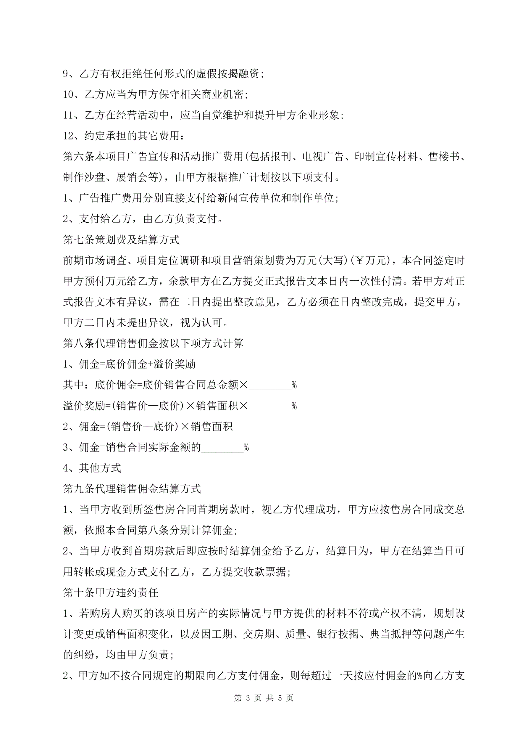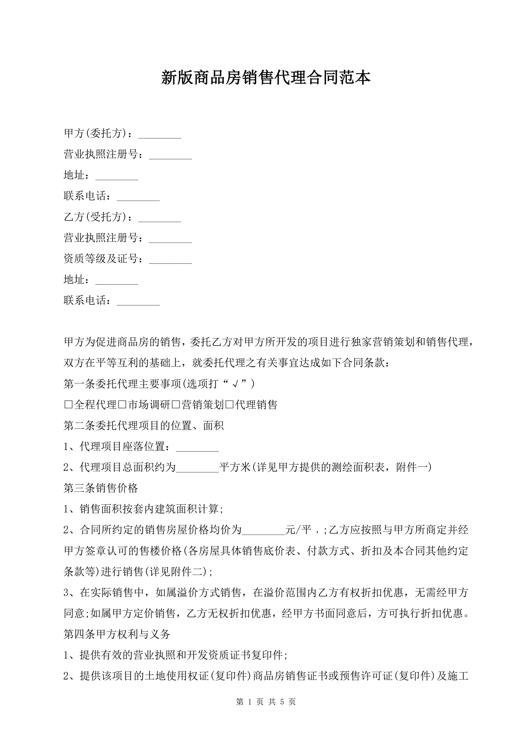 新版商品房销售代理合同范本