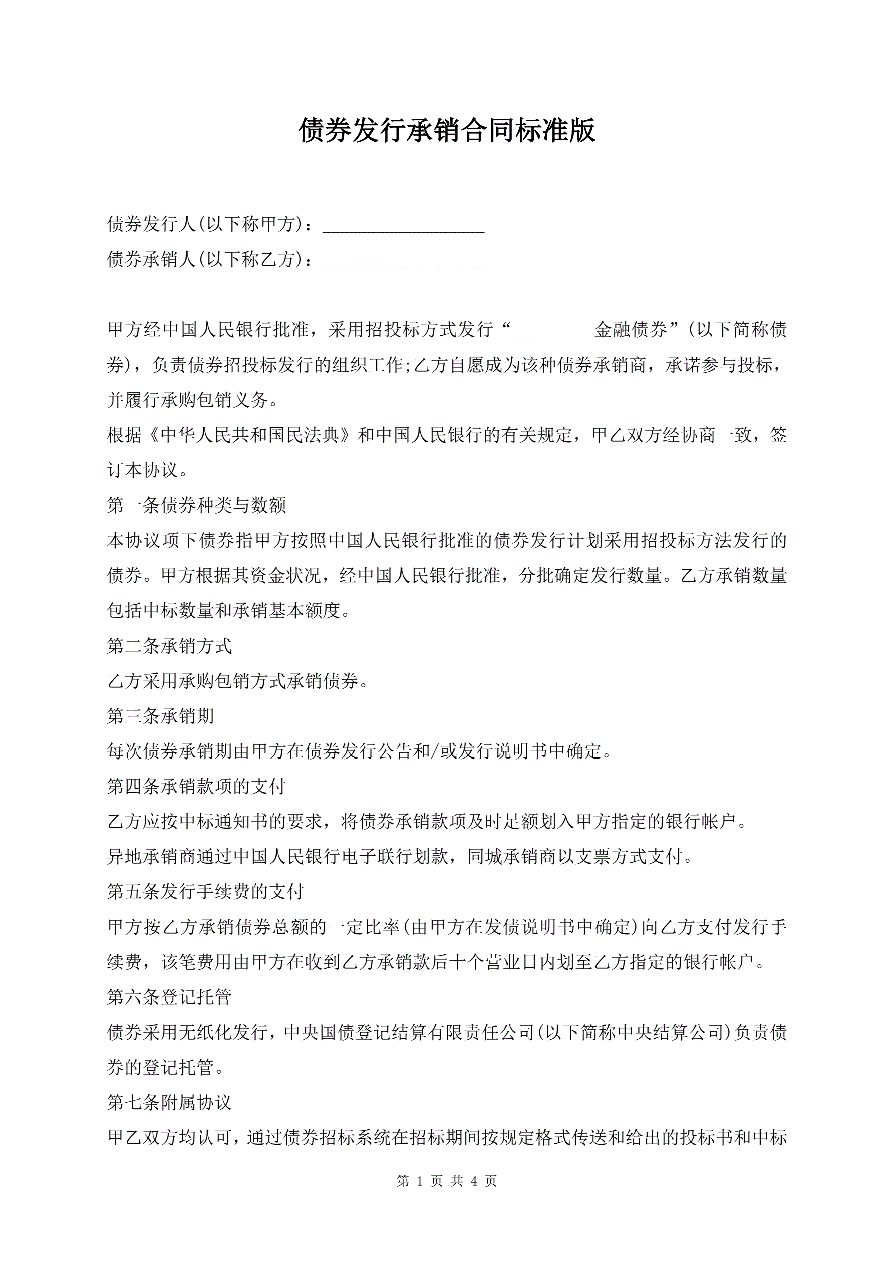 >债券发行承销合同标准版
