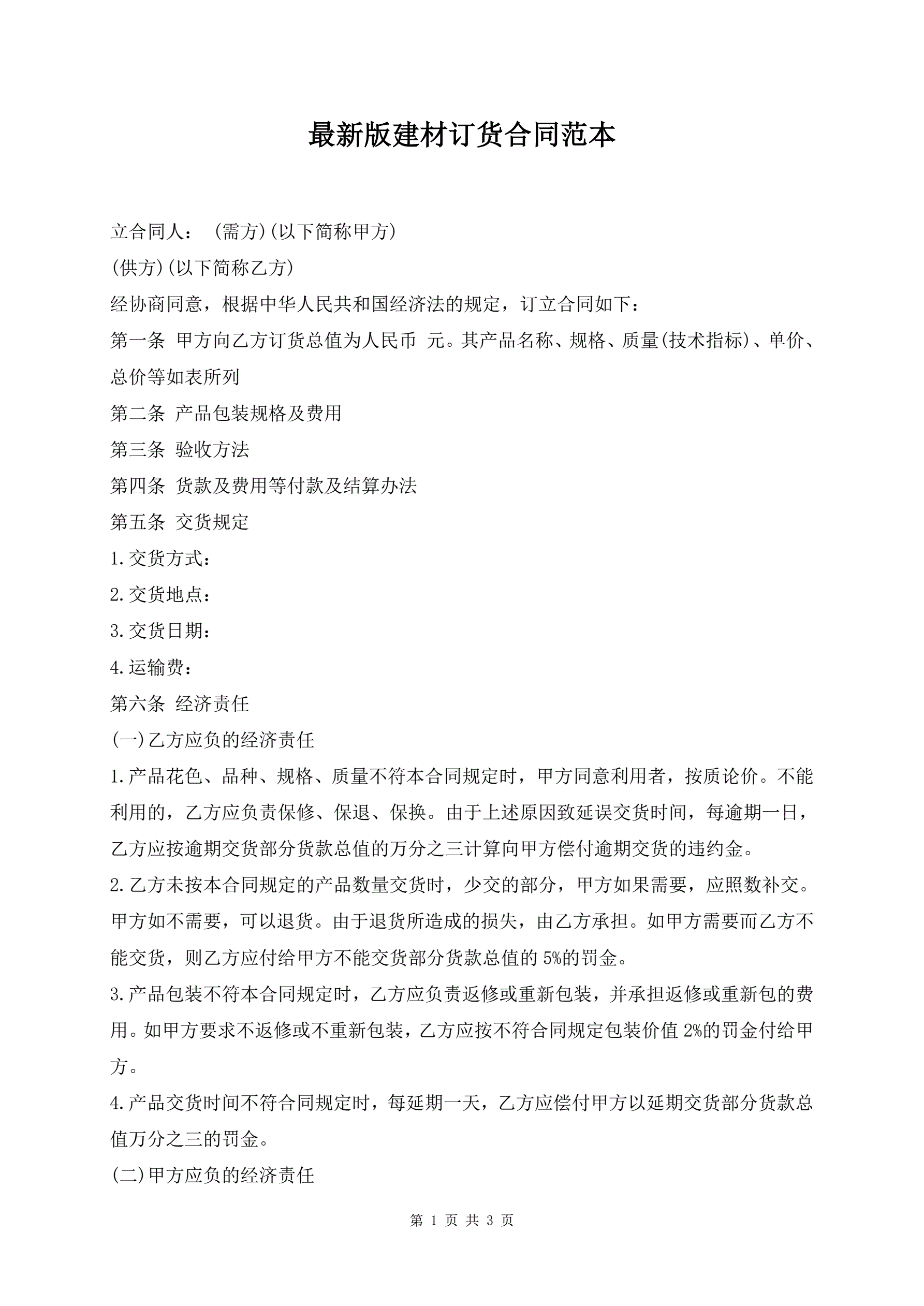 最新版建材订货合同范本
