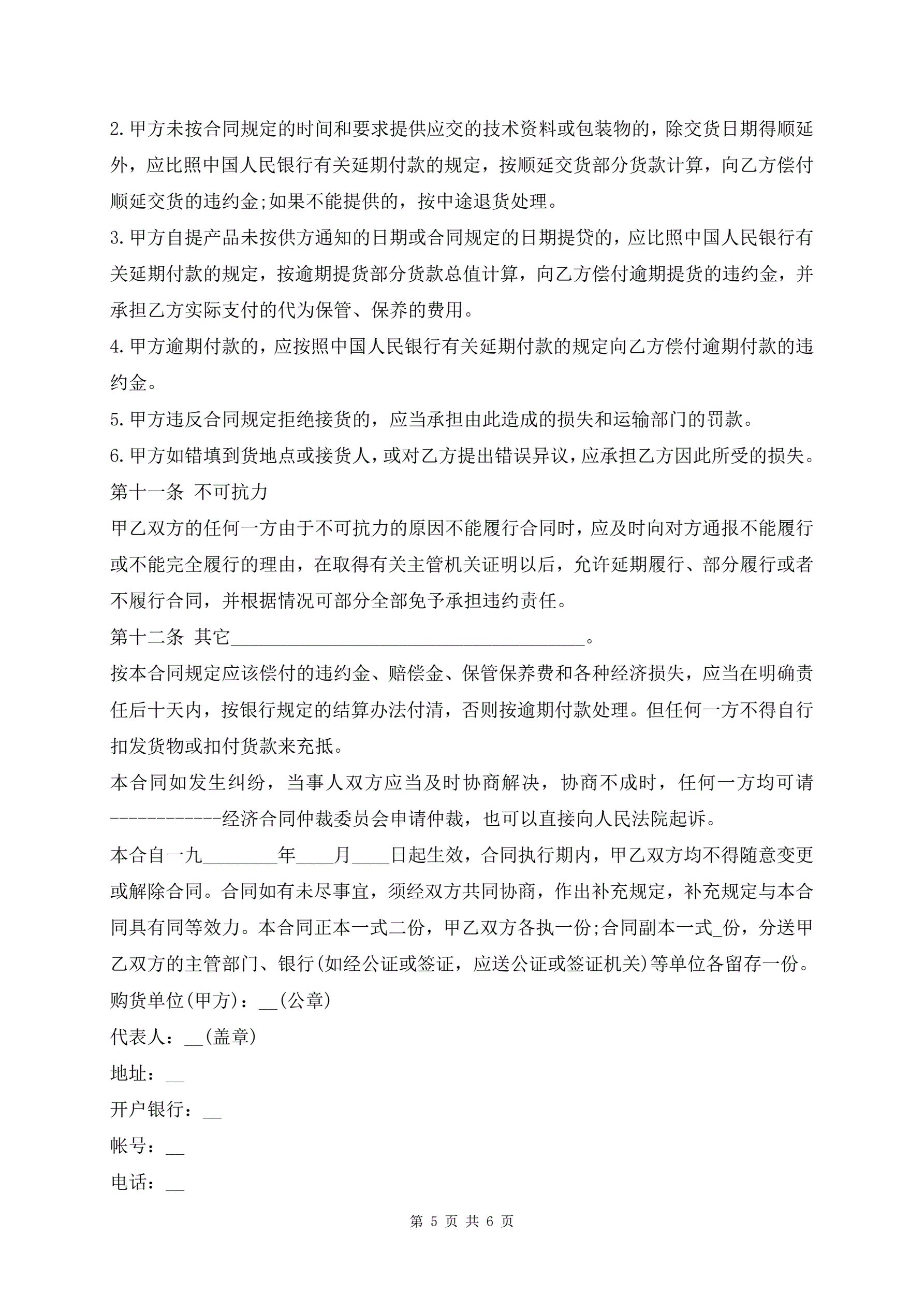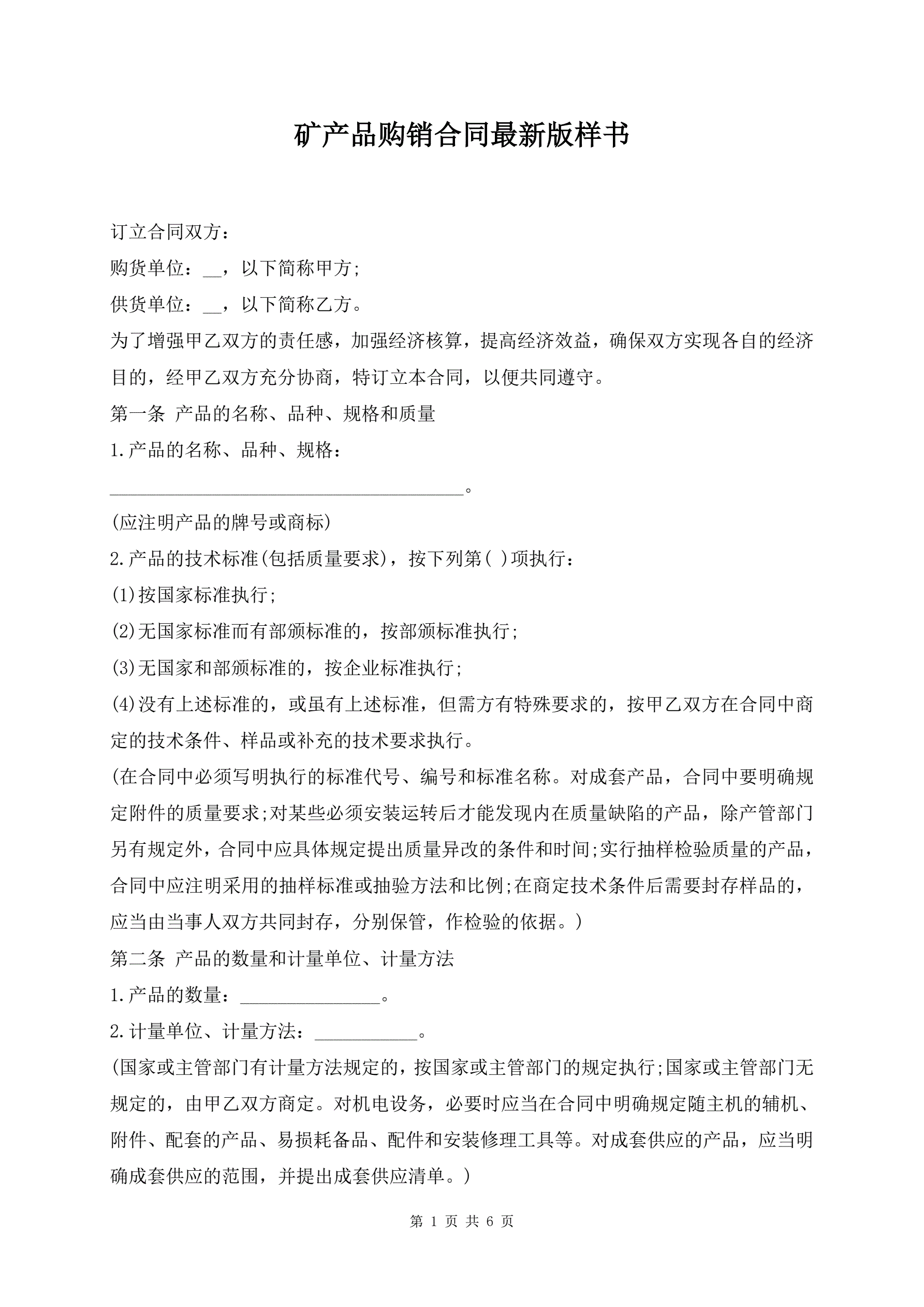 >矿产品购销合同最新版样书