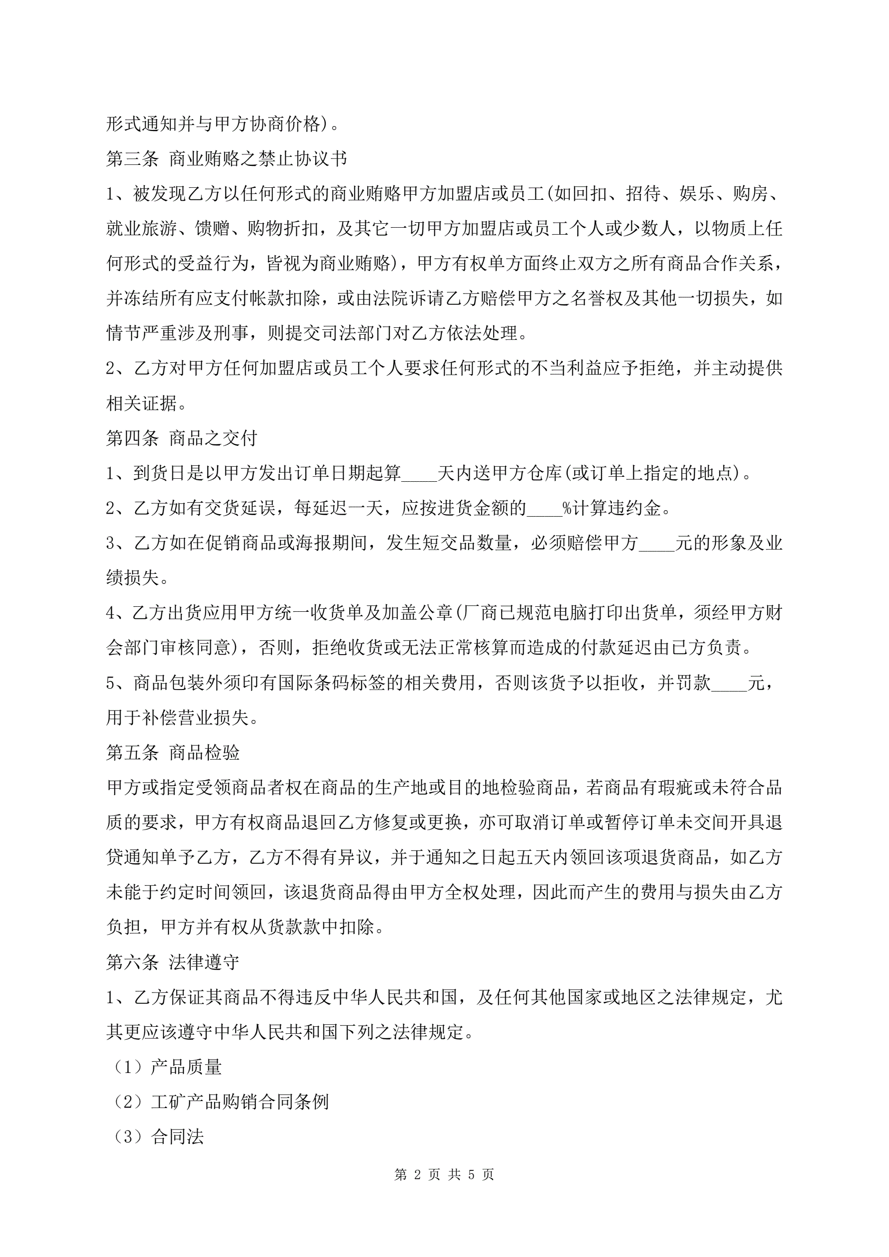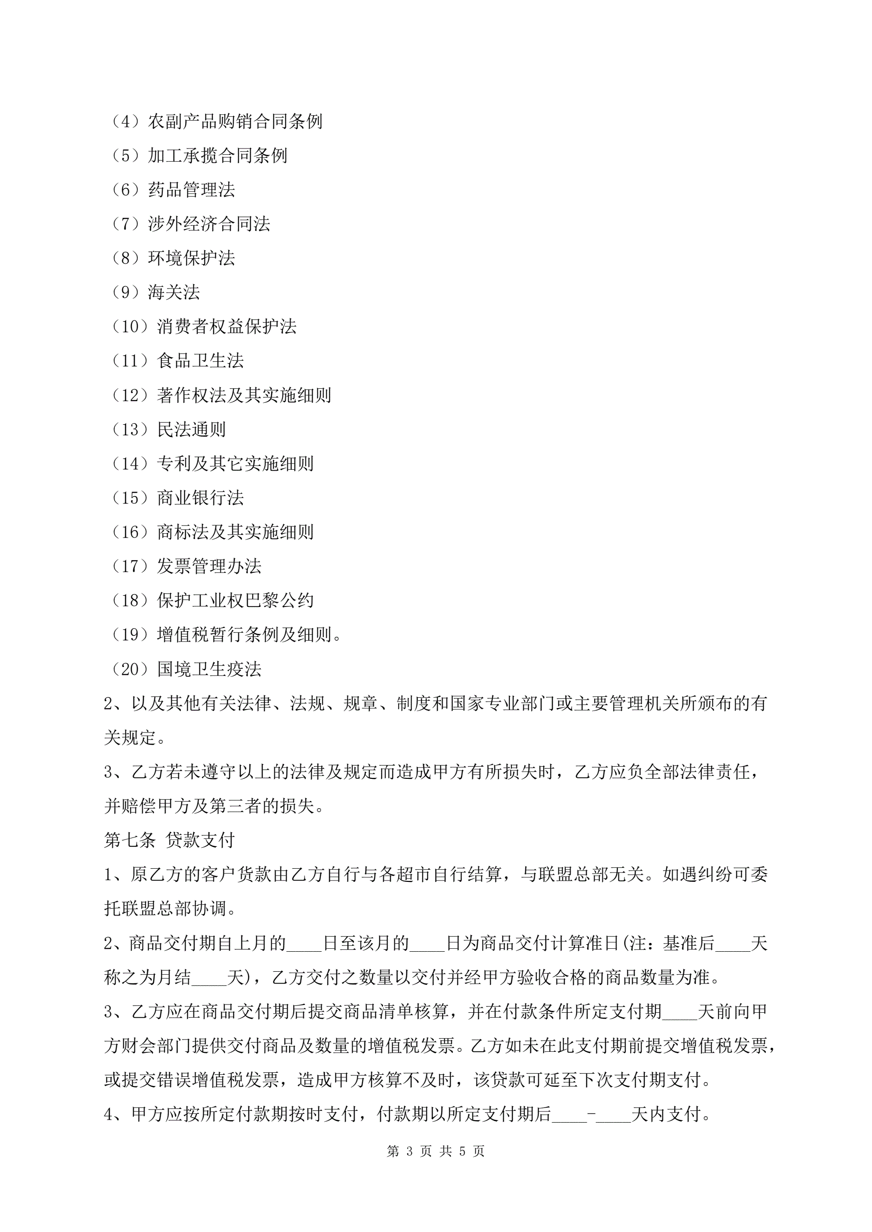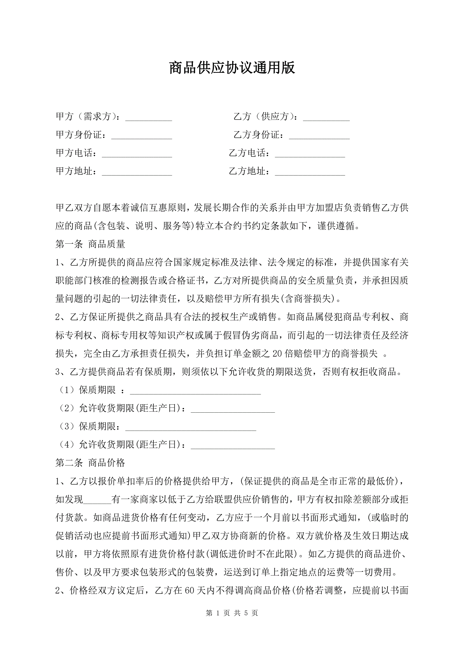 >商品供应协议通用版