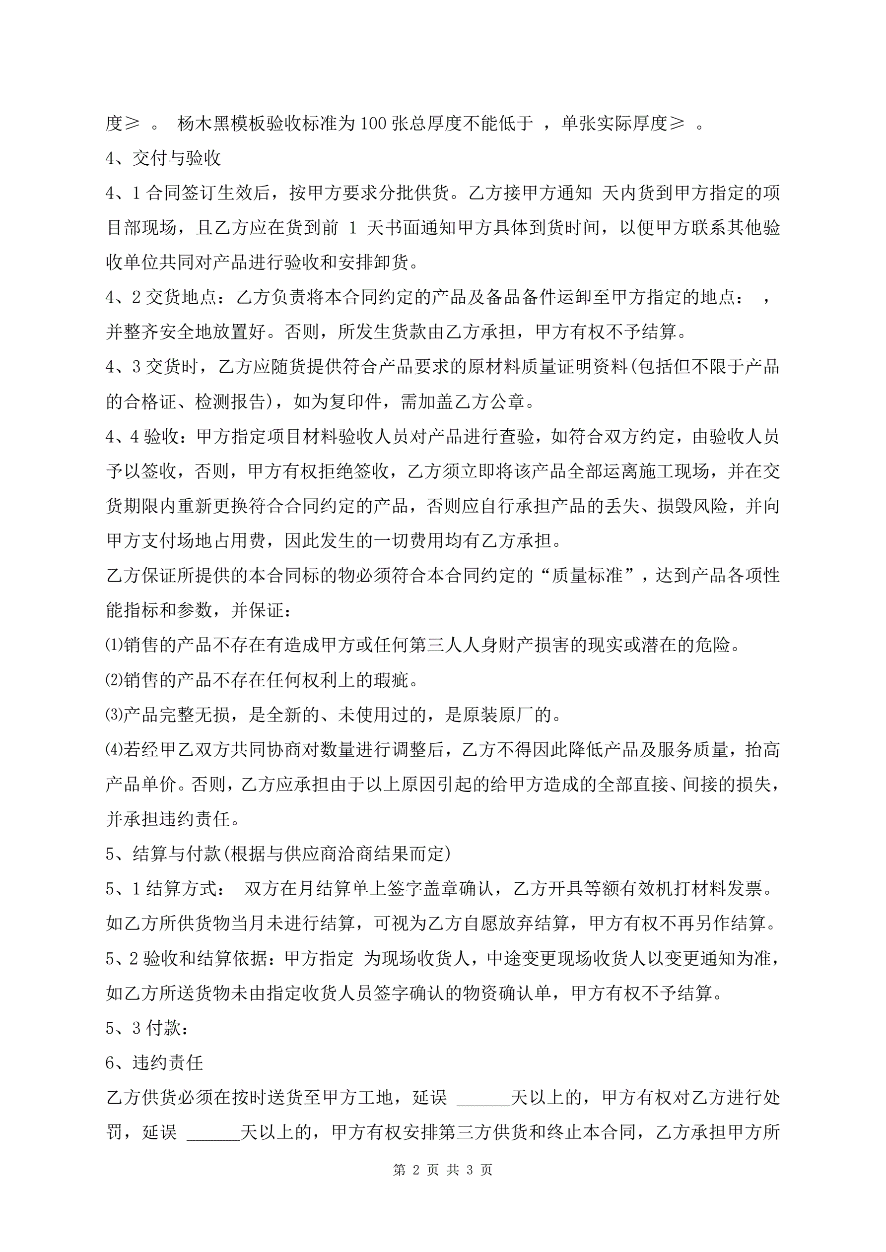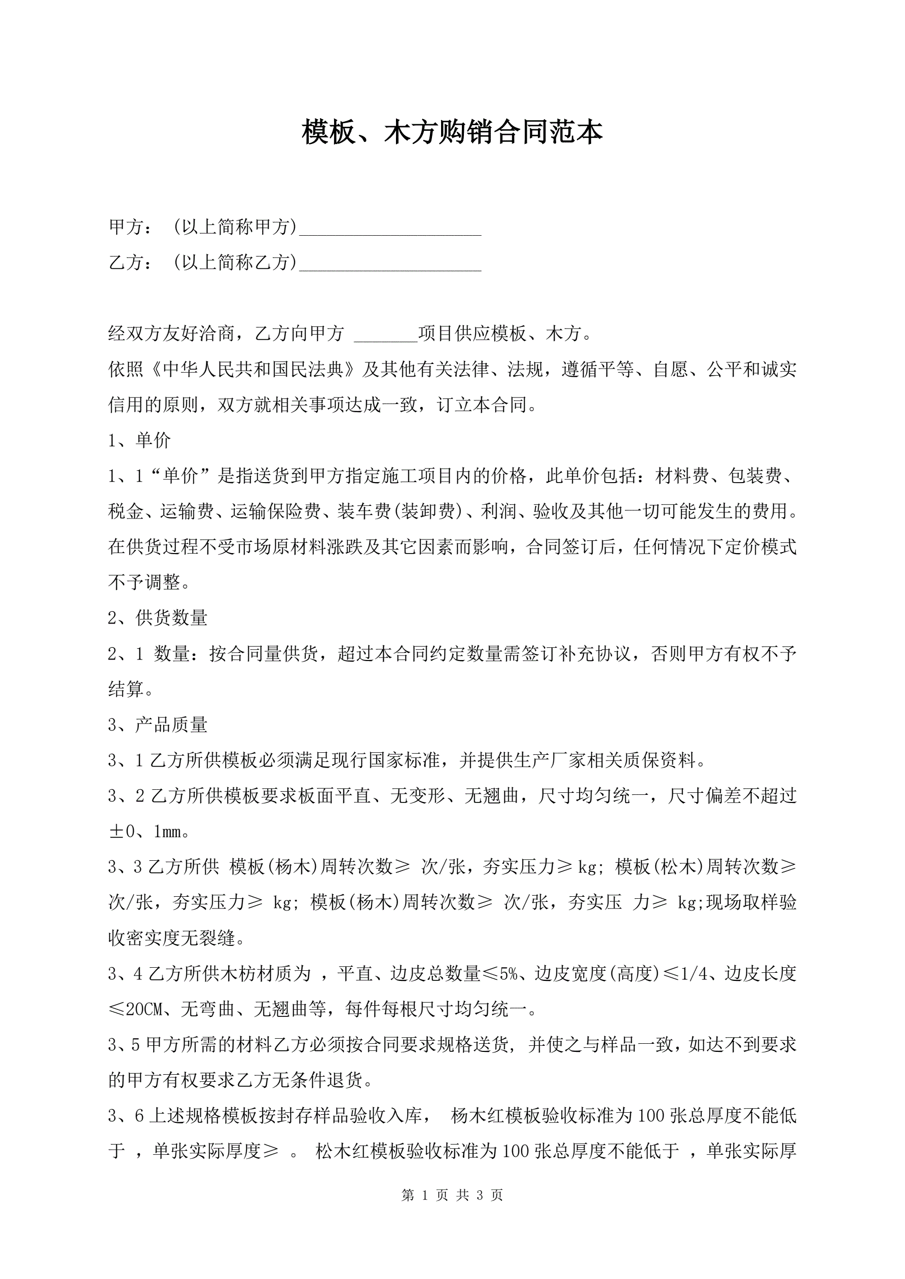模板、木方购销合同范本