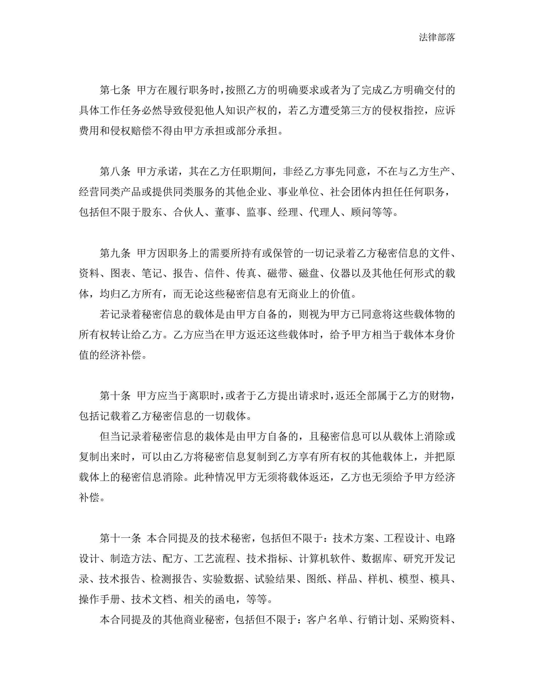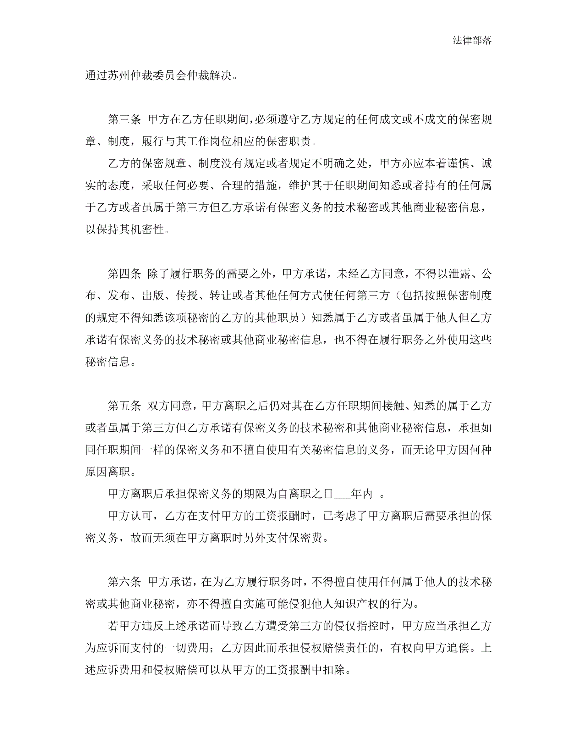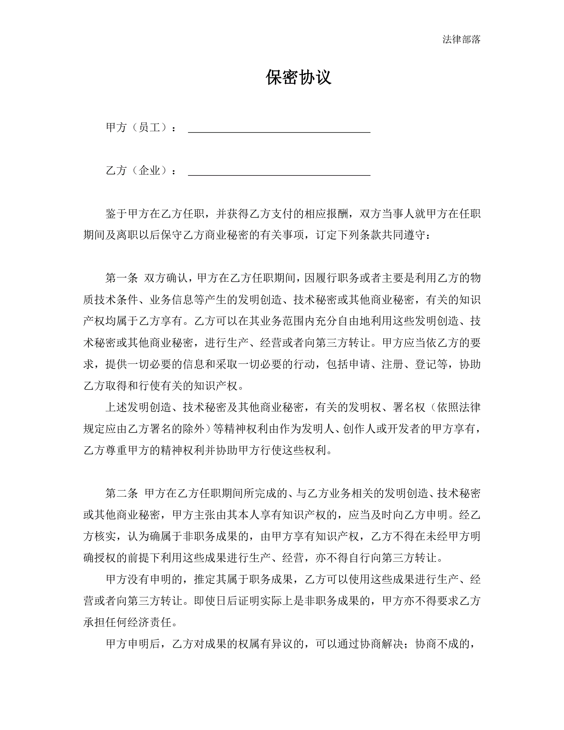 合同名称:保密协议