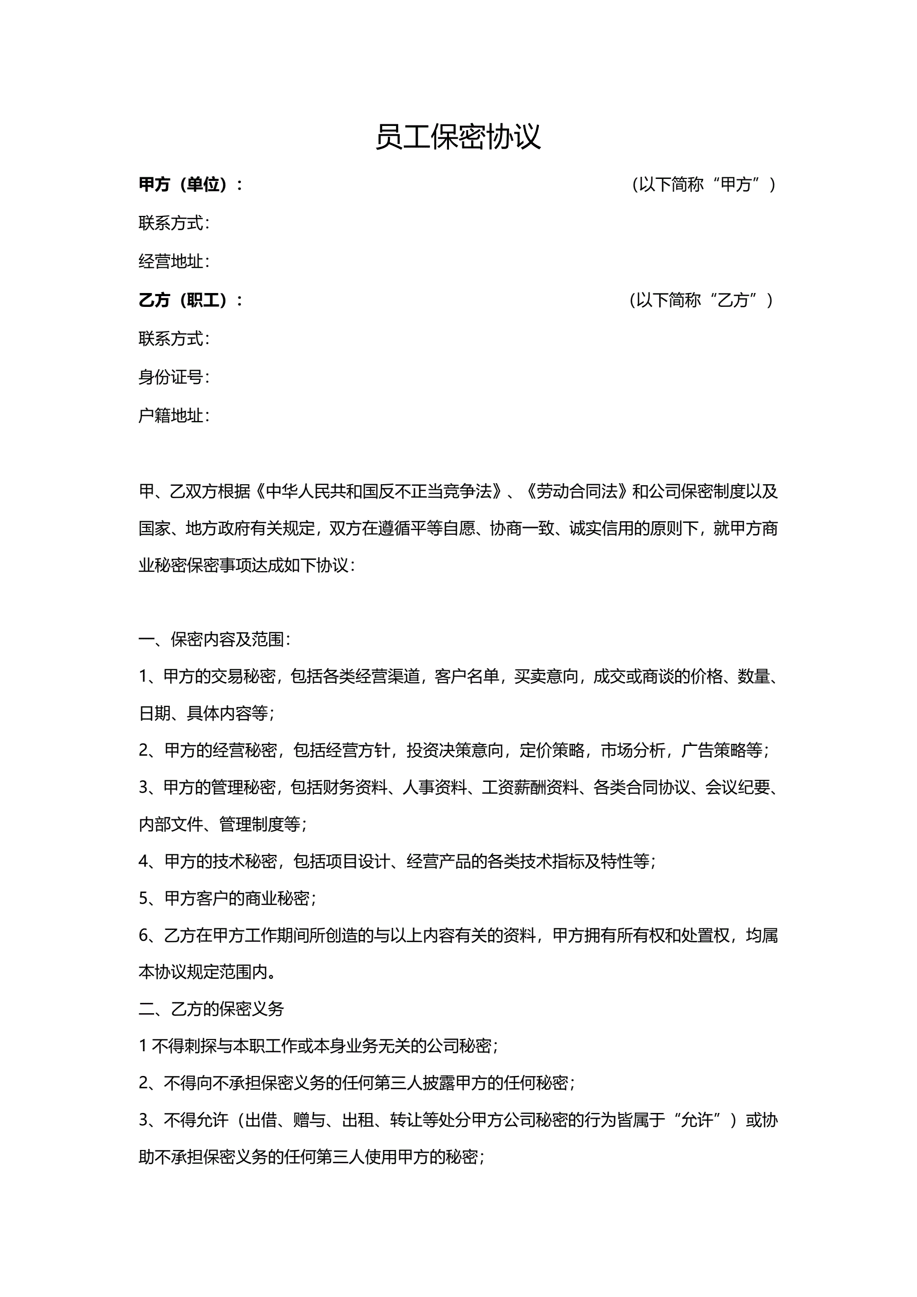 员工保密协议(指导版)