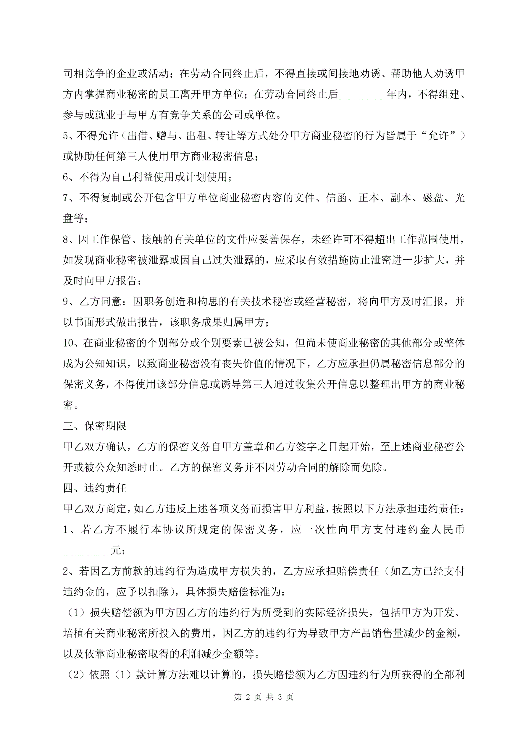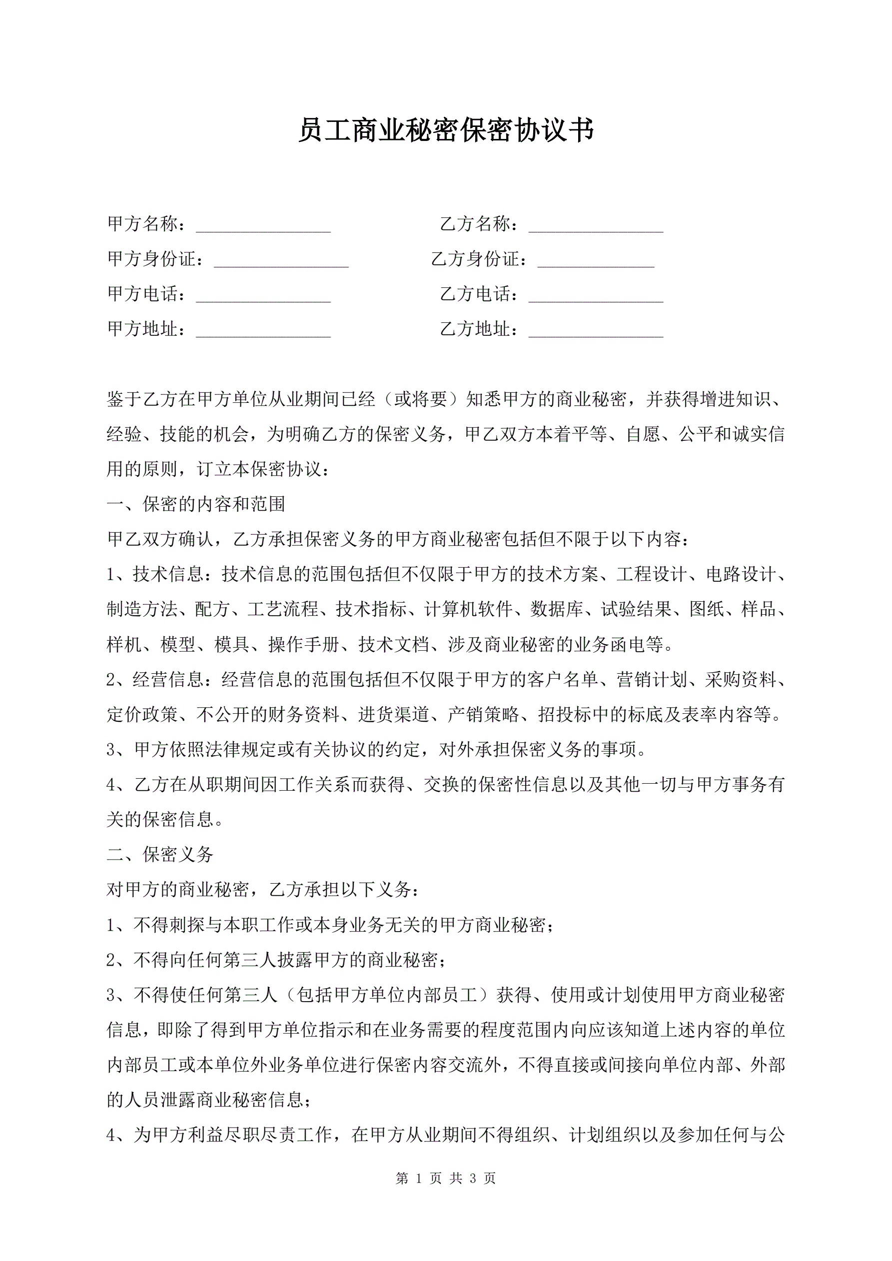 员工商业秘密保密协议书