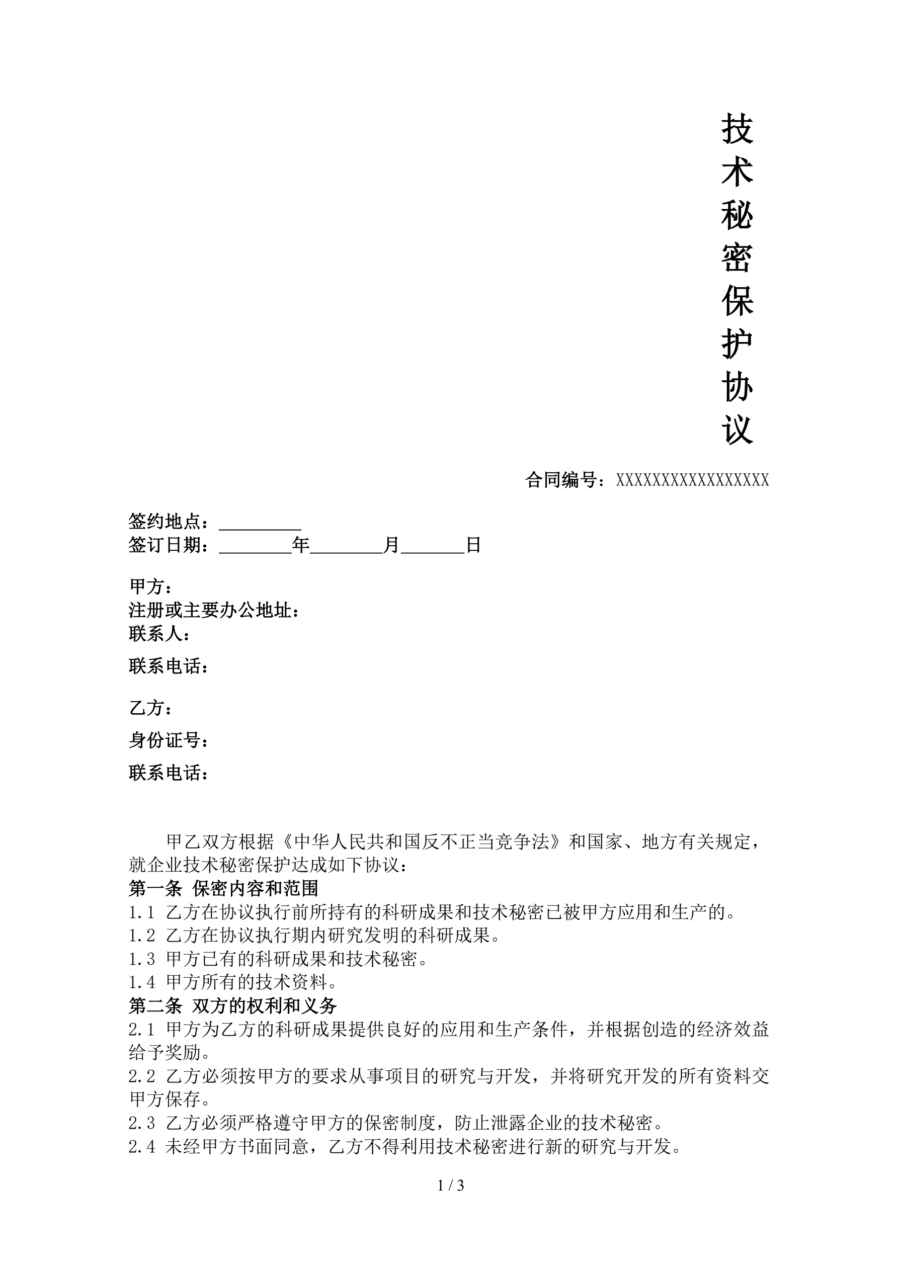 技术秘密保护协议