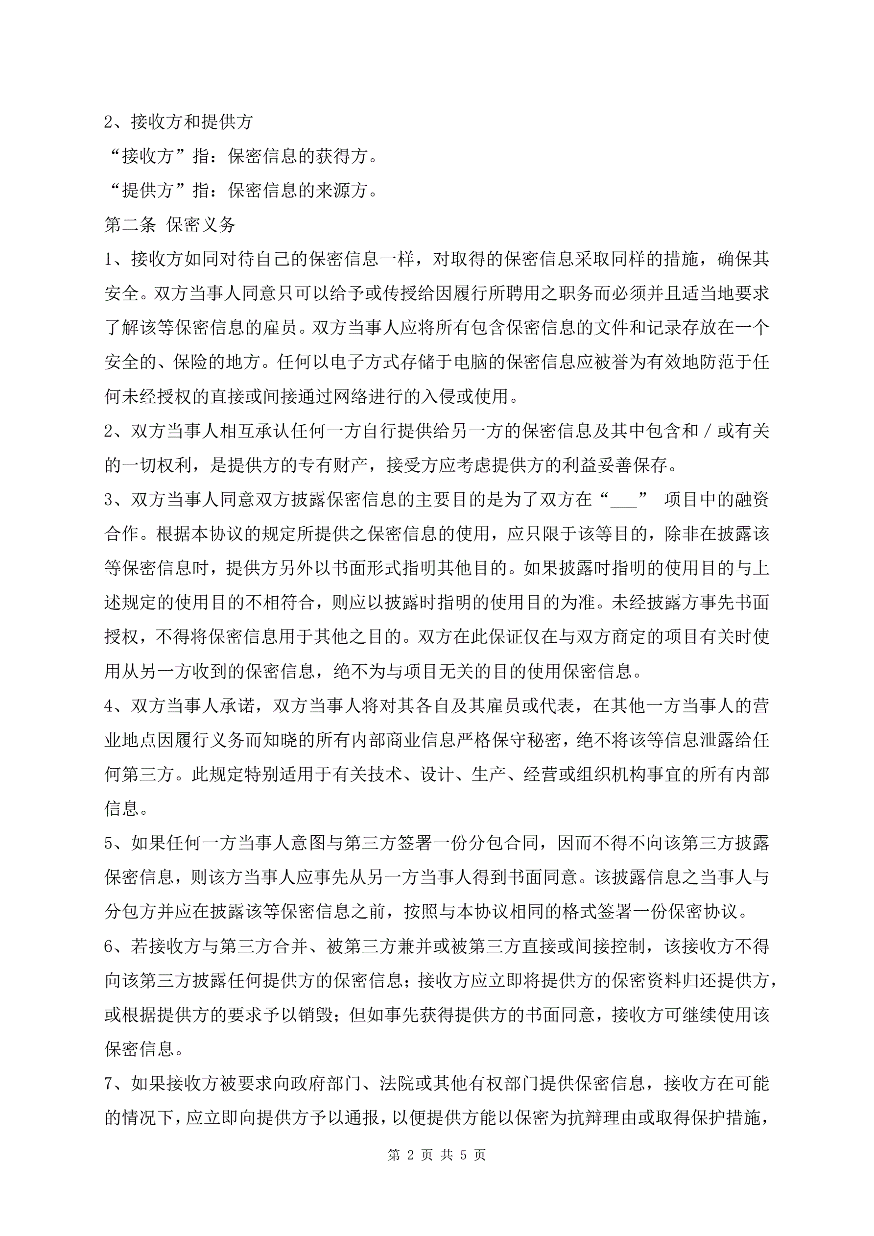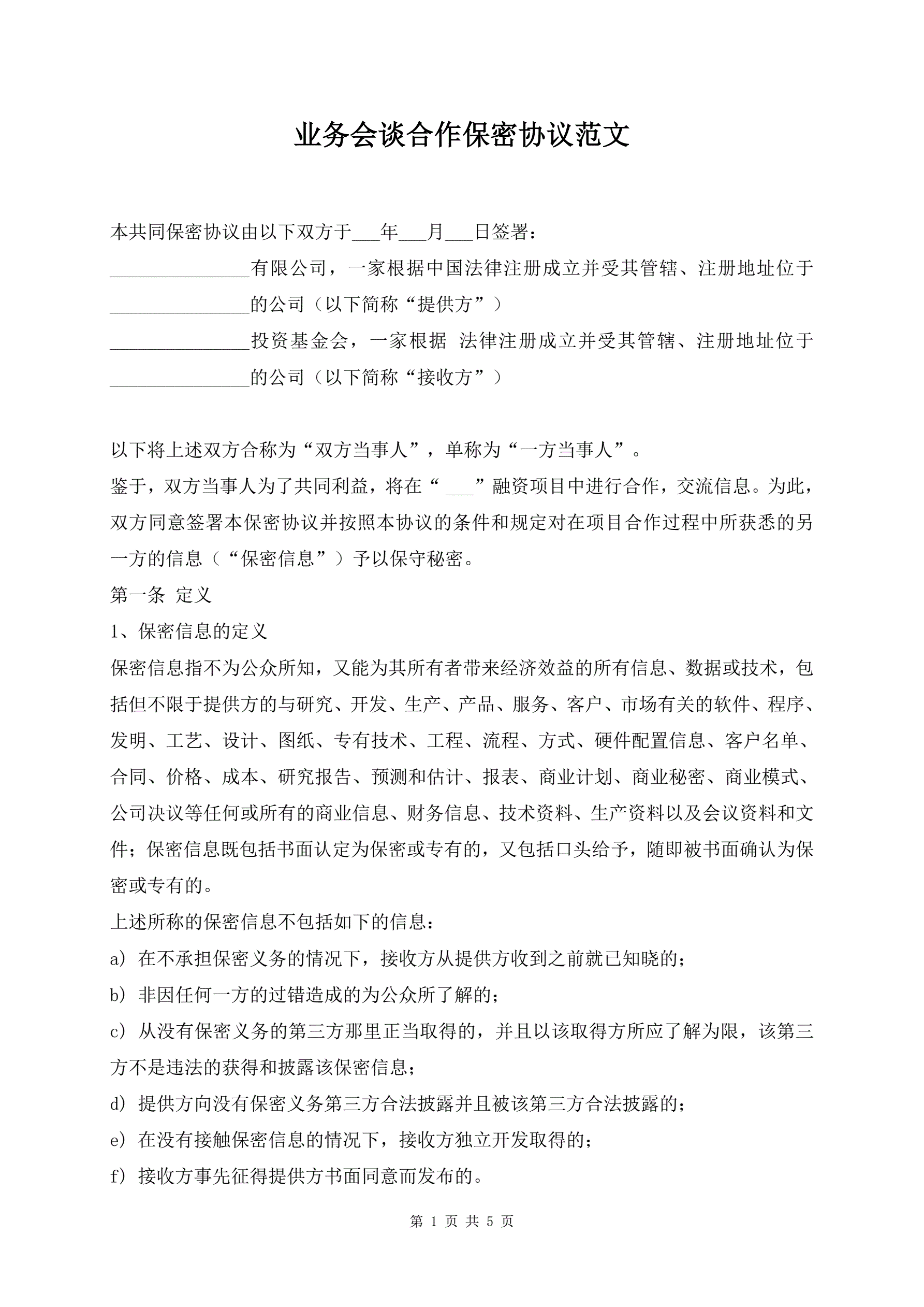 业务会谈合作保密协议范文