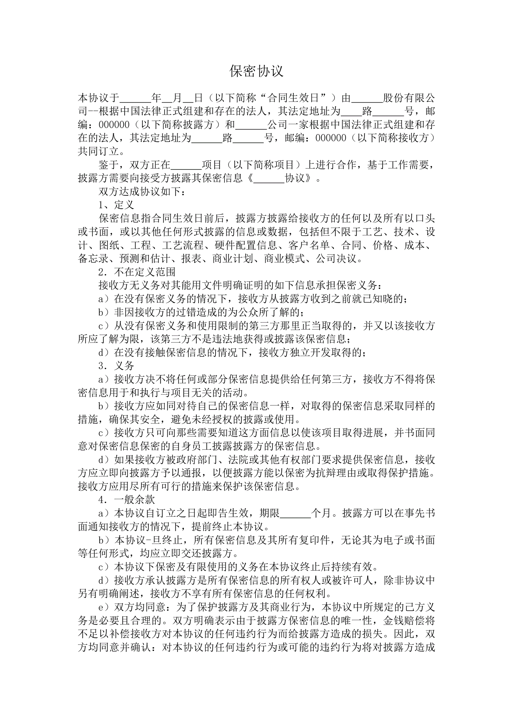 >某公司保密协议书