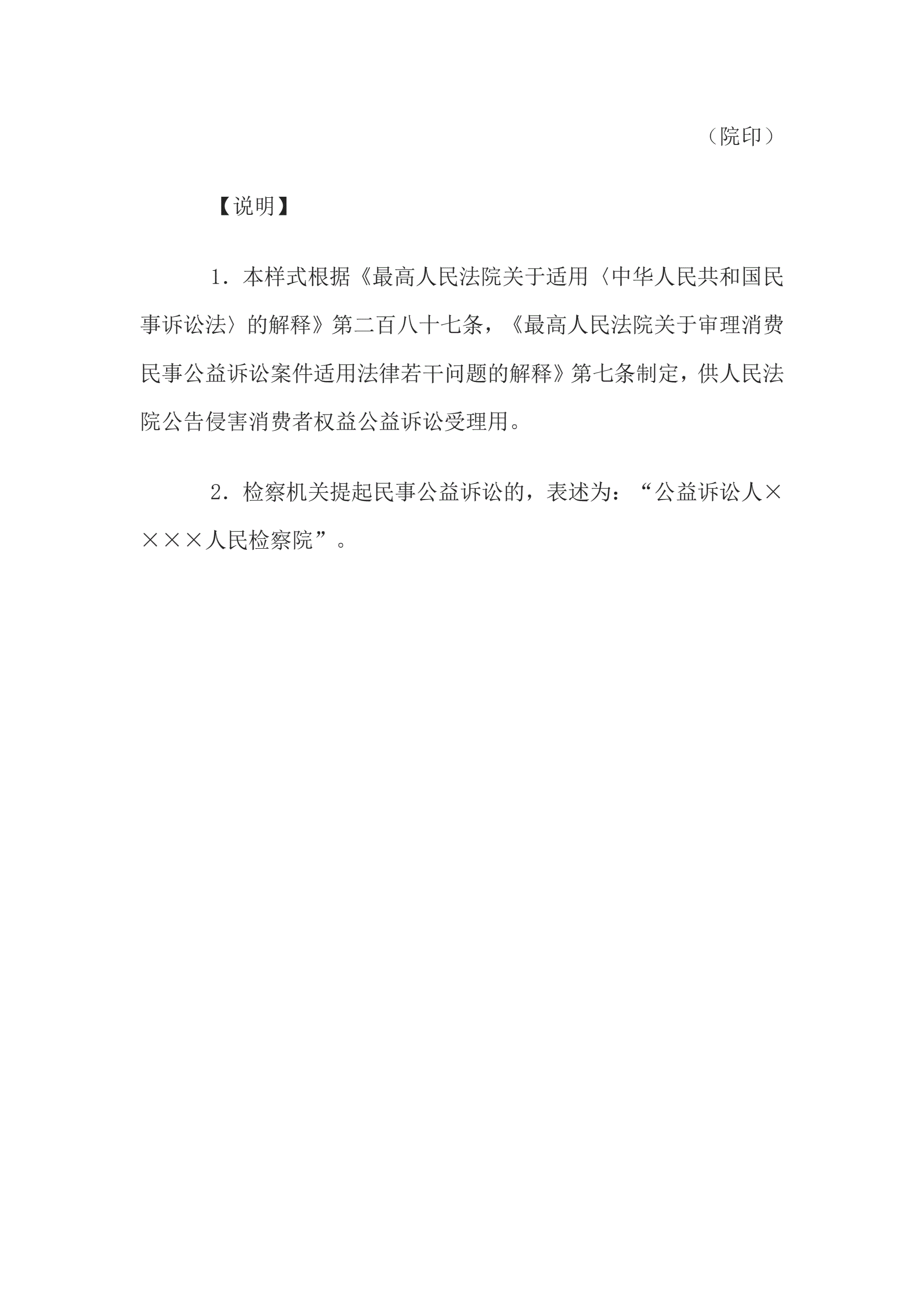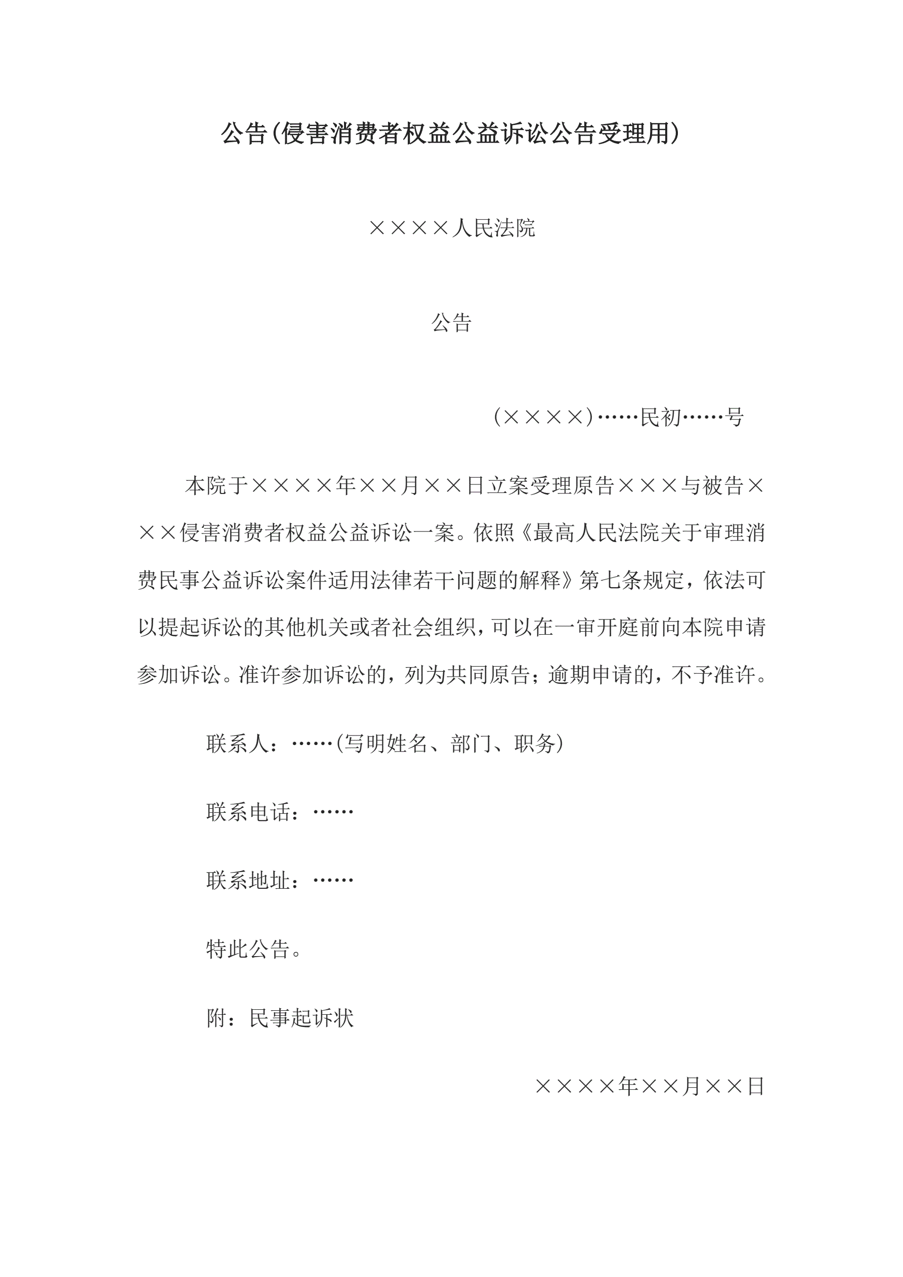 >公告(侵害消费者权益公益诉讼公告受理用)