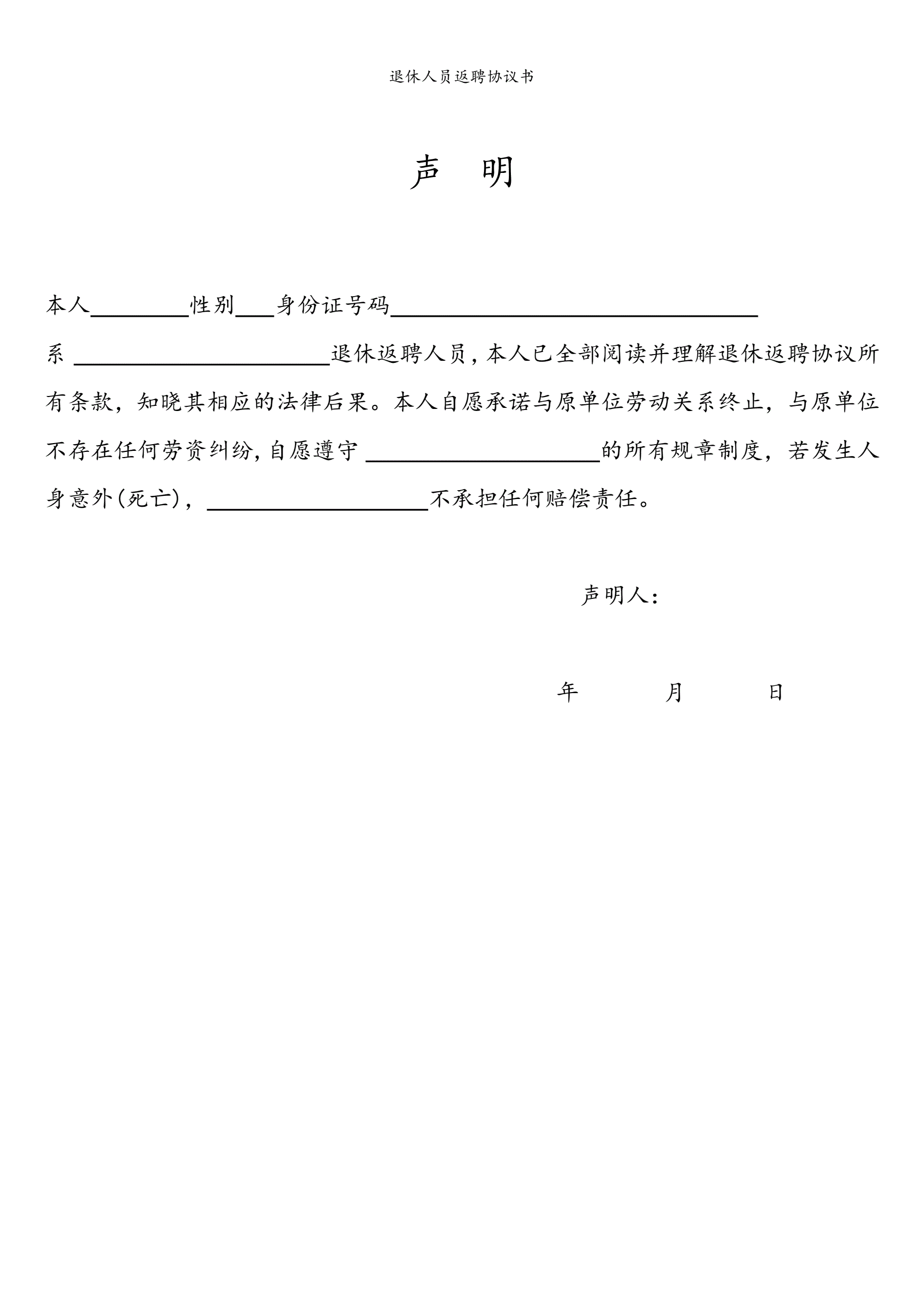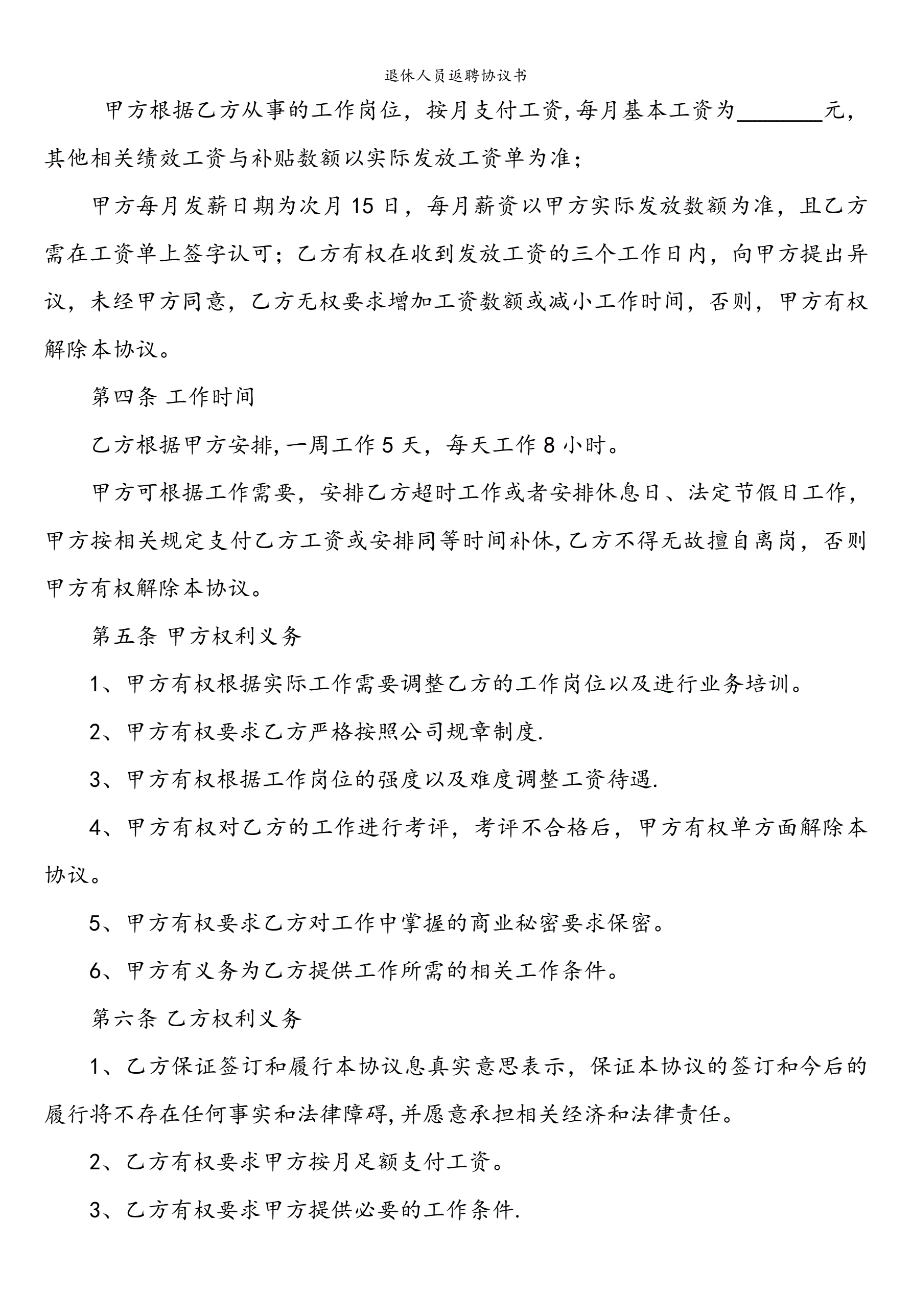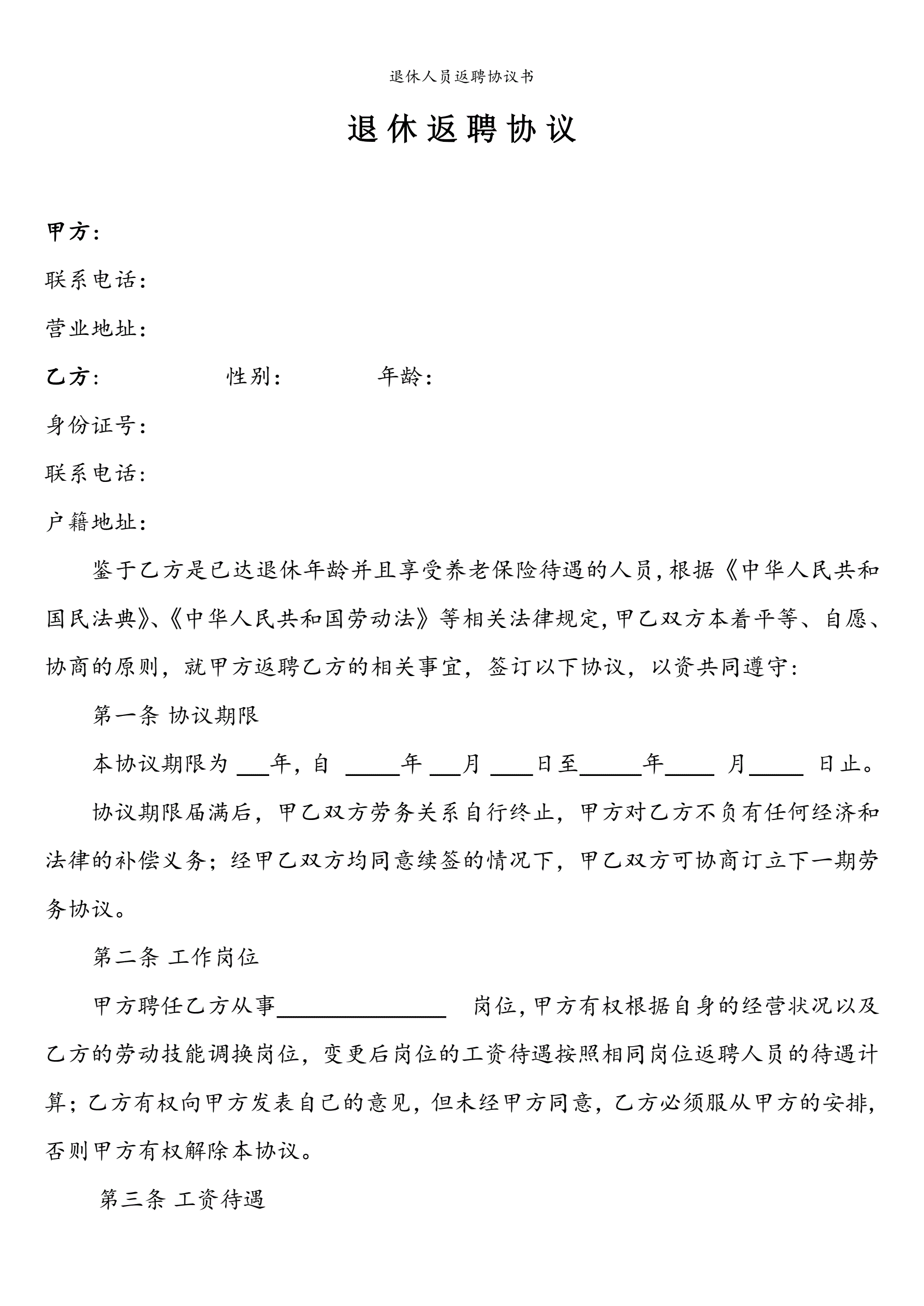 退休人员返聘协议书(指导版)