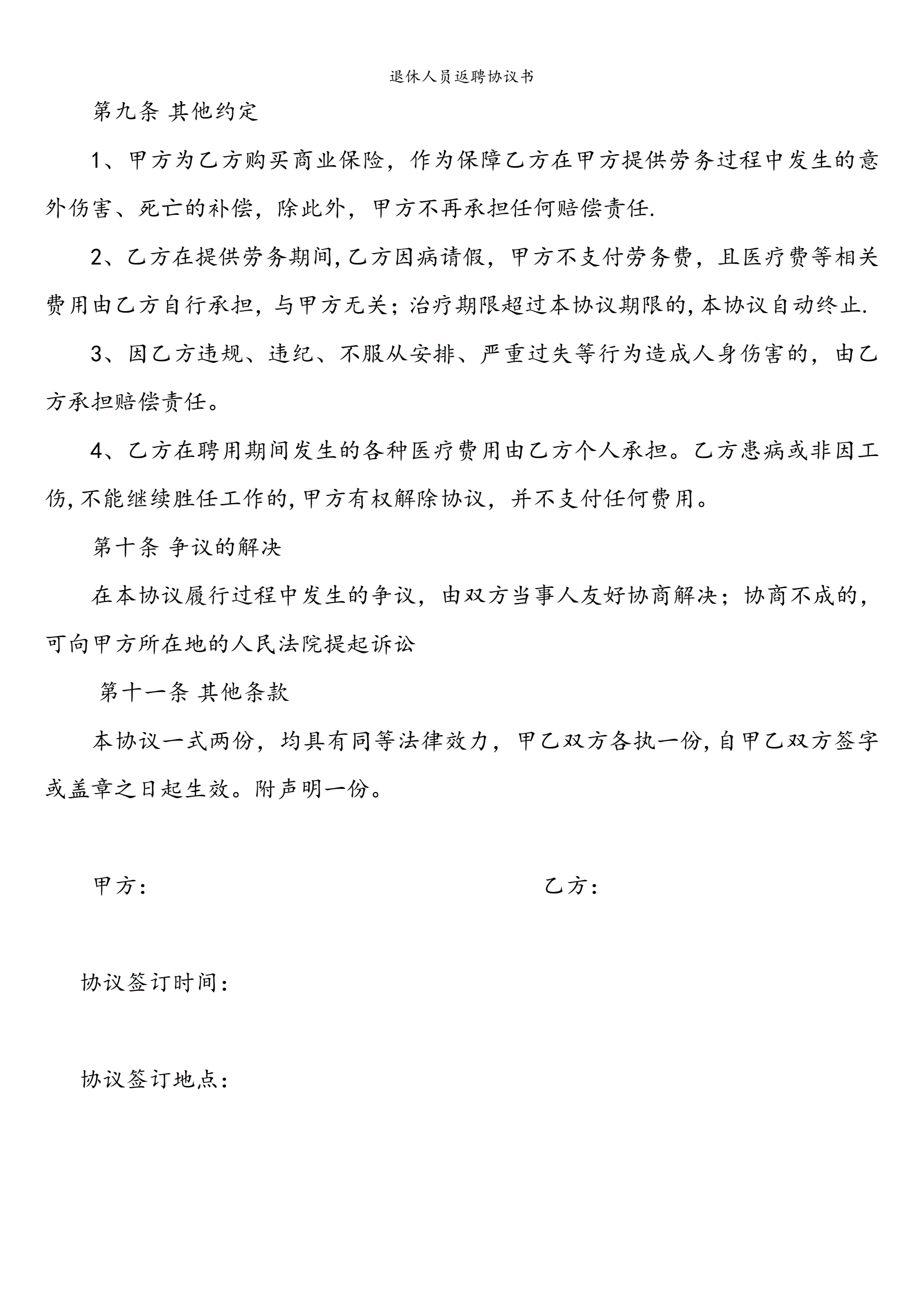 >退休人员返聘协议书(指导版)