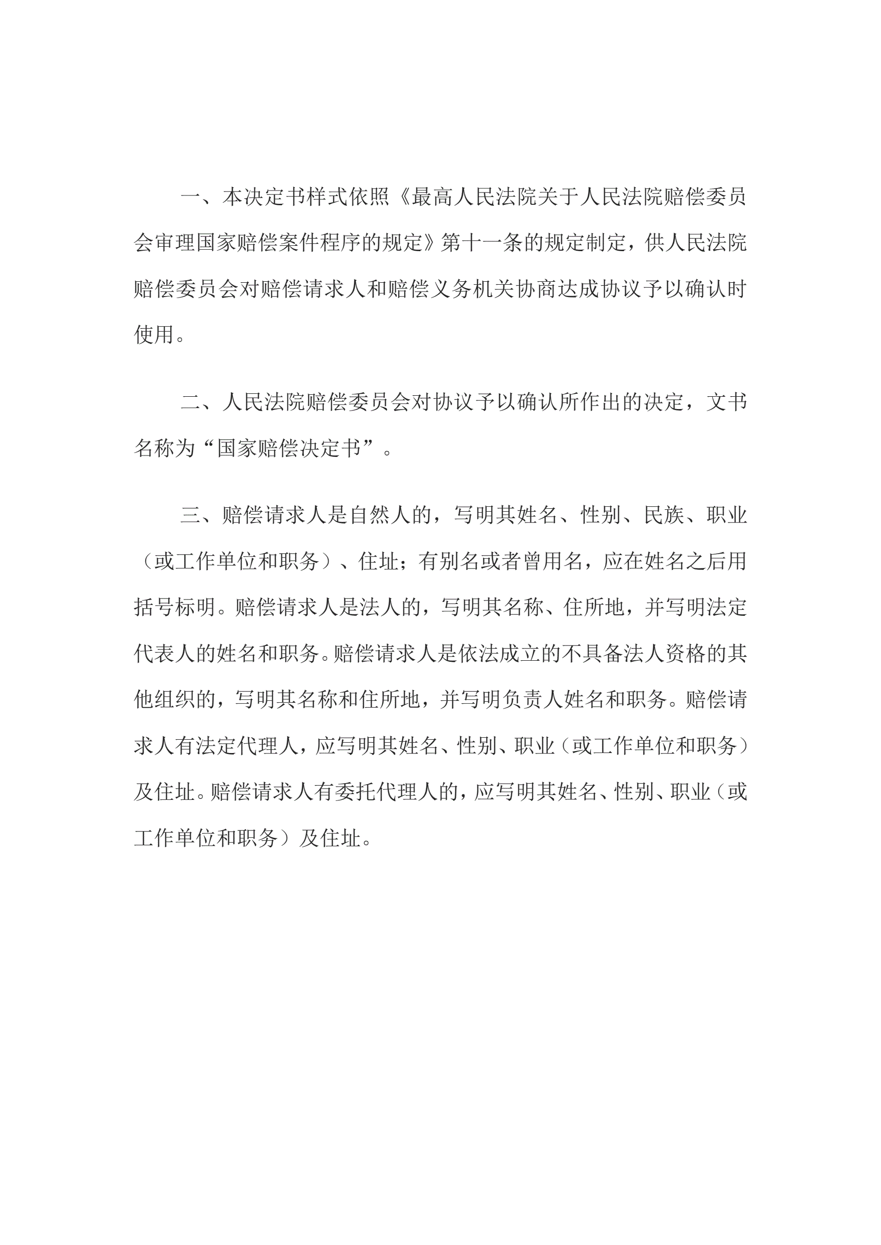 国家赔偿决定书(确认国家赔偿协议用)
