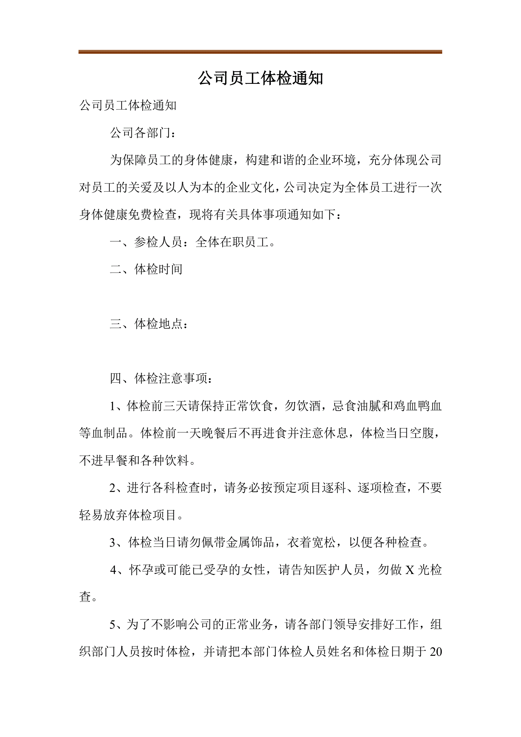 公司员工体检通知(指导版)