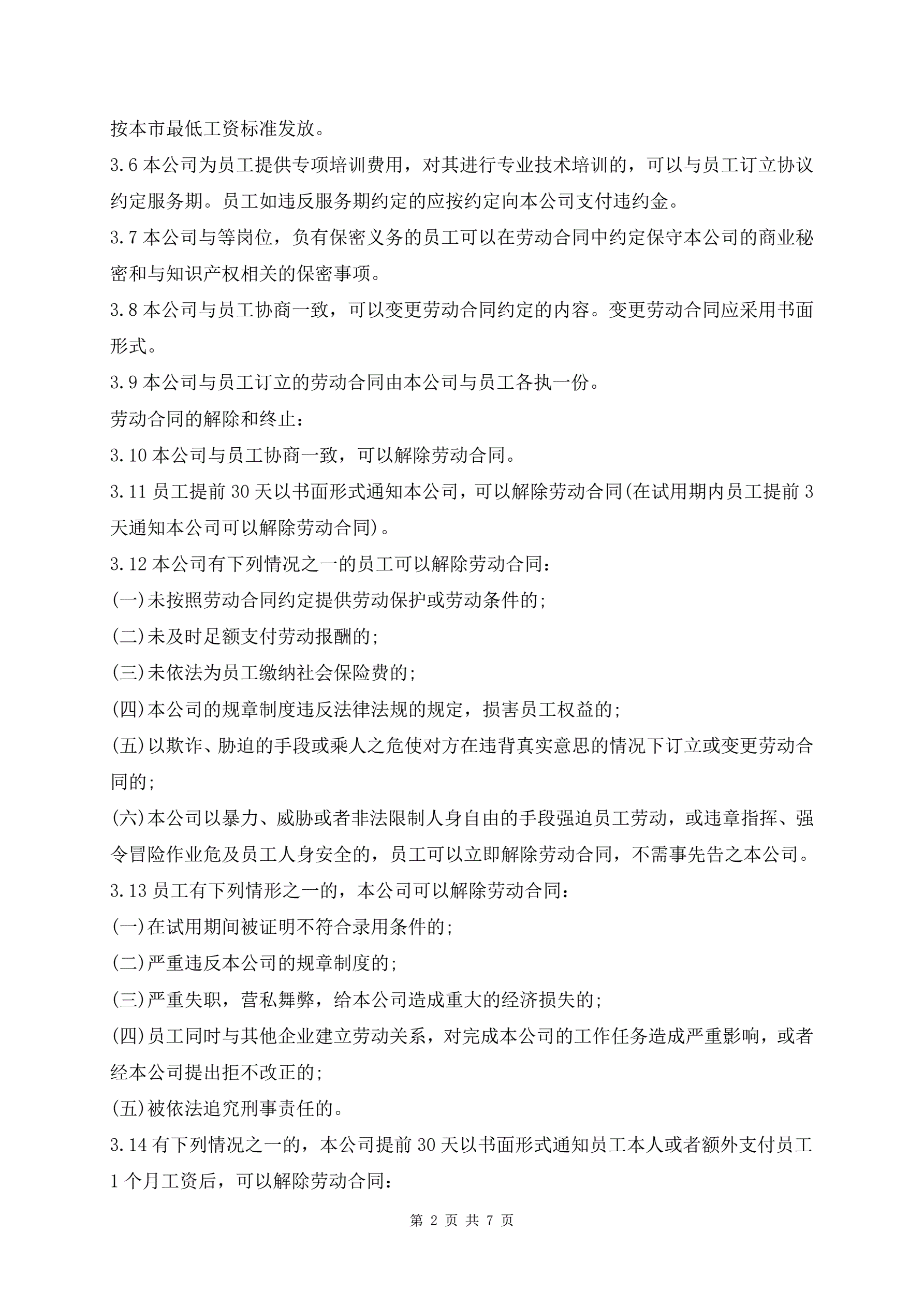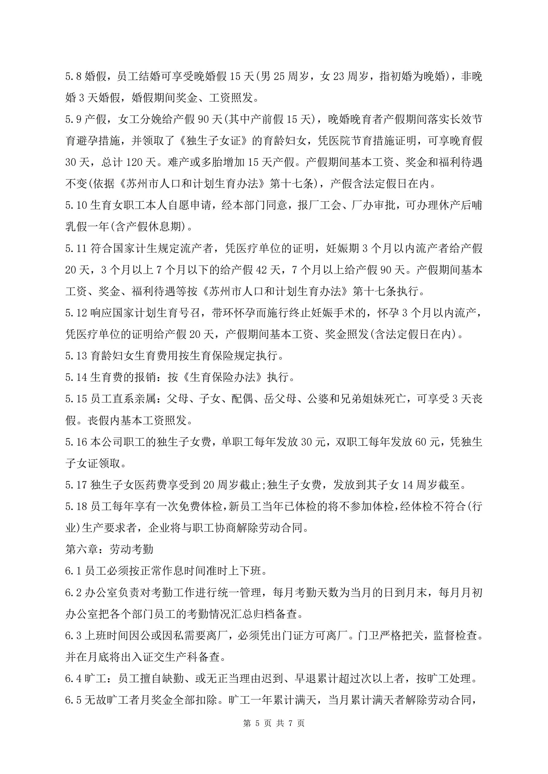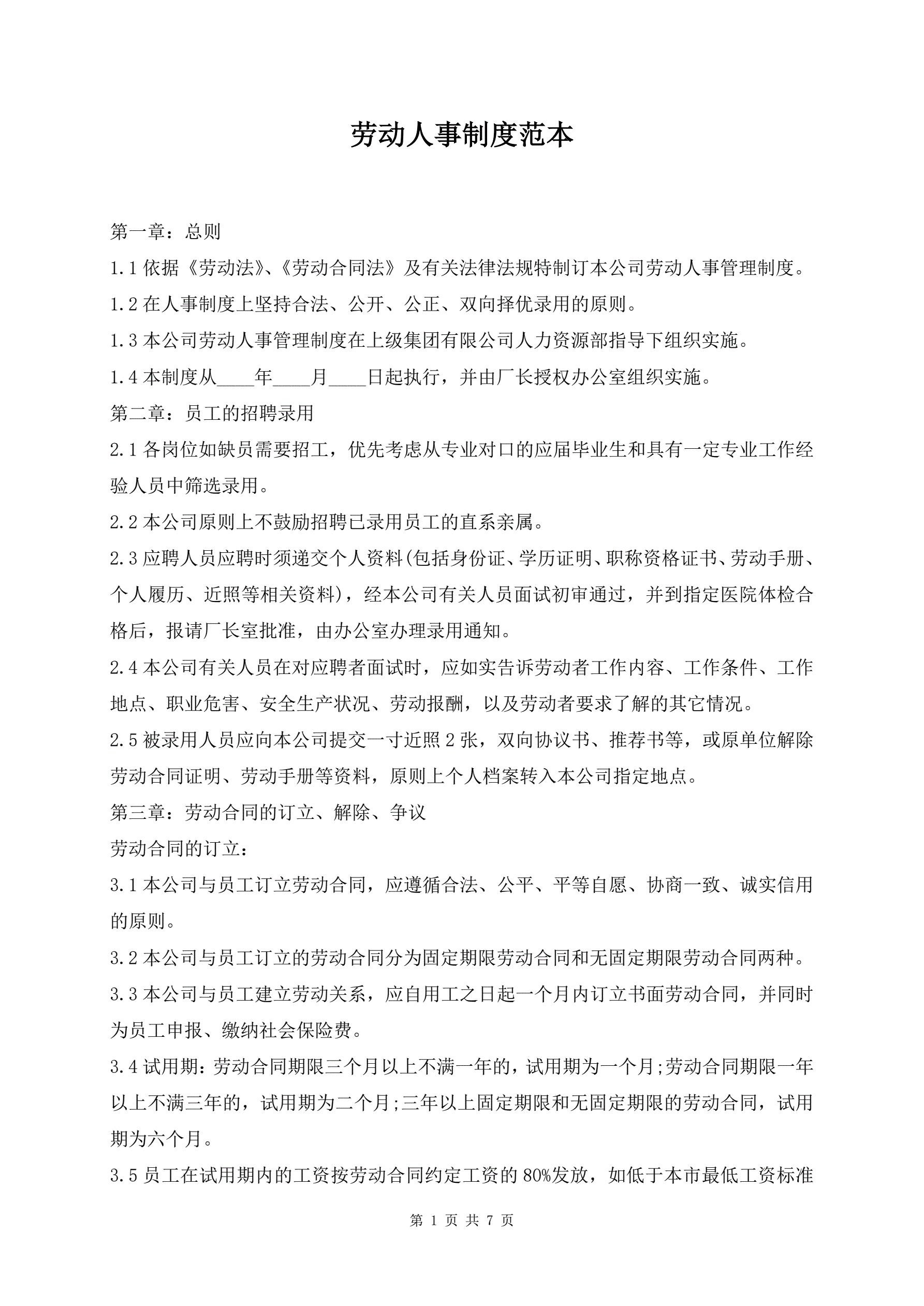 劳动人事制度范本