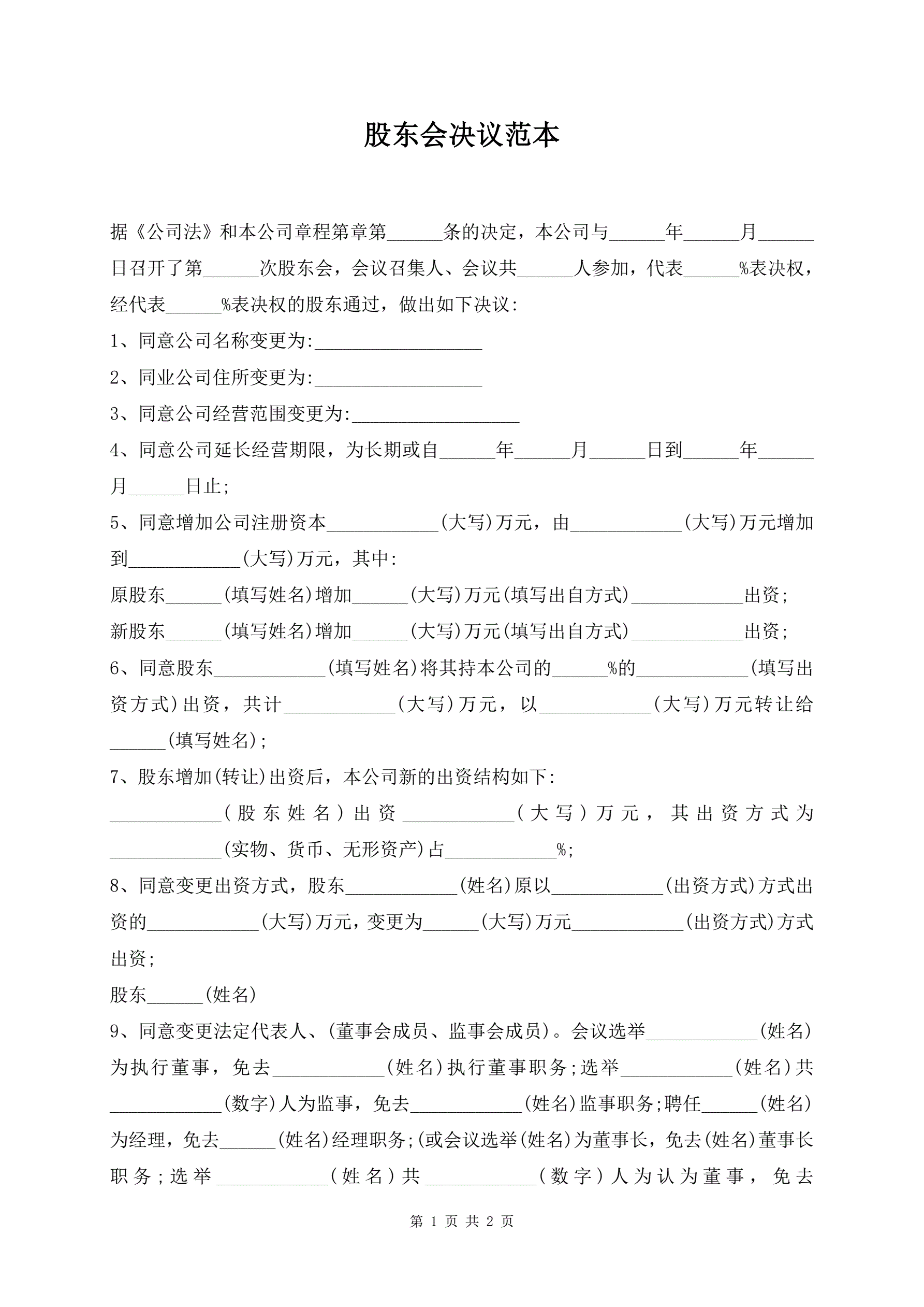 >股东会决议范本