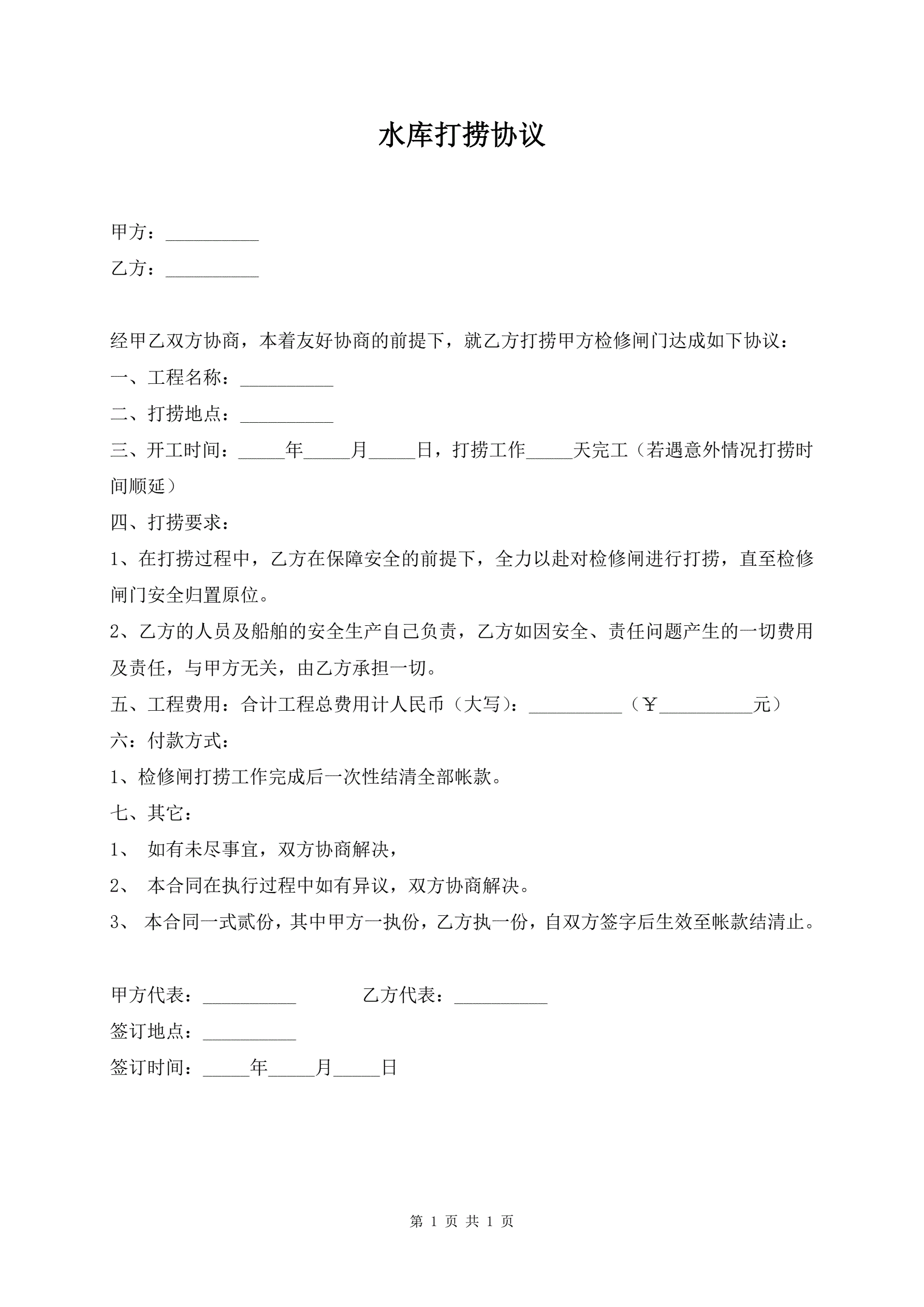 水库打捞协议