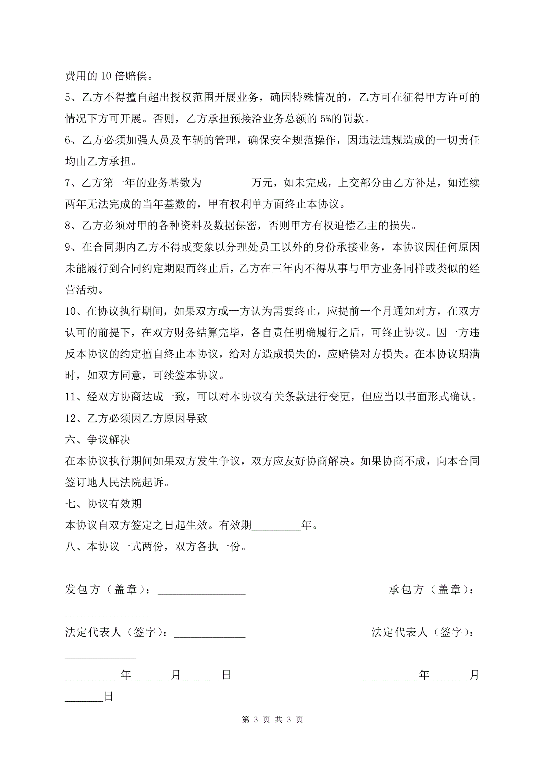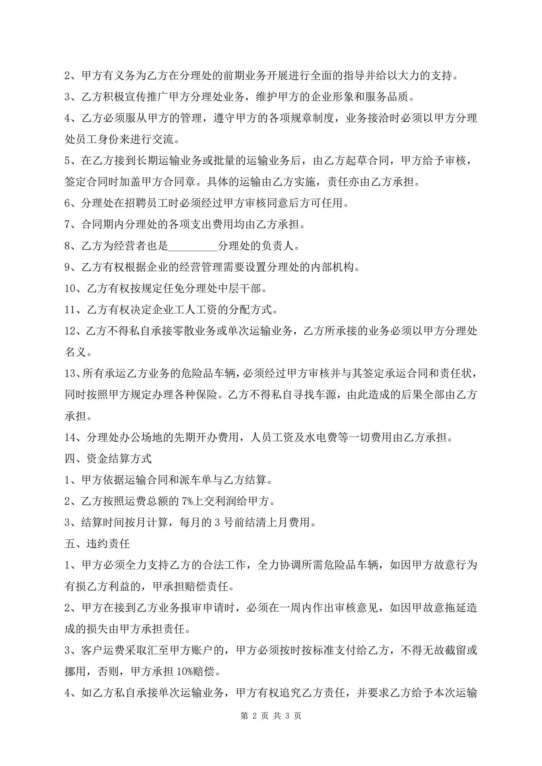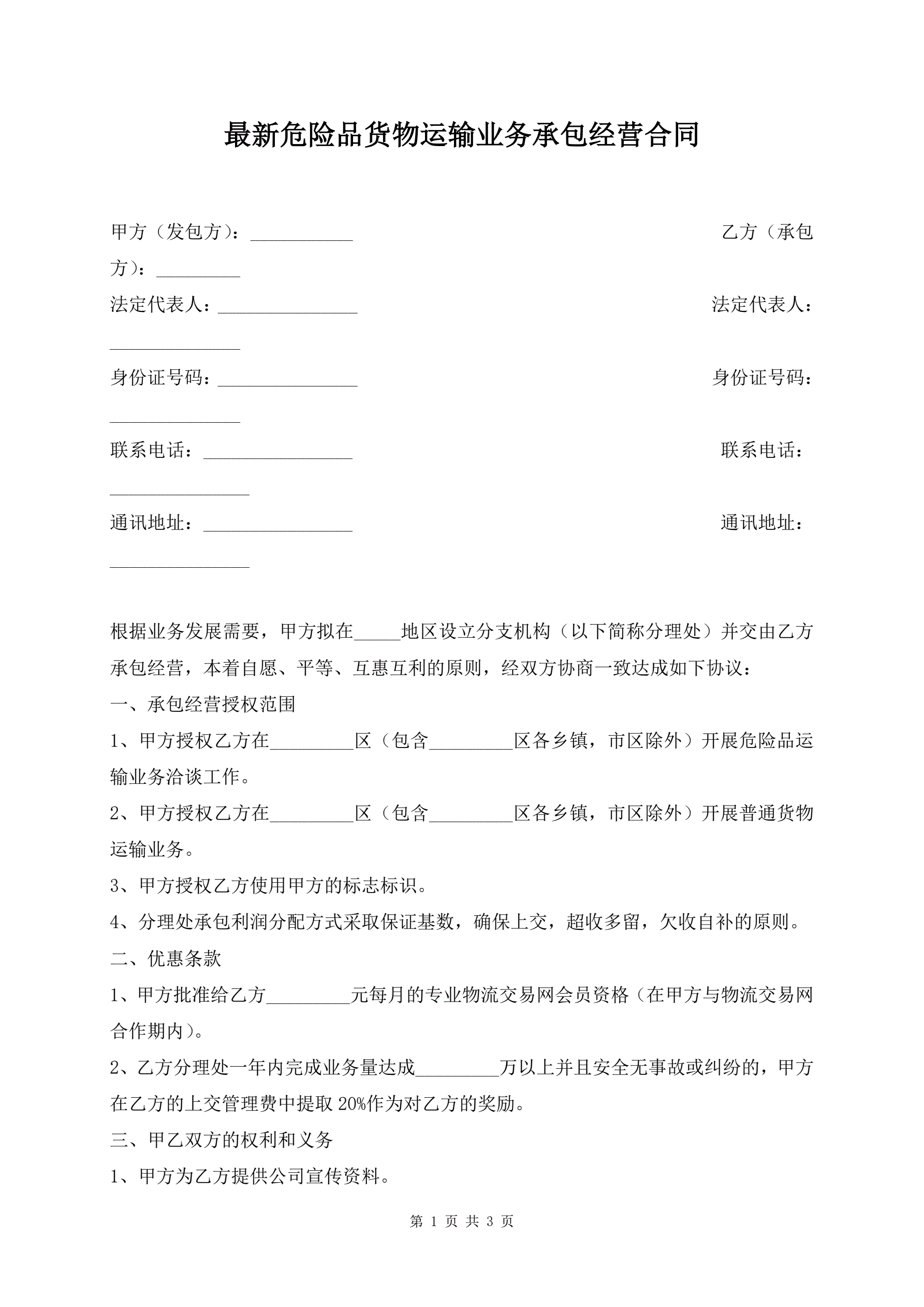 >最新危险品货物运输业务承包经营合同
