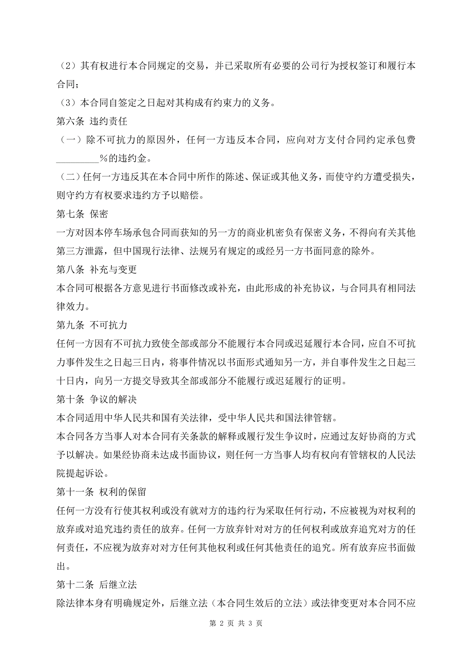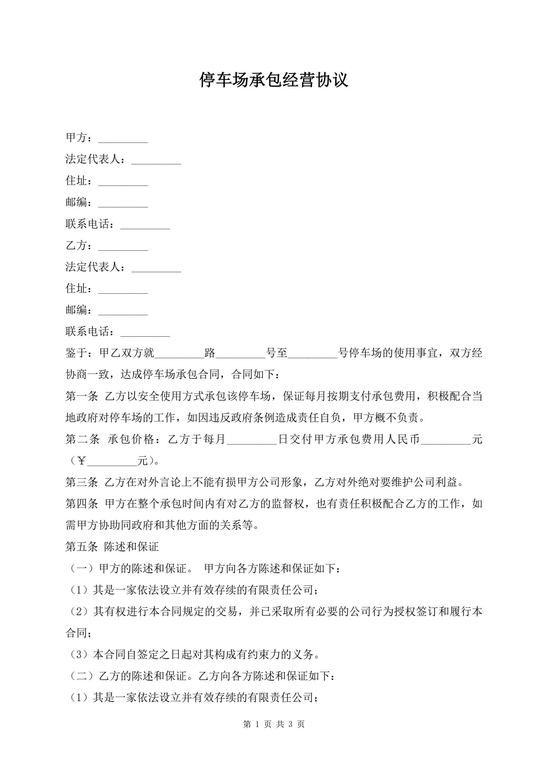 >停车场承包经营协议