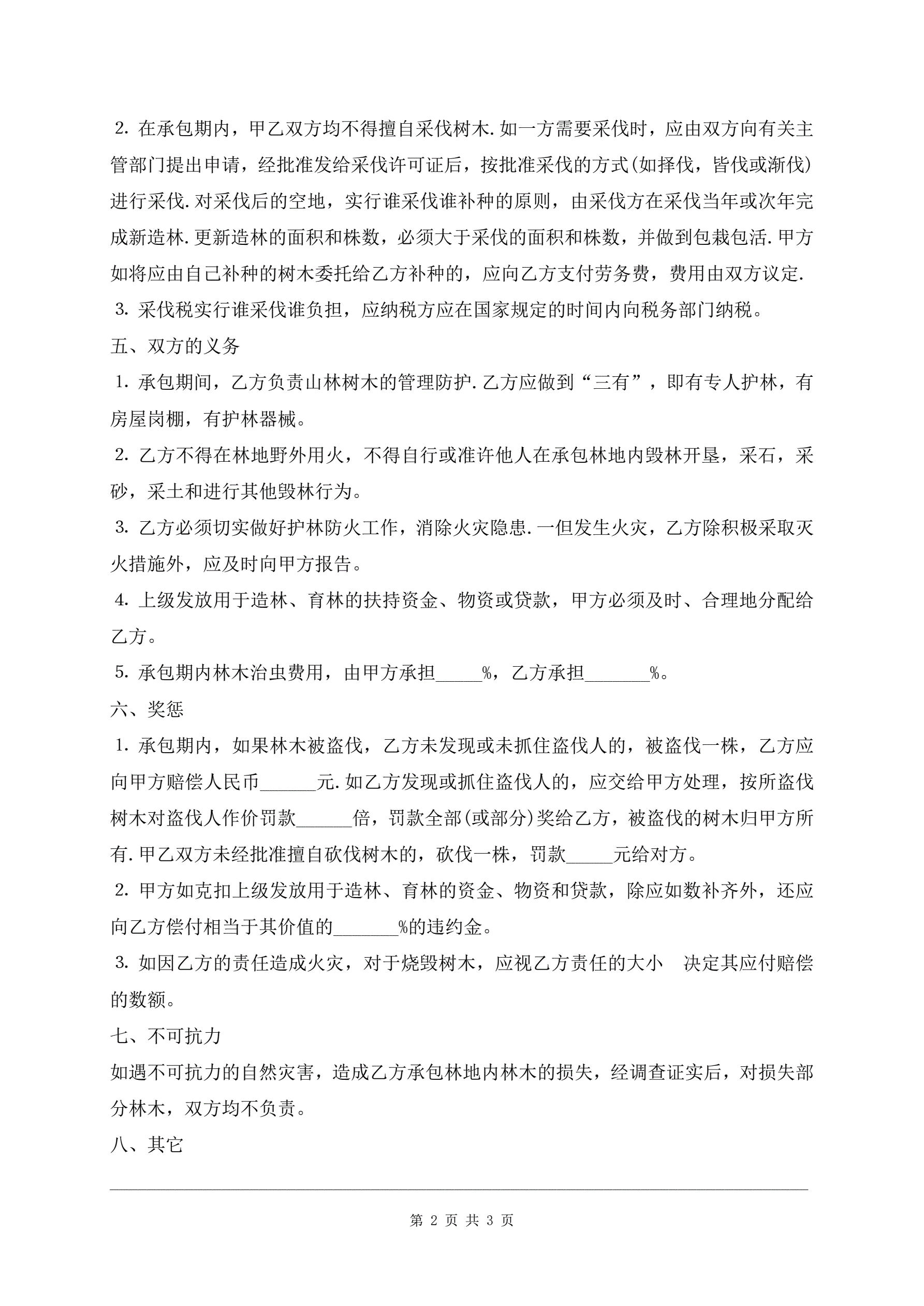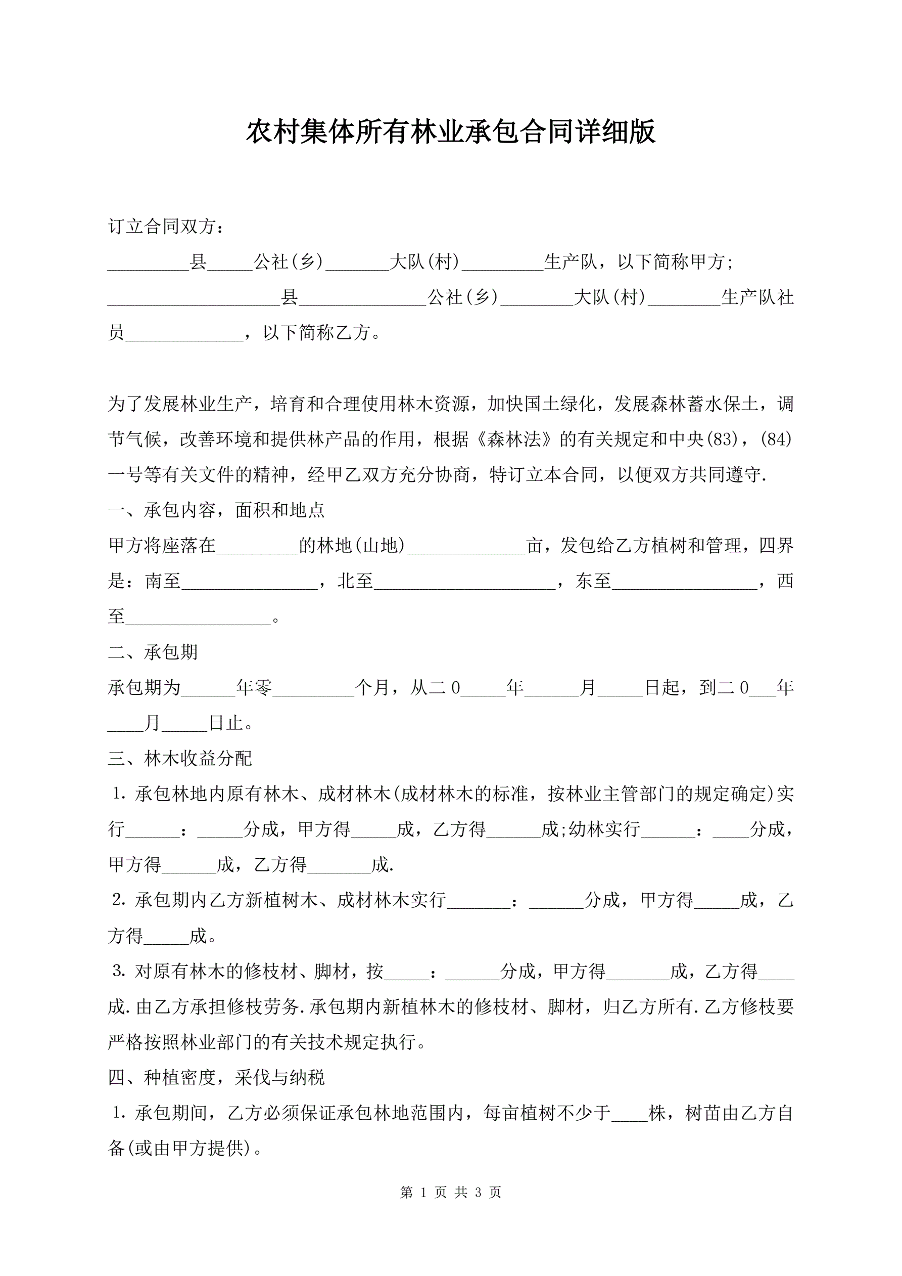 >农村集体所有林业承包合同详细版