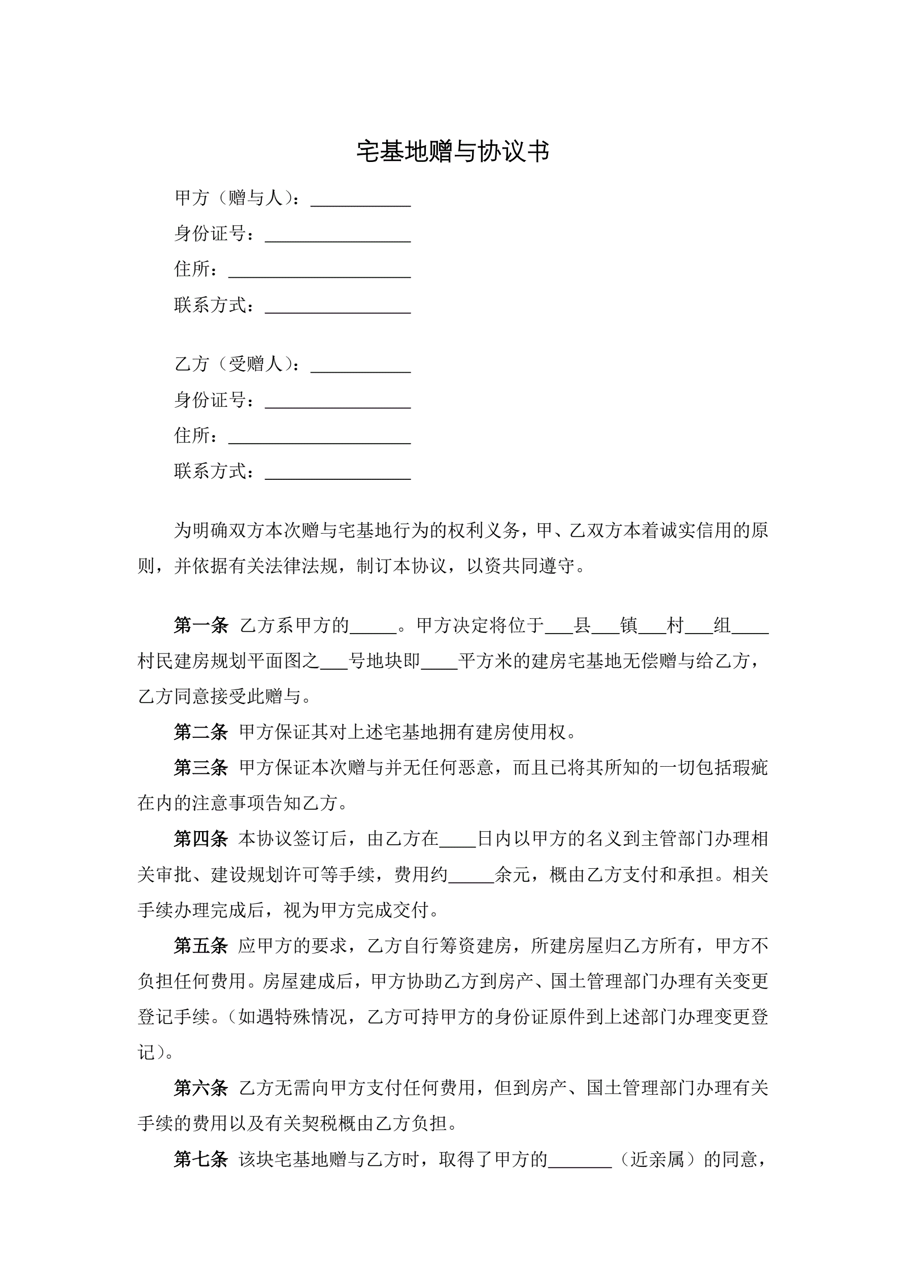 宅基地赠与协议书