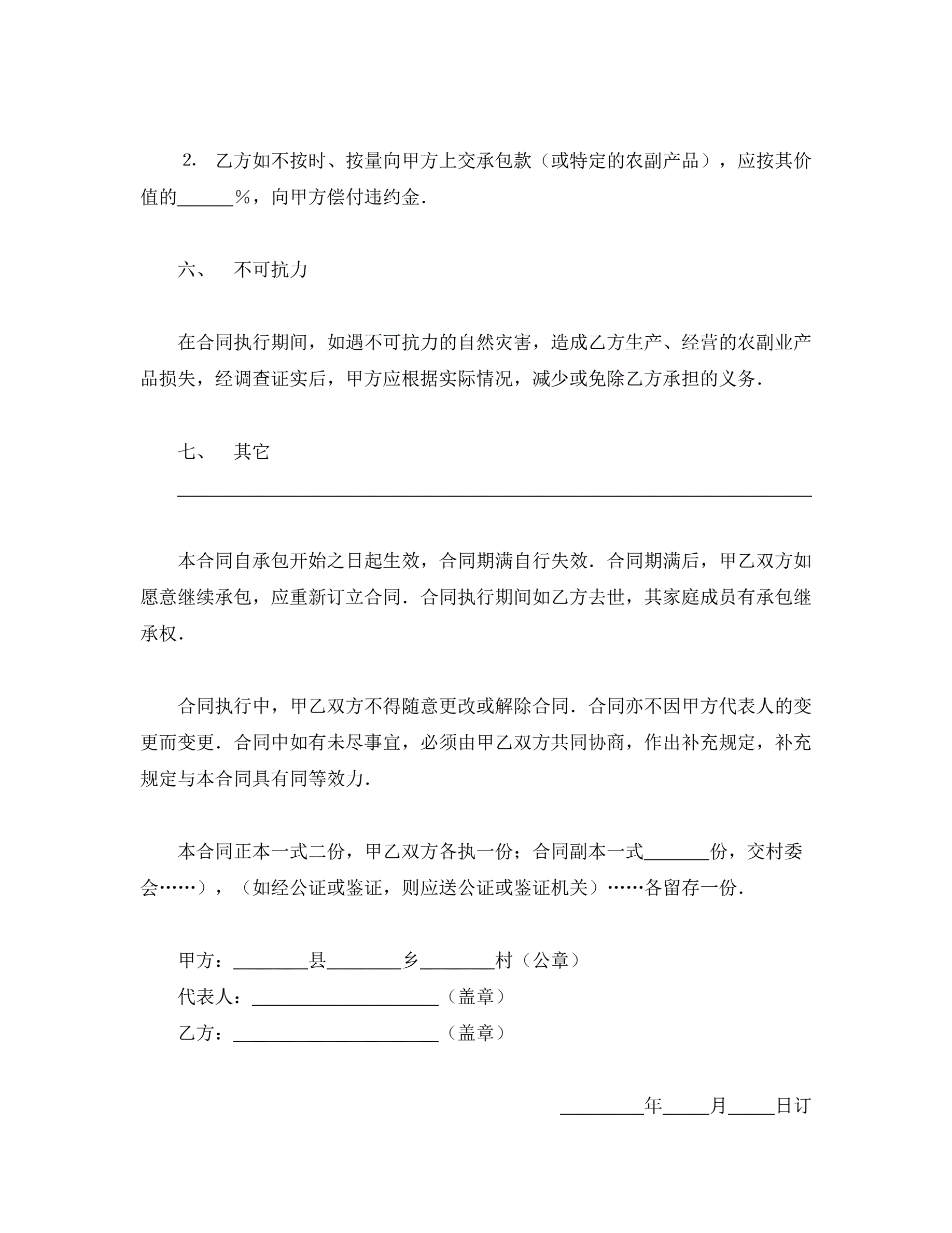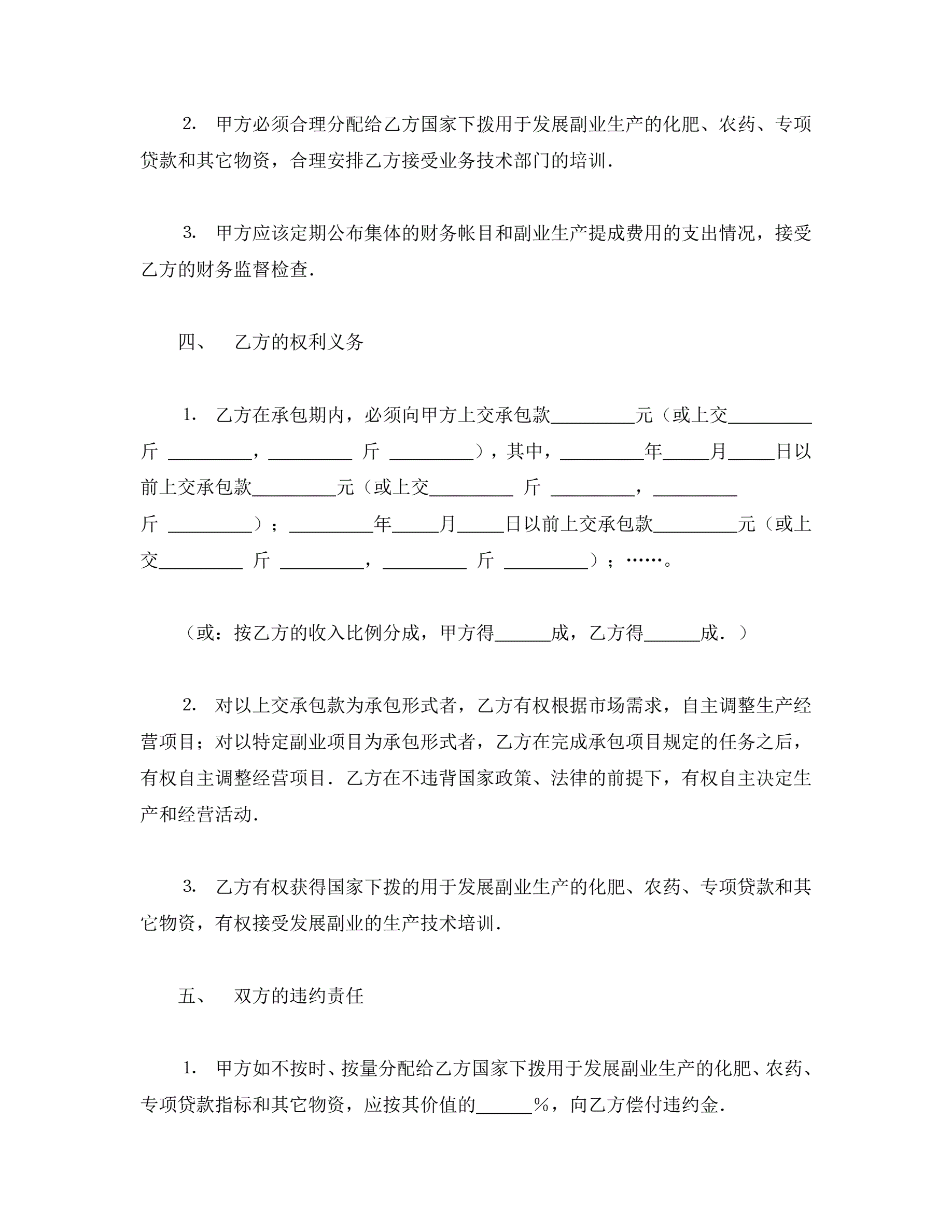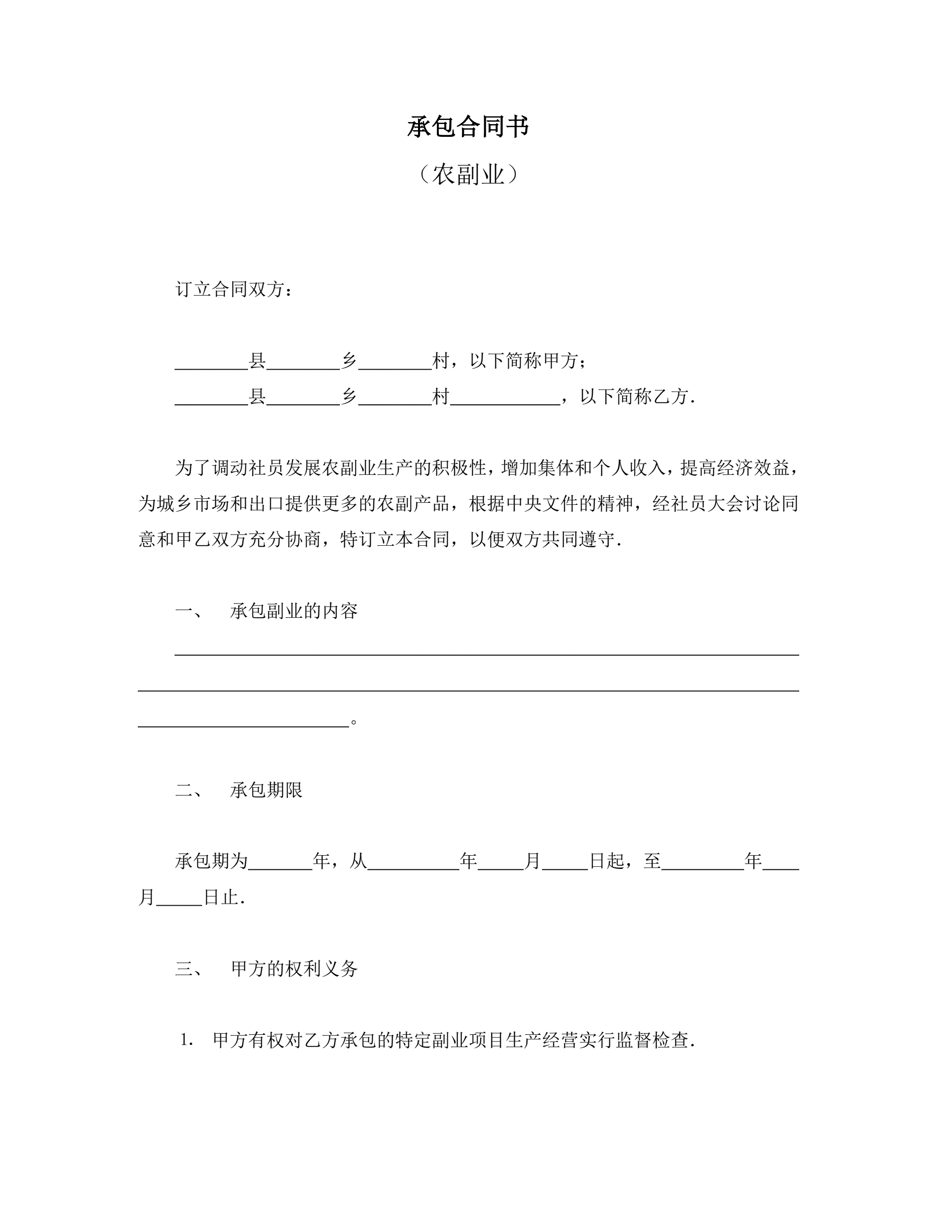 >承包合同书(农副业)