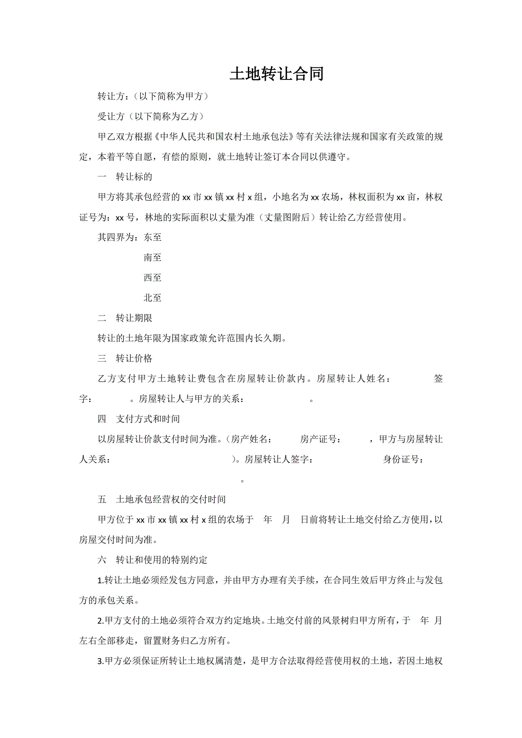 土地转让合同