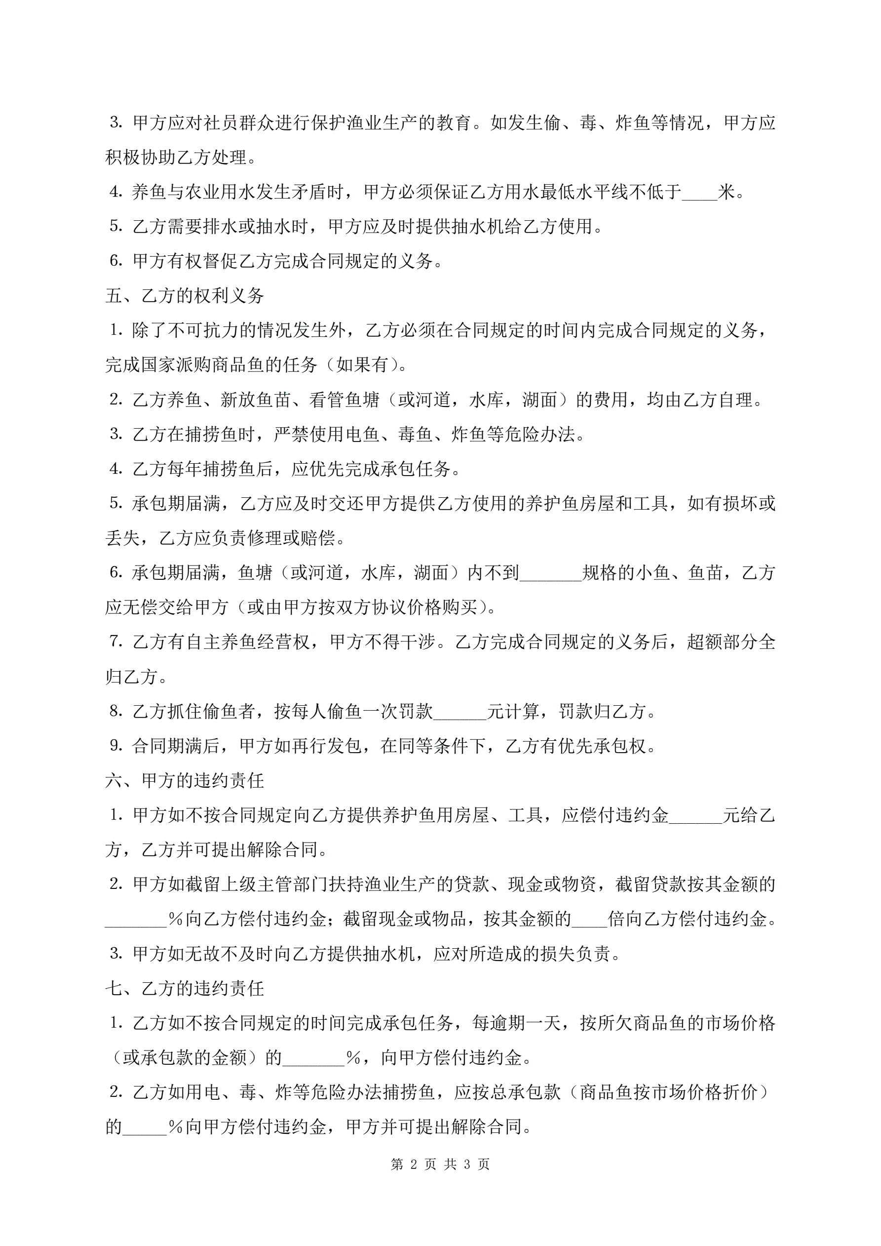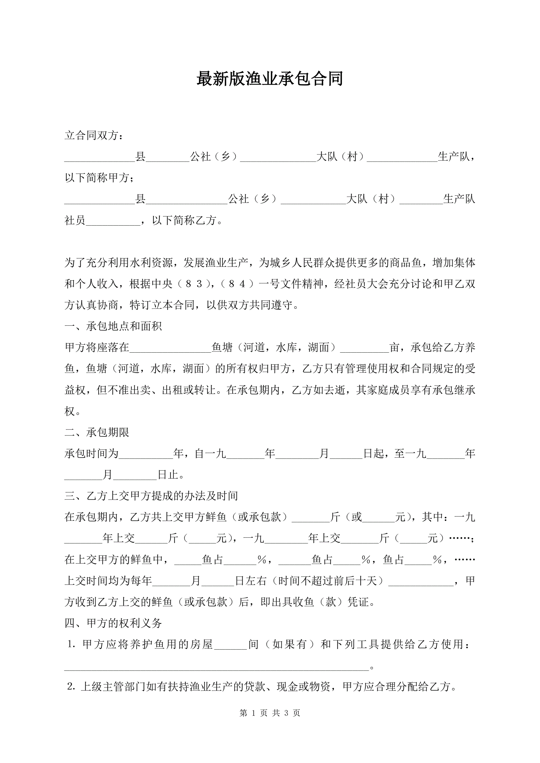 最新版渔业承包合同