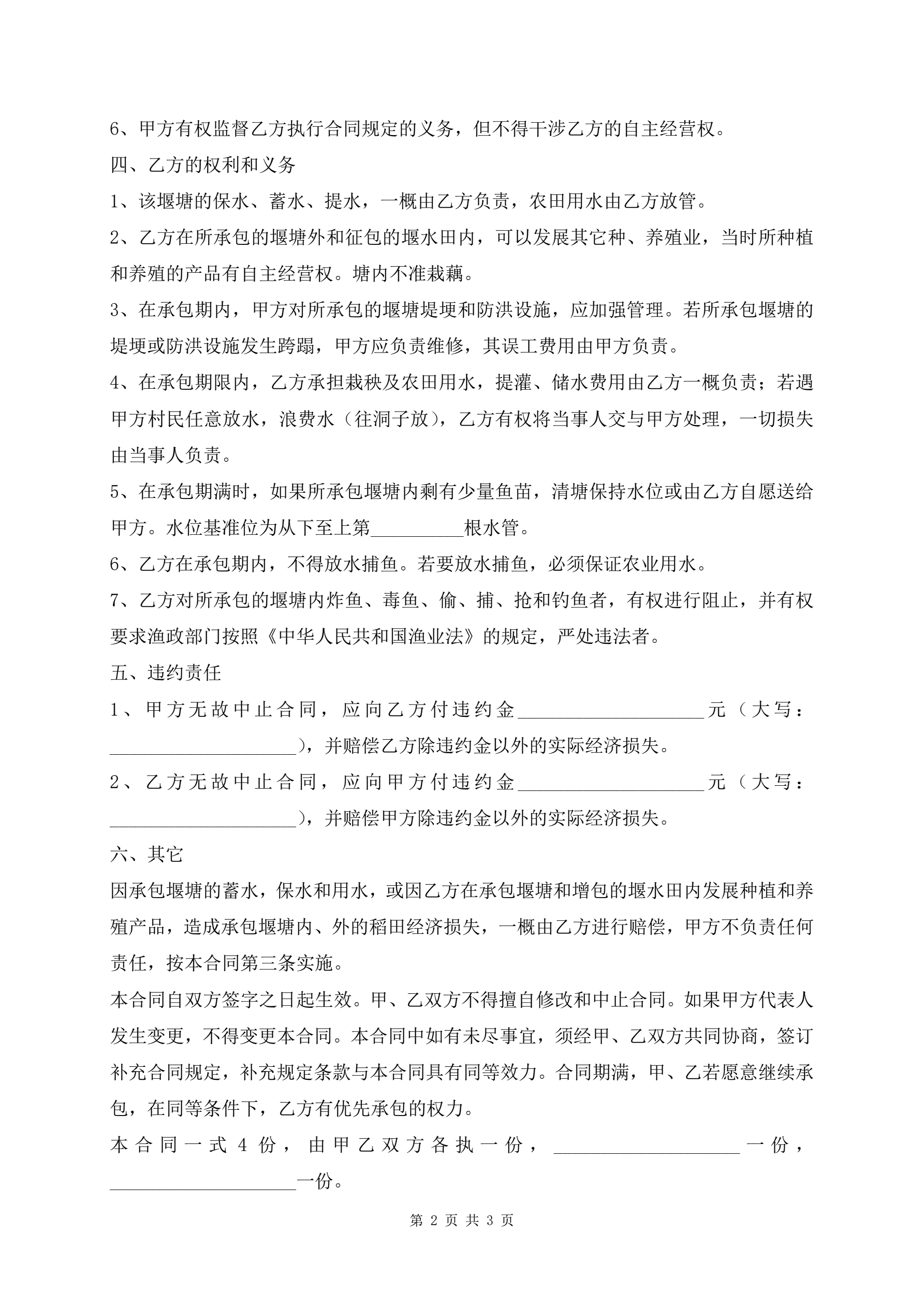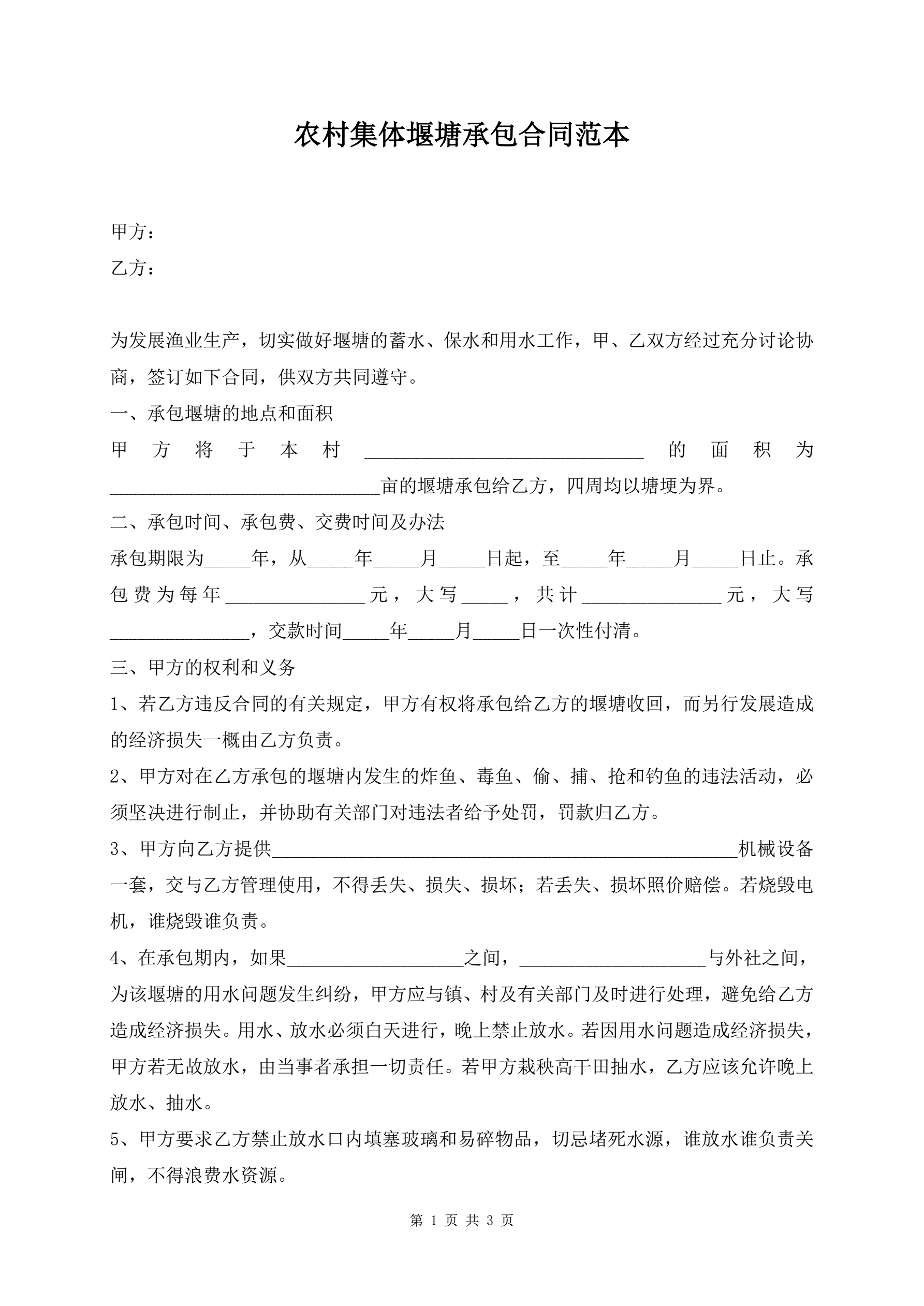 农村集体堰塘承包合同范本