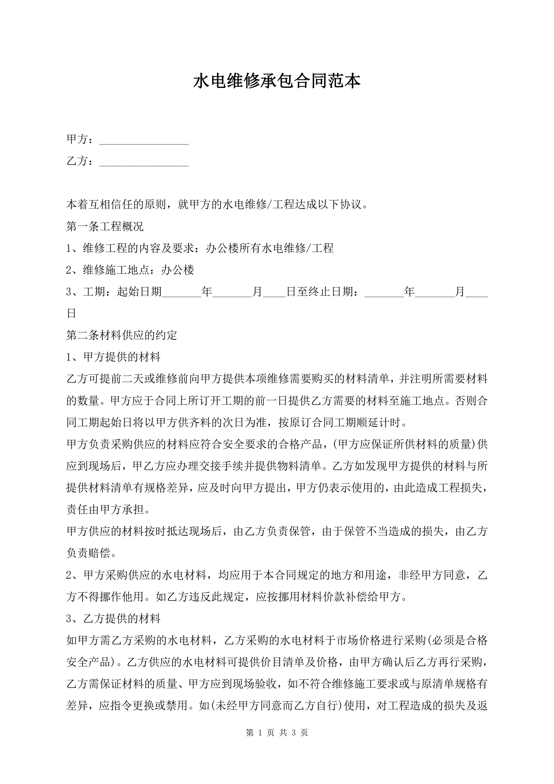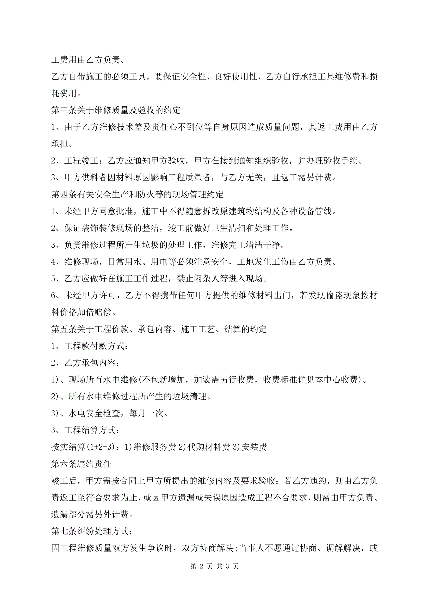 >水电维修承包合同范本