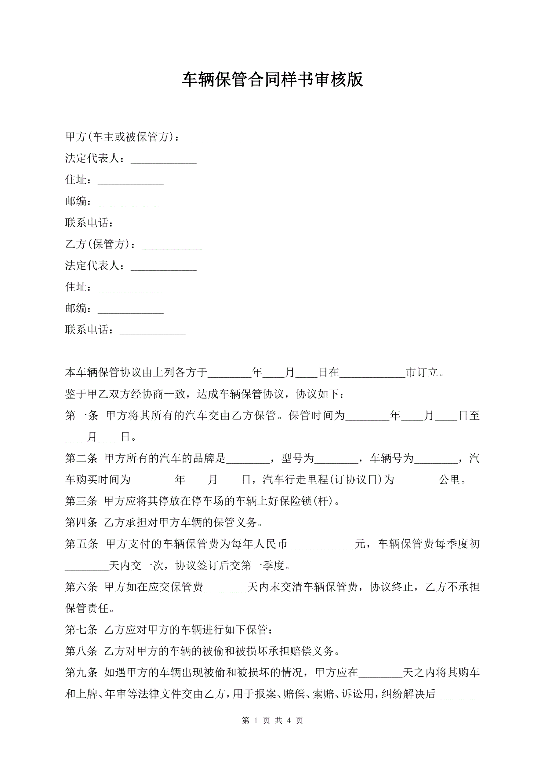 >车辆保管合同样书审核版