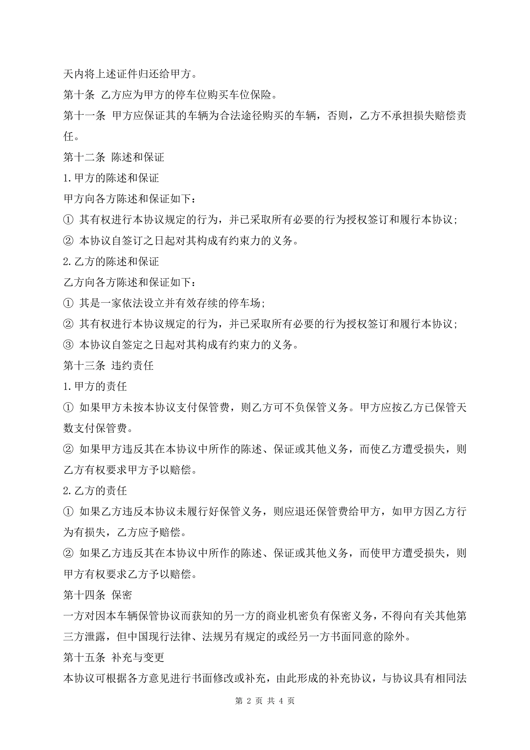 车辆保管合同样书审核版