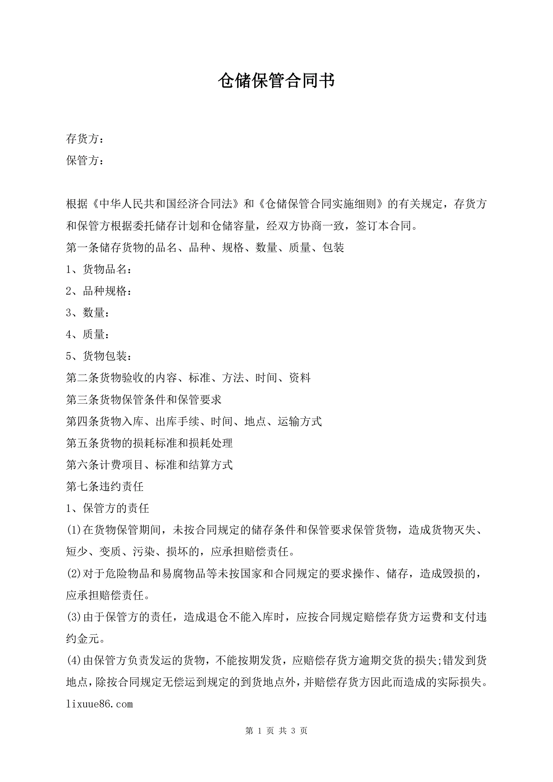 >仓储保管合同书