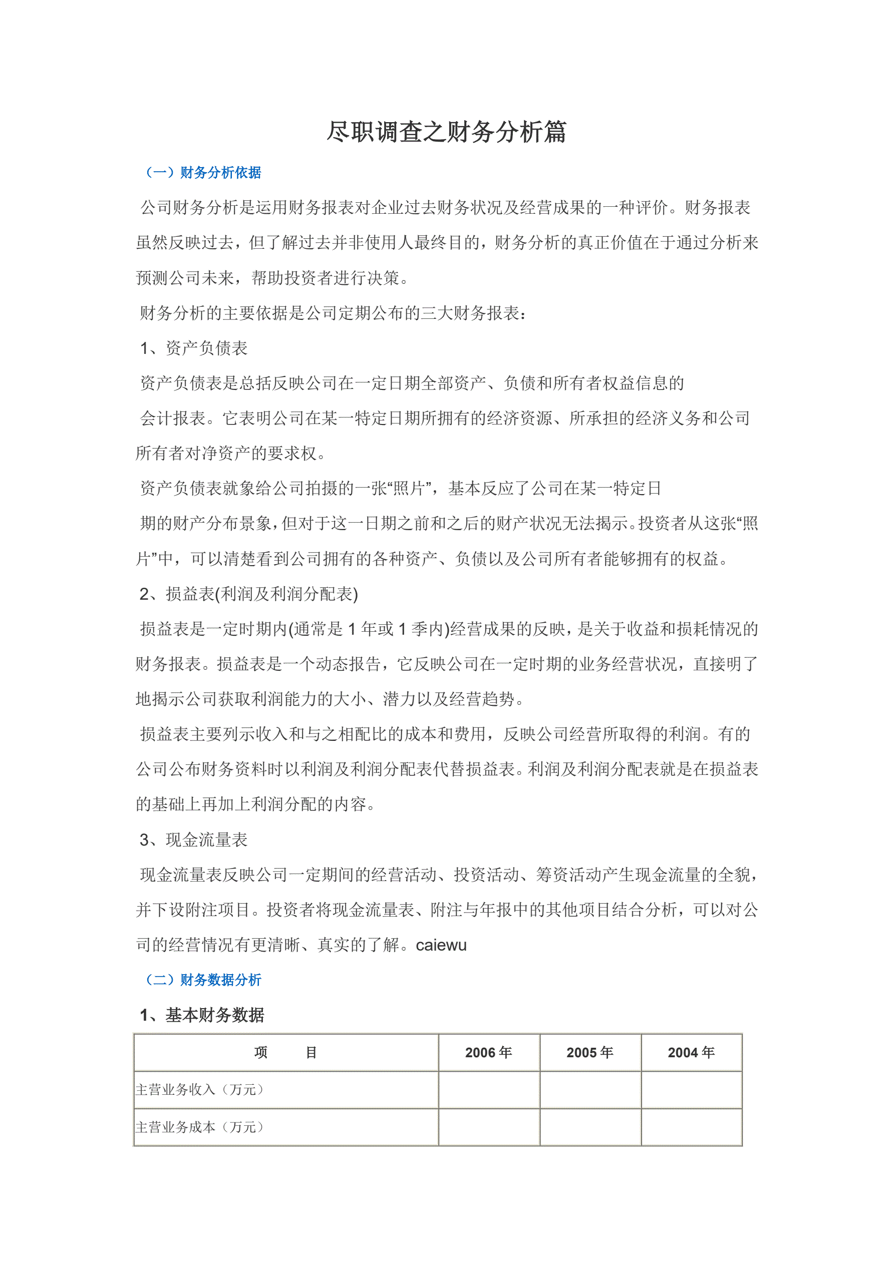 尽职调查之财务分析篇
