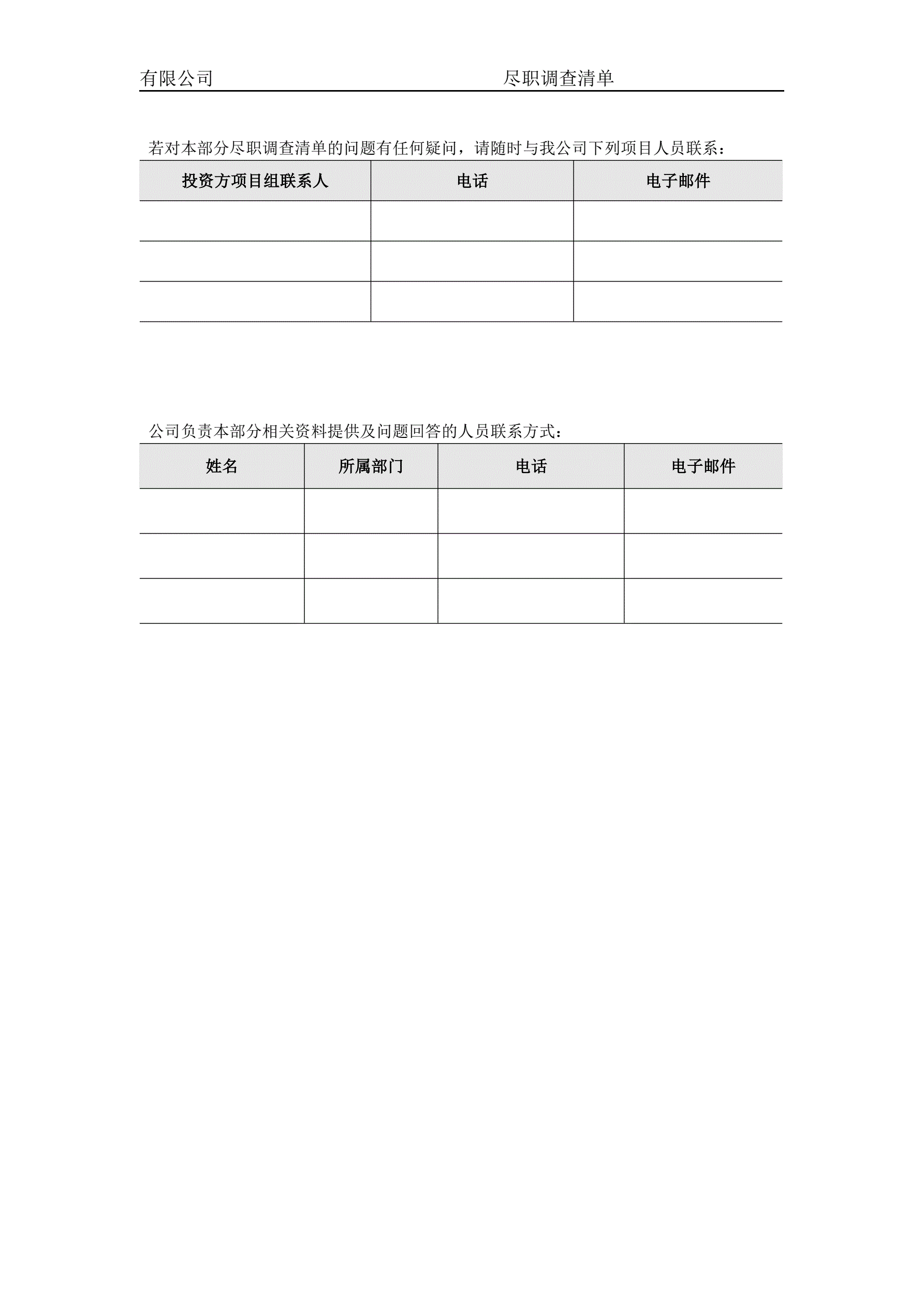 >关于XXX有限公司的尽职调查