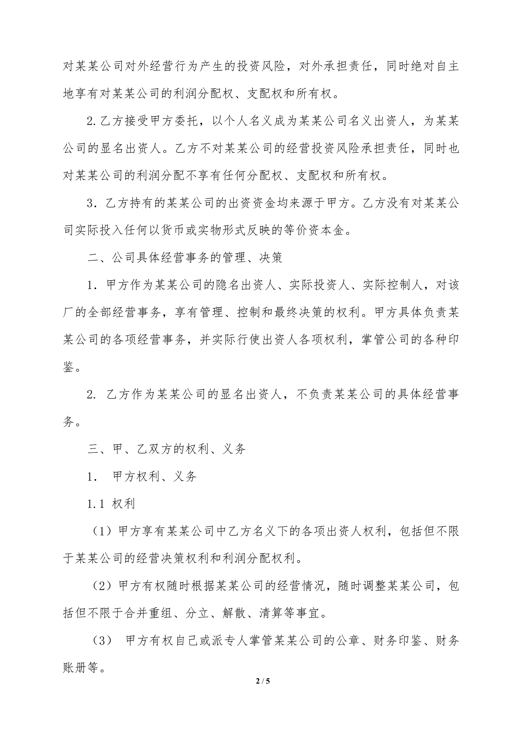 合同名称:隐名出资协议