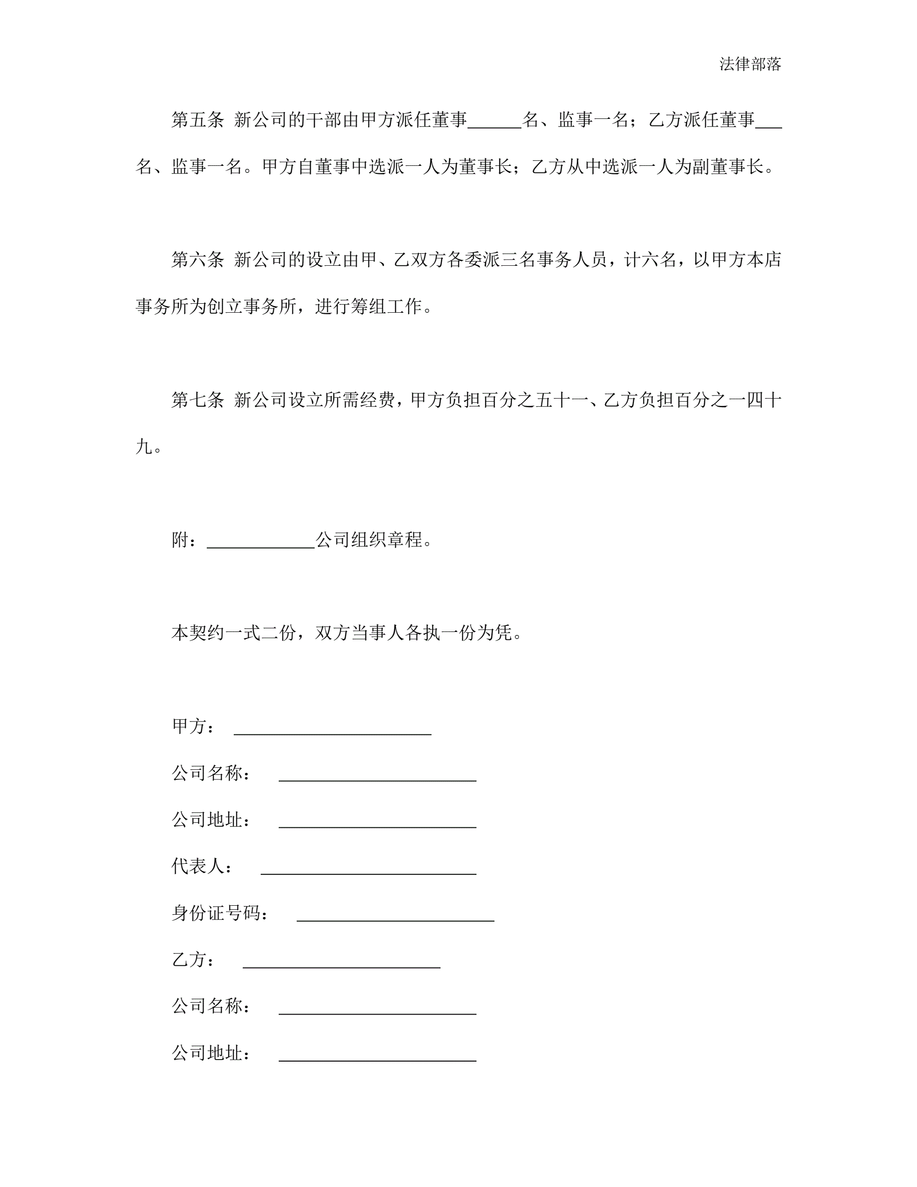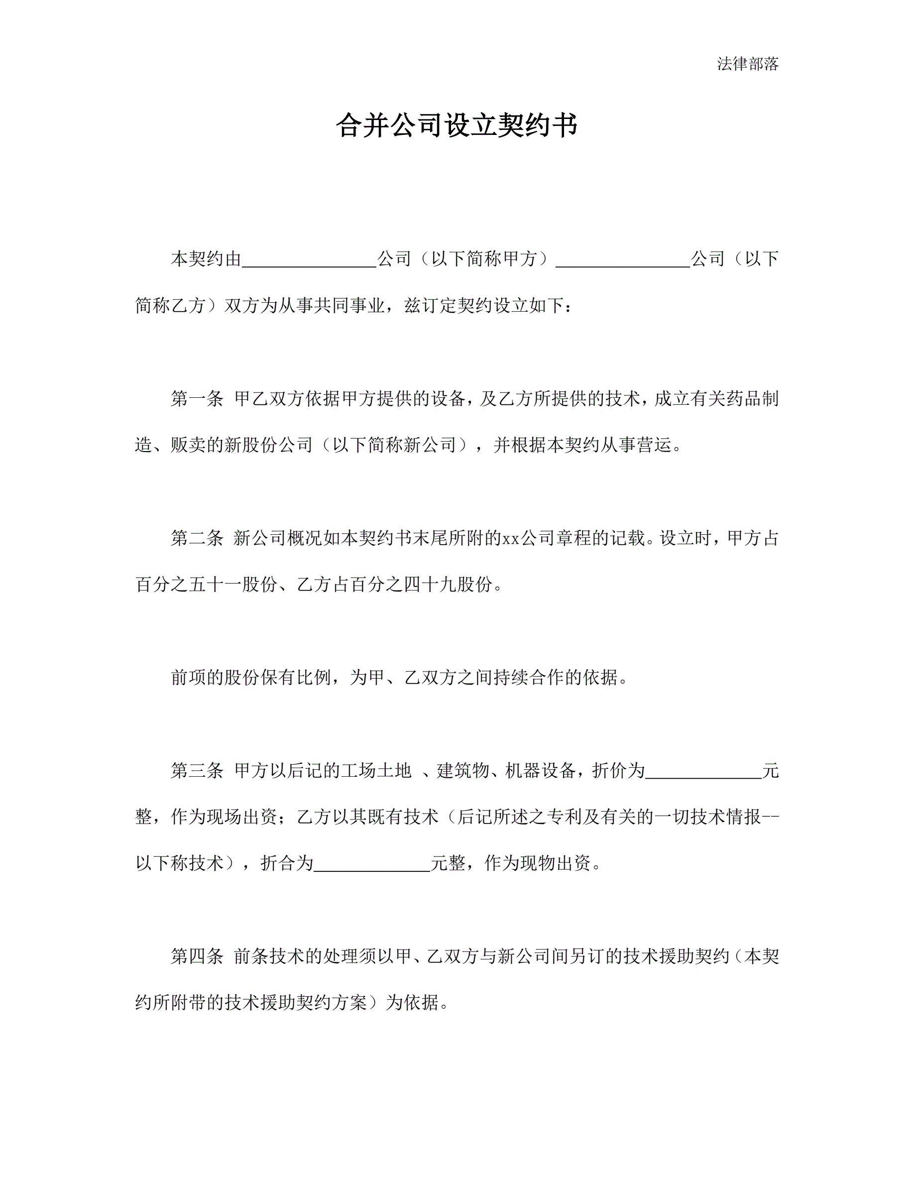 合并公司设立契约书简版