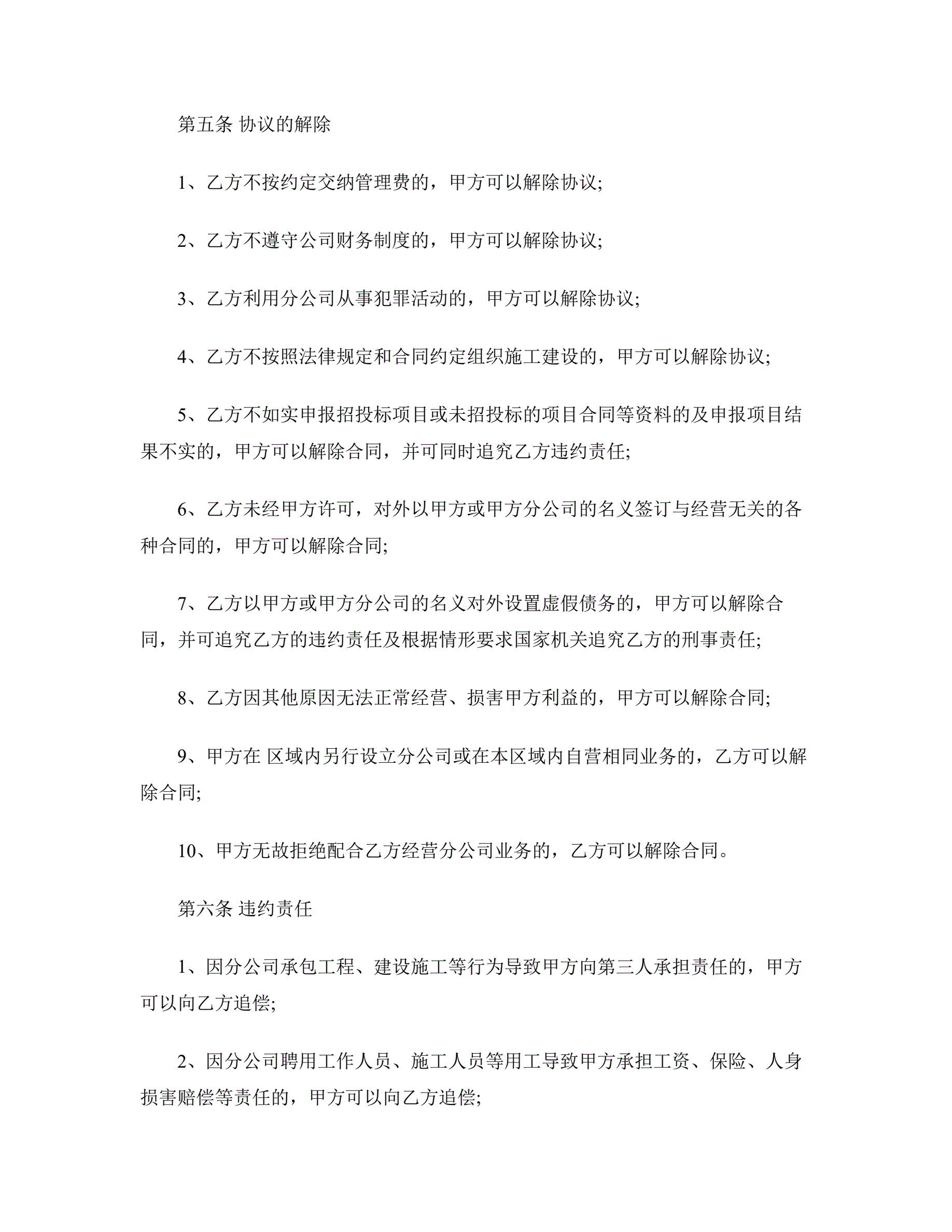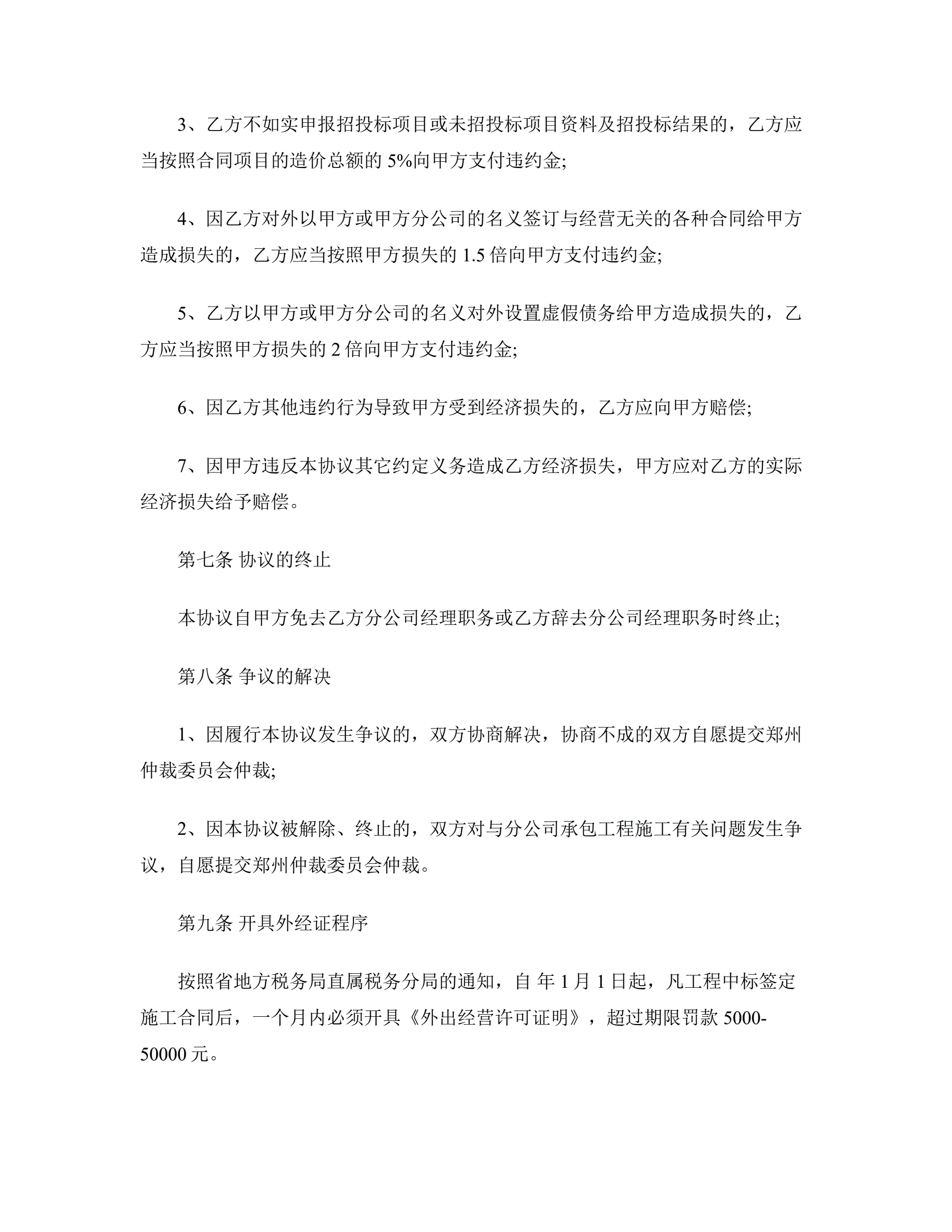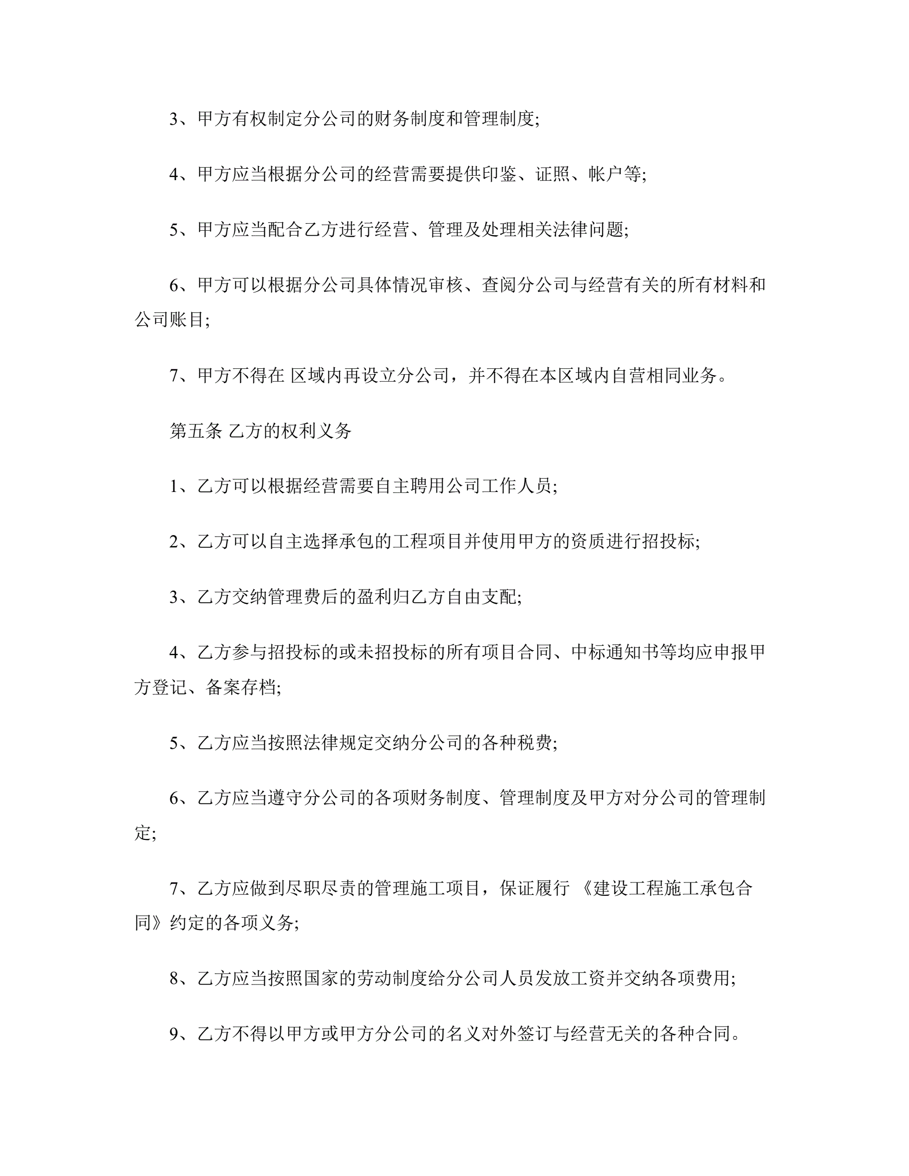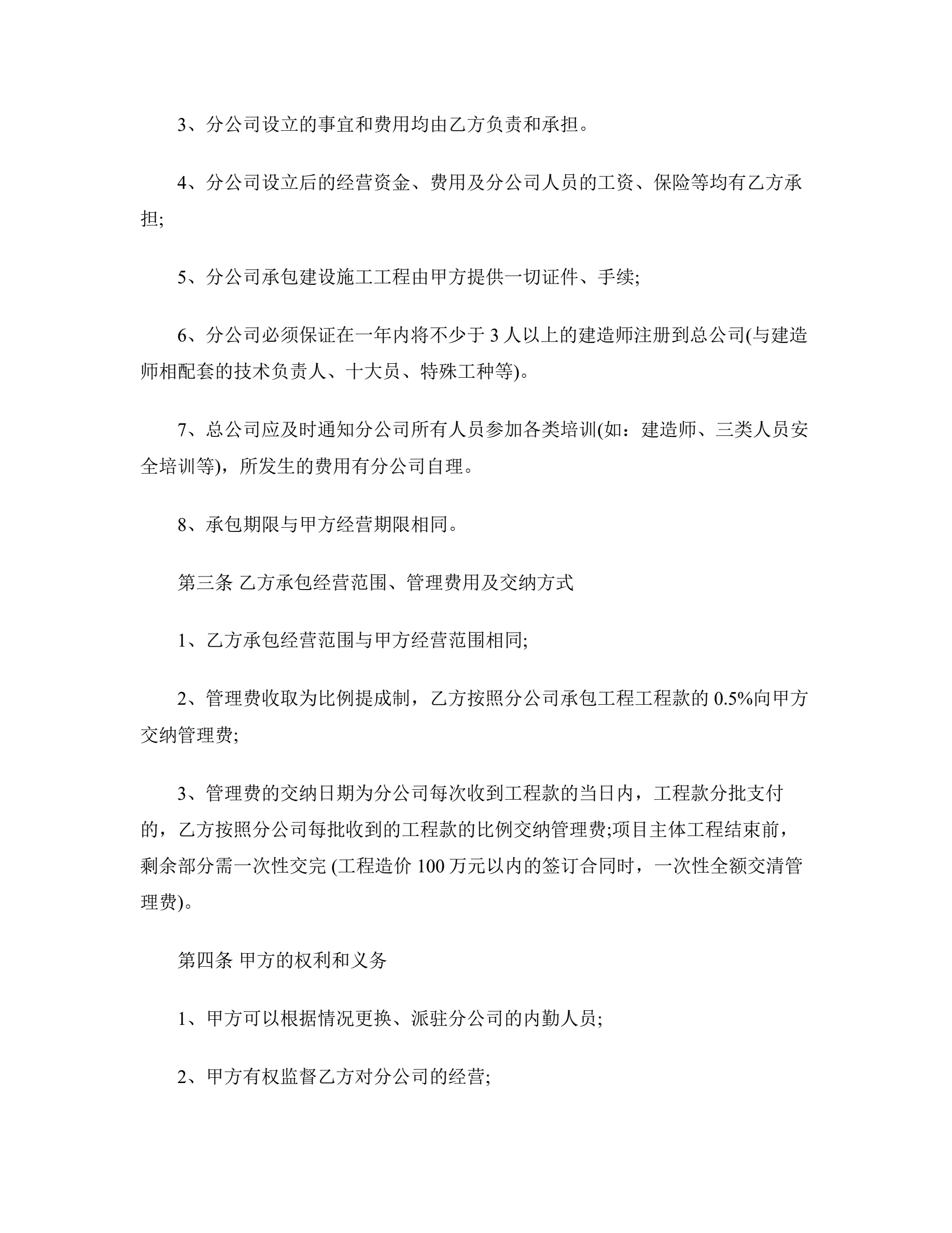 分公司承包经营协议书