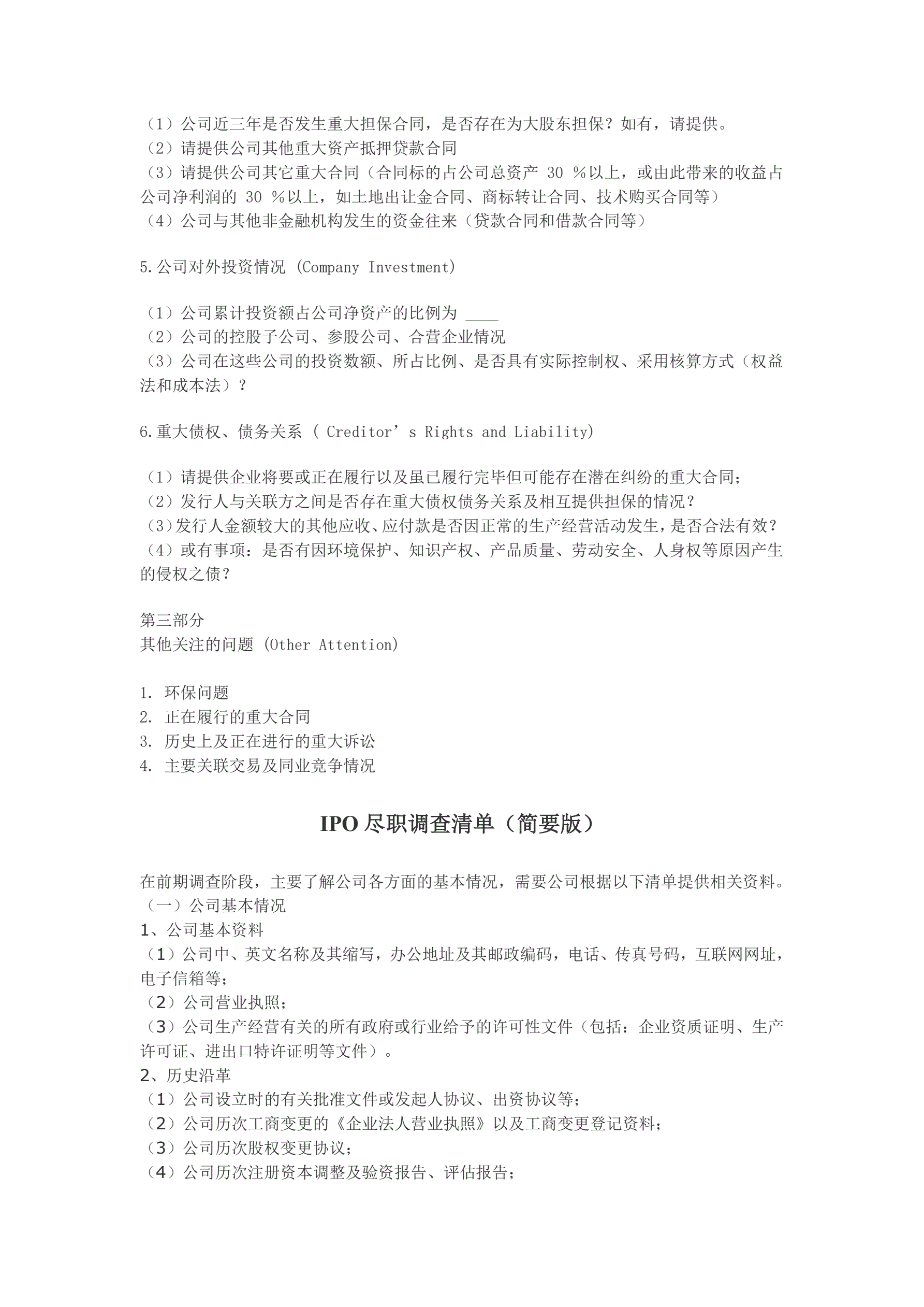 企业上市融资IPO尽职调查主要内容