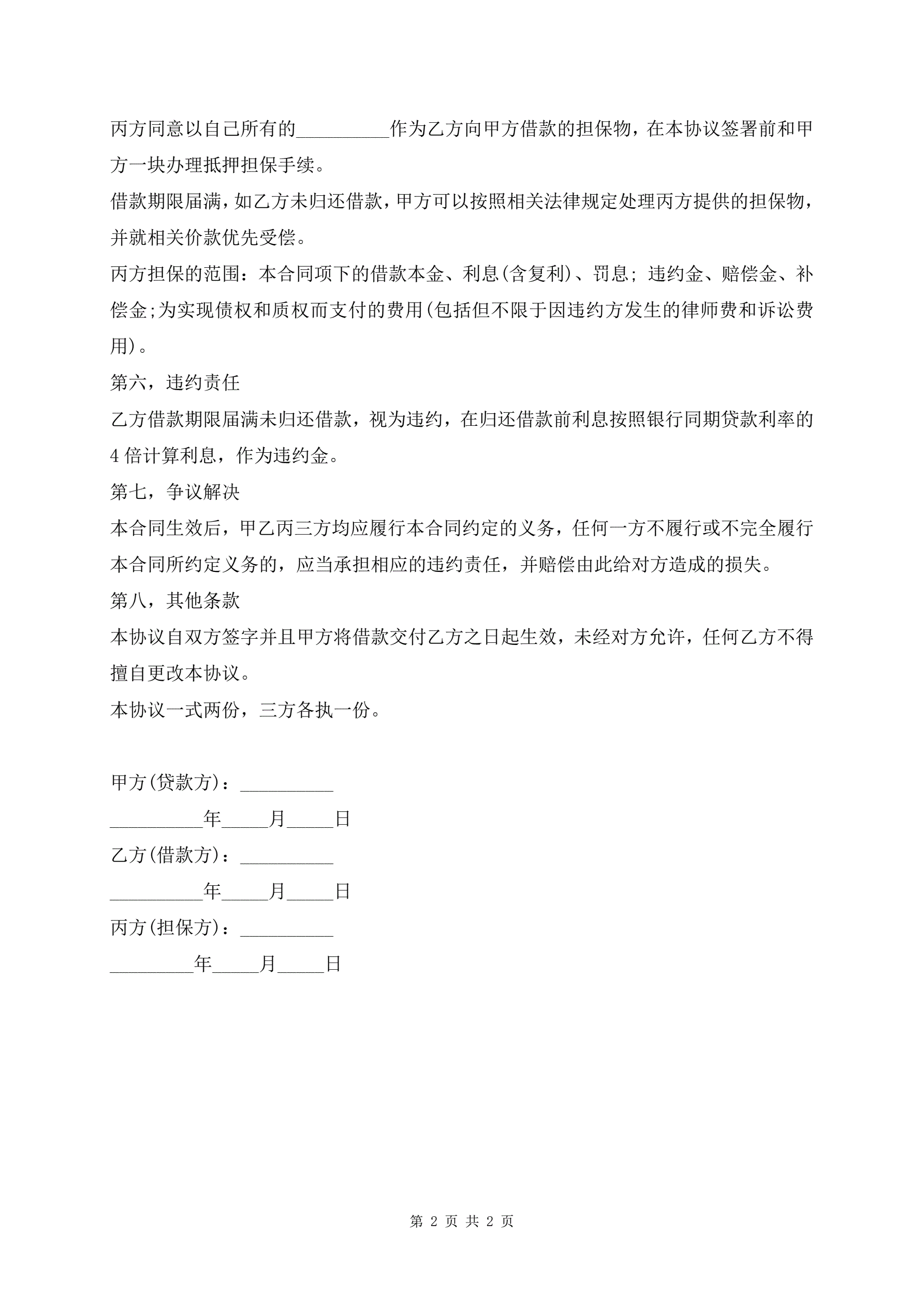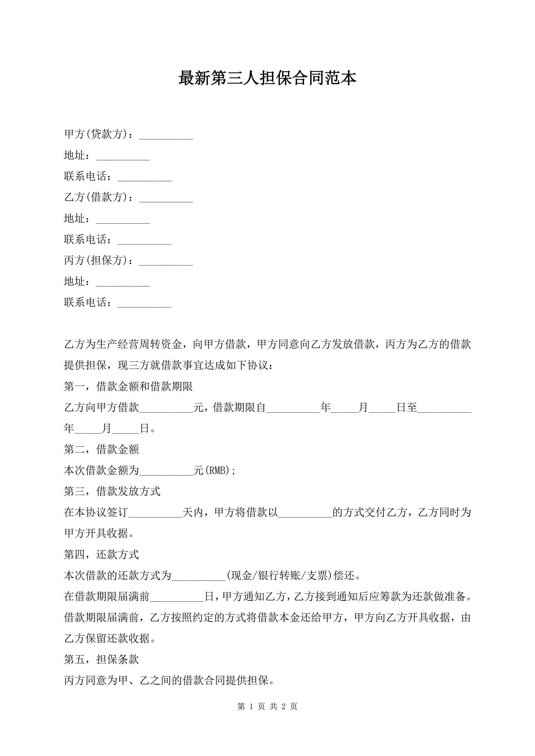 最新第三人担保合同范本