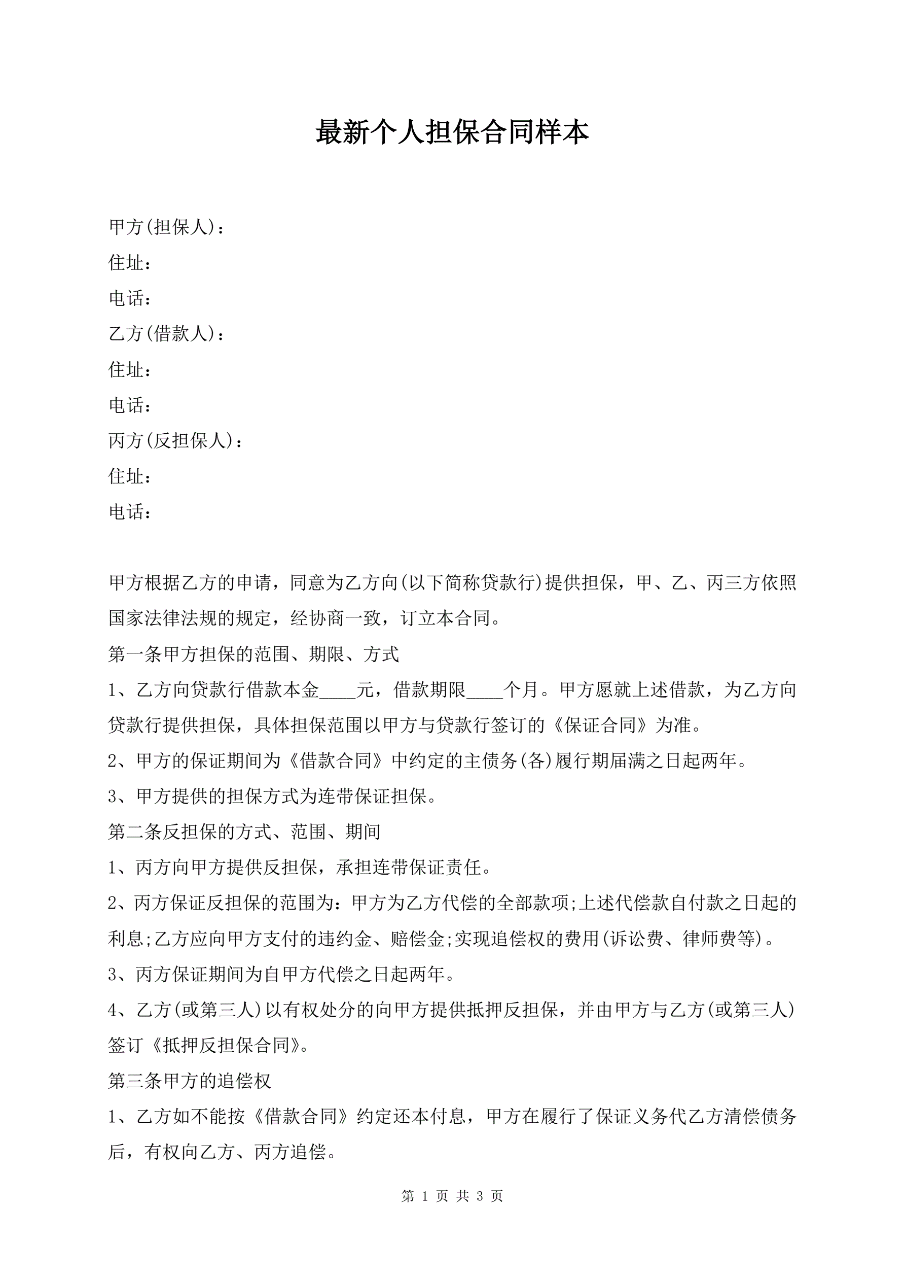 最新个人担保合同样本
