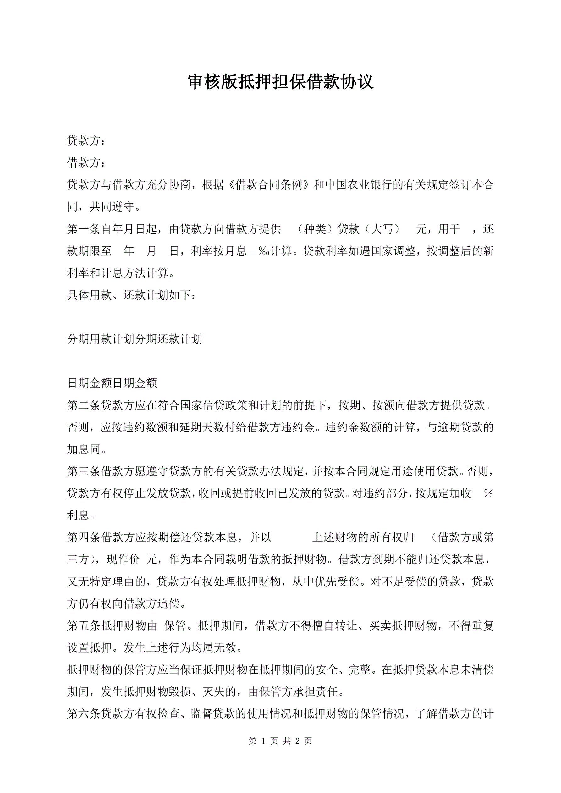 审核版抵押担保借款协议