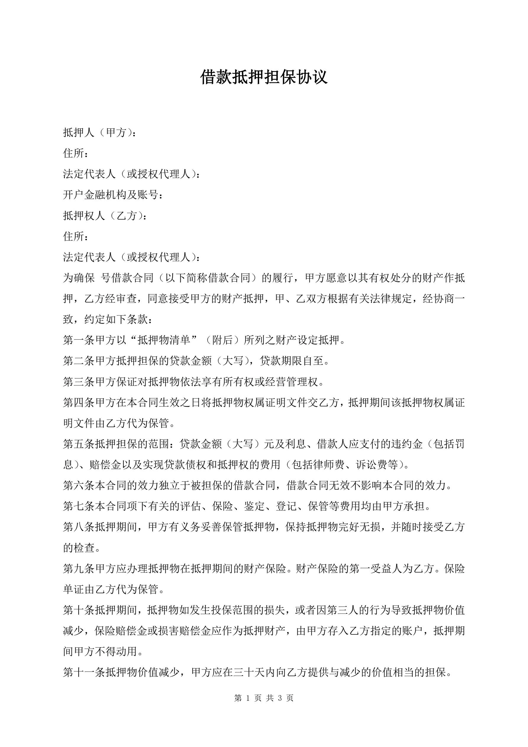 >借款抵押担保协议