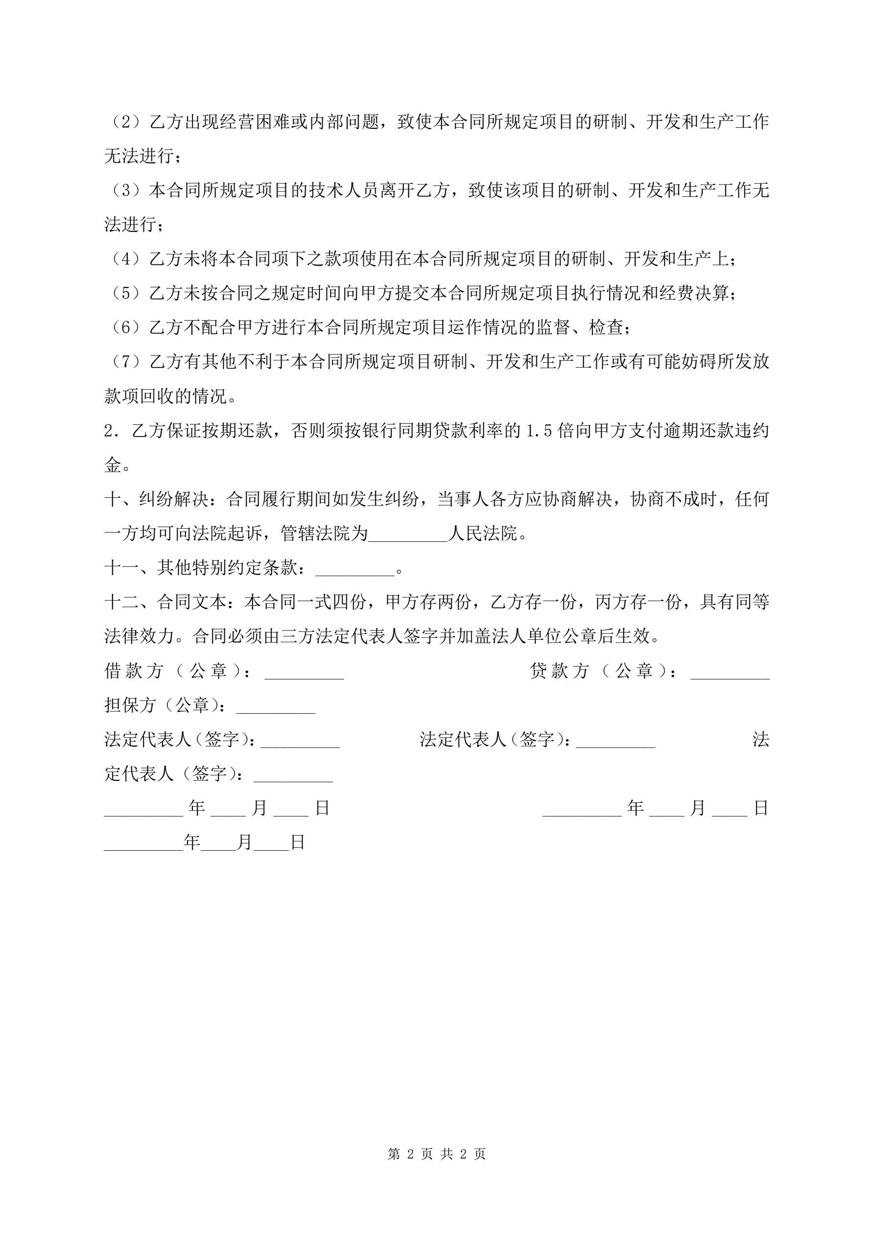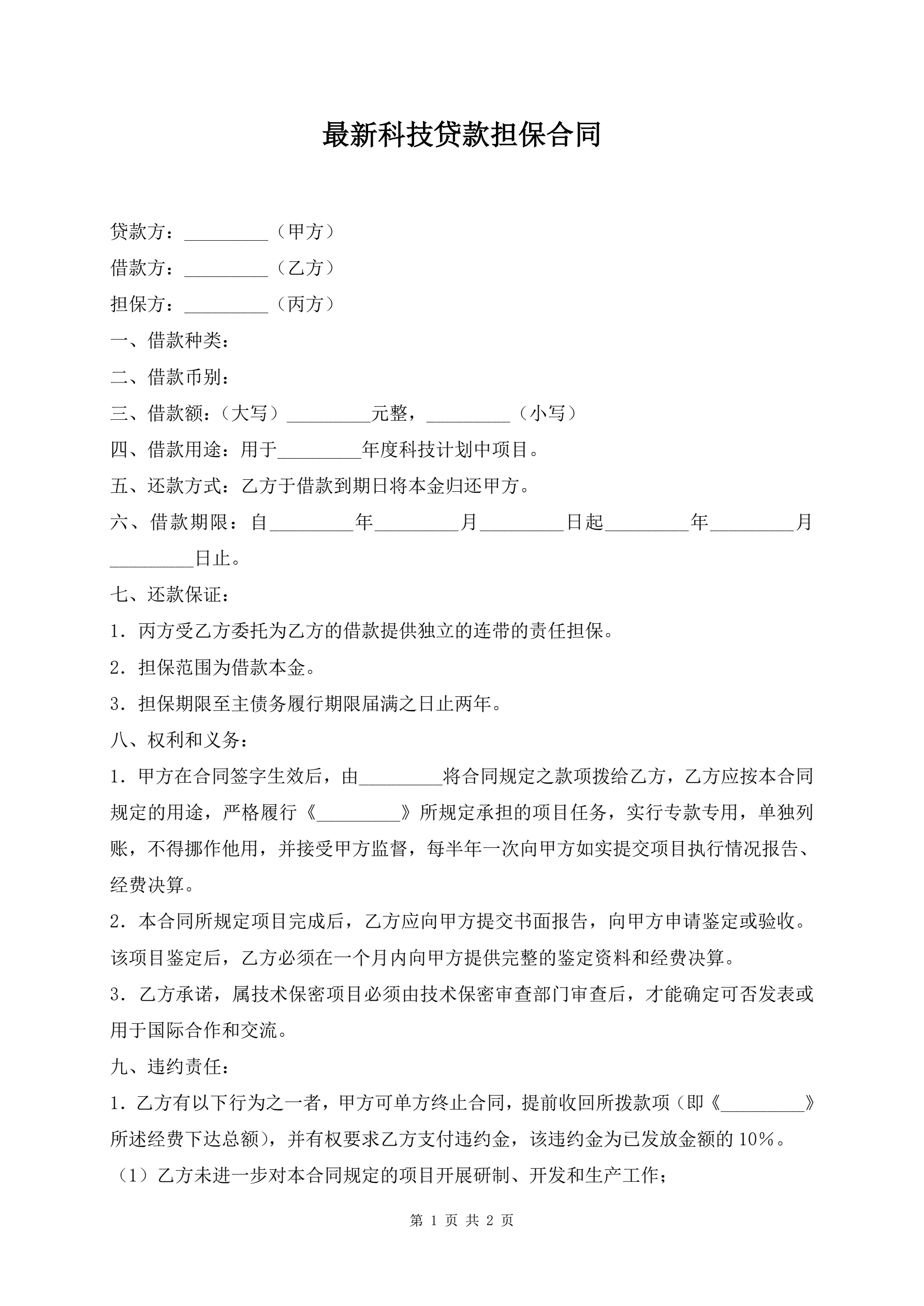 最新科技贷款担保合同