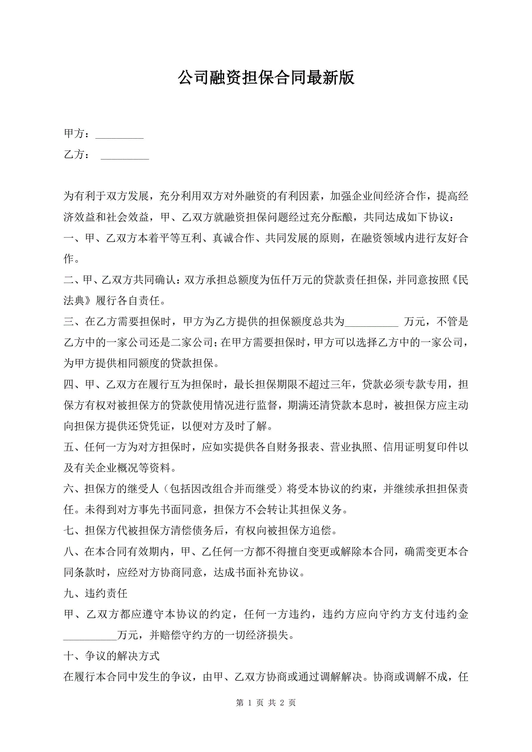>公司融资担保合同最新版