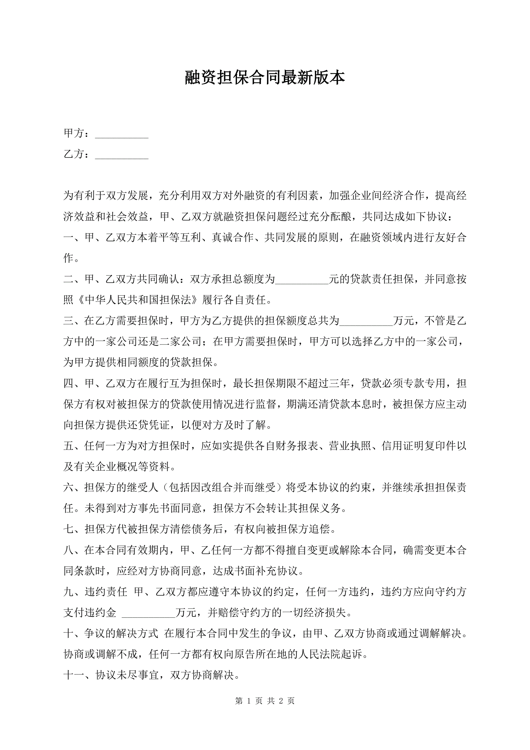 >融资担保合同最新版本